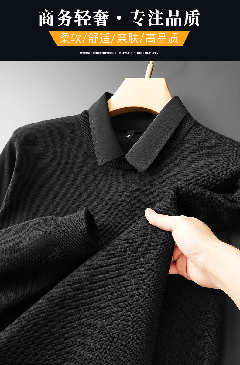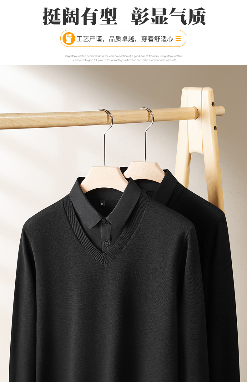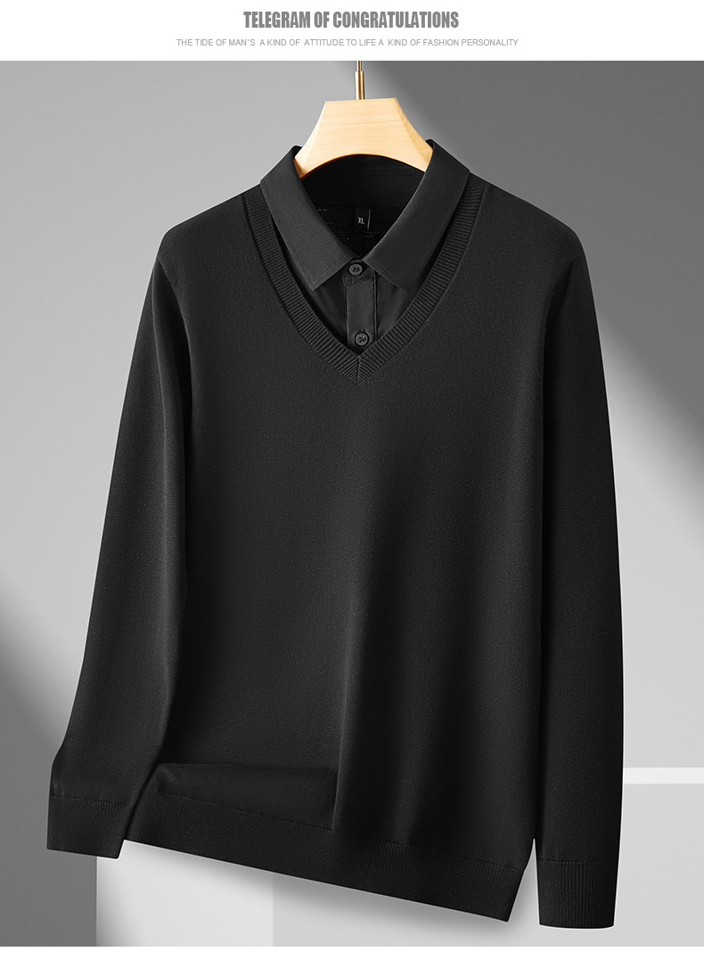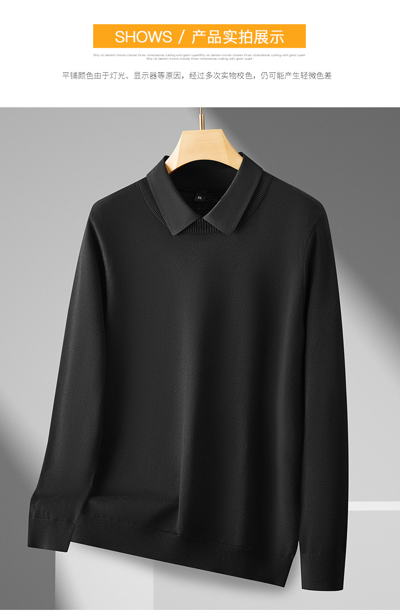 【假两件】【新款DPF】大依优型大码假两件长袖T恤衬衫领加肥加大肥佬休闲商务宽松透气上衣打底