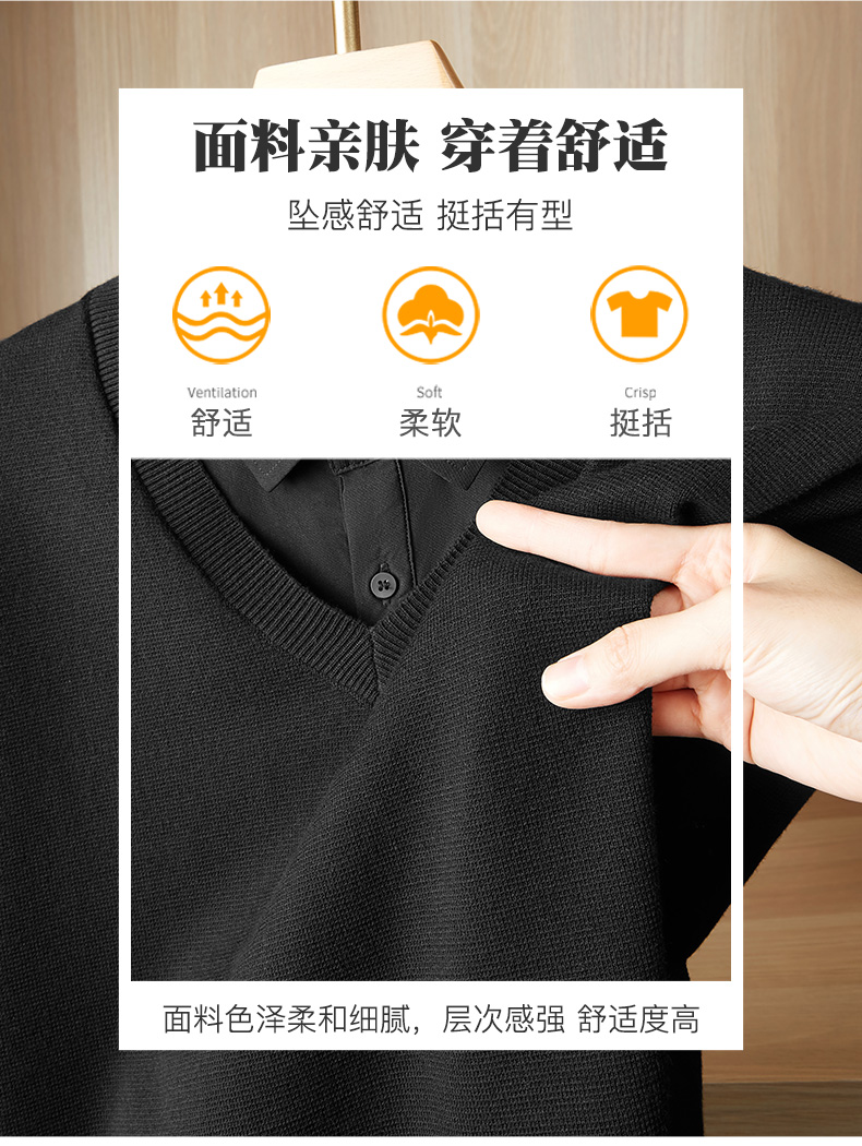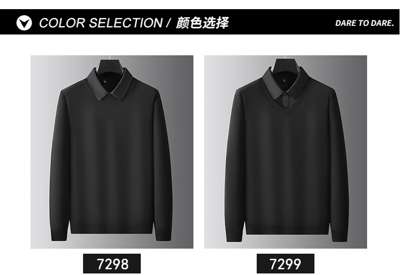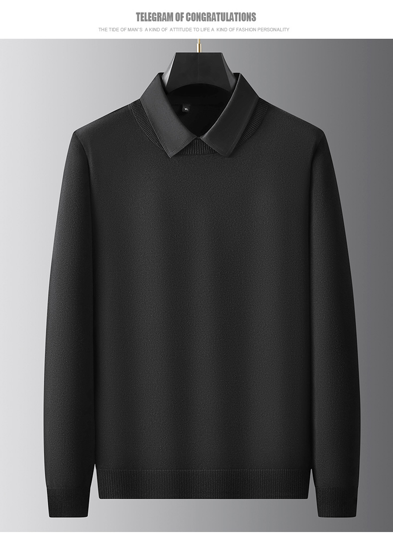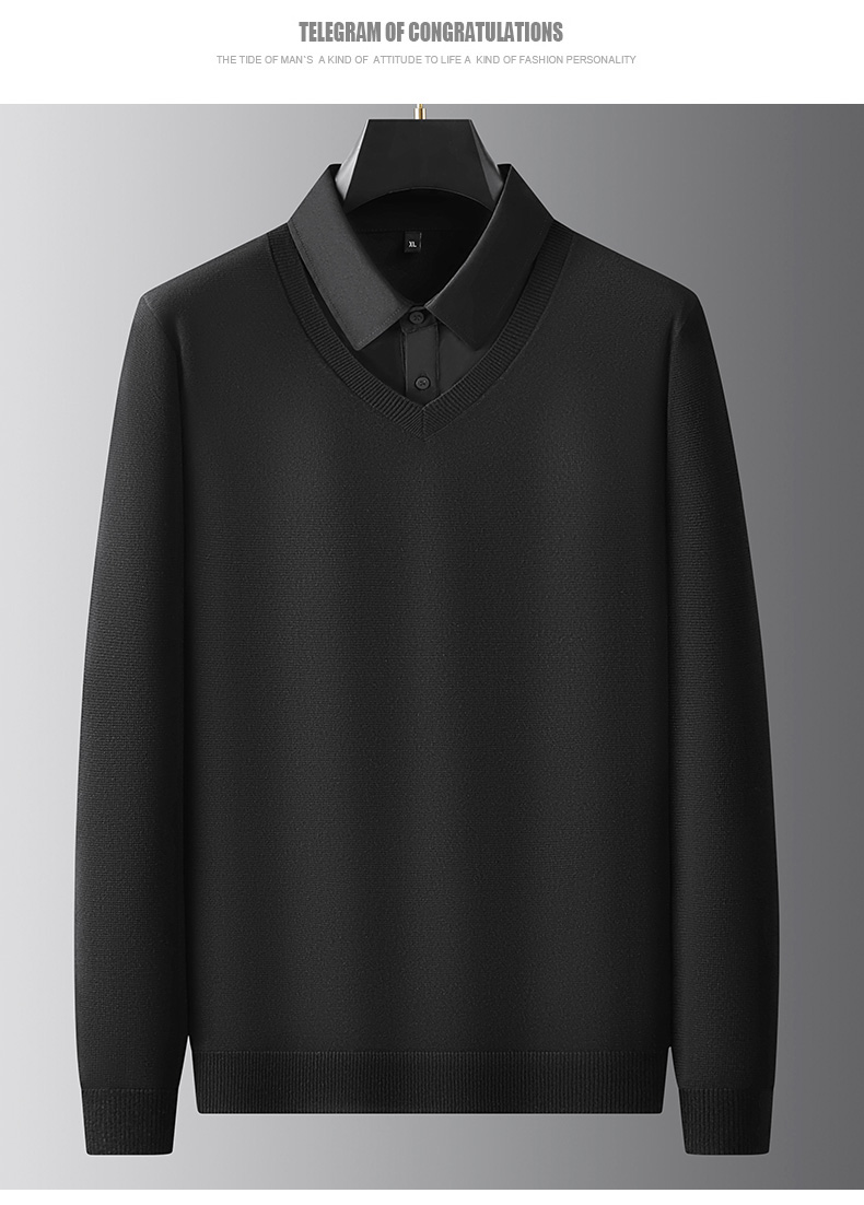 【假两件】【新款DPF】大依优型大码假两件长袖T恤衬衫领加肥加大肥佬休闲商务宽松透气上衣打底
