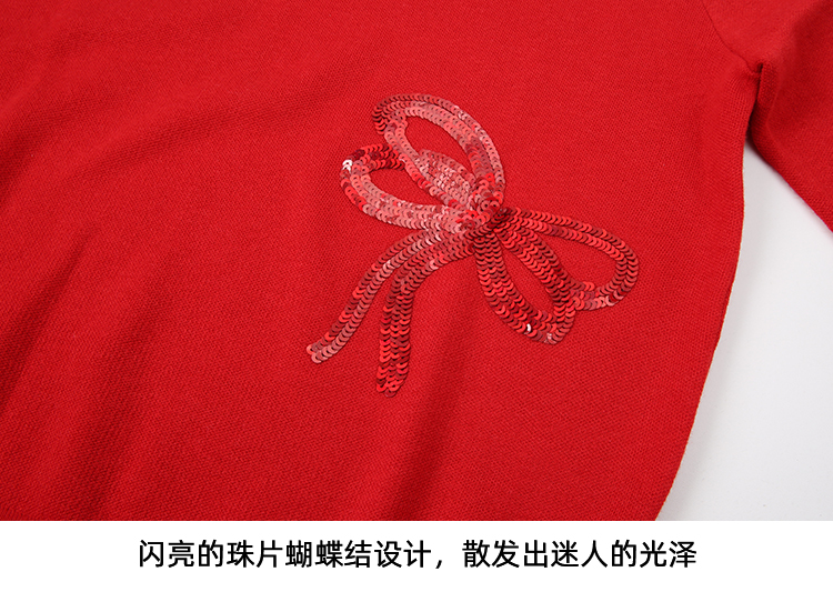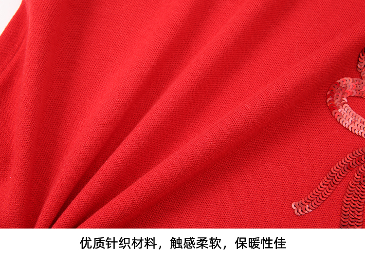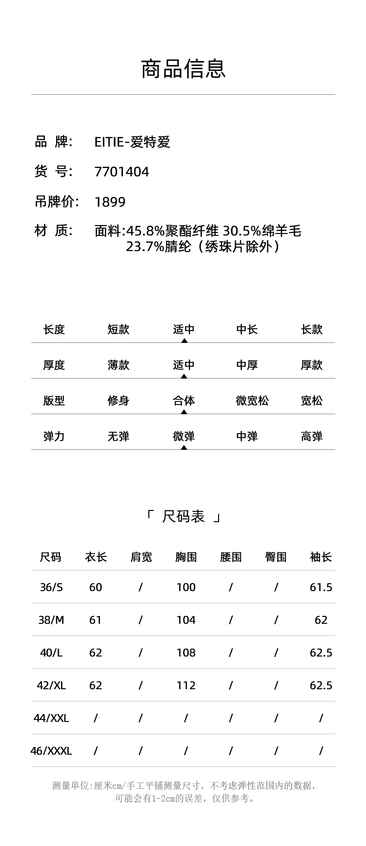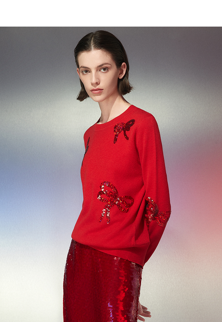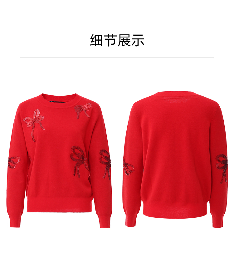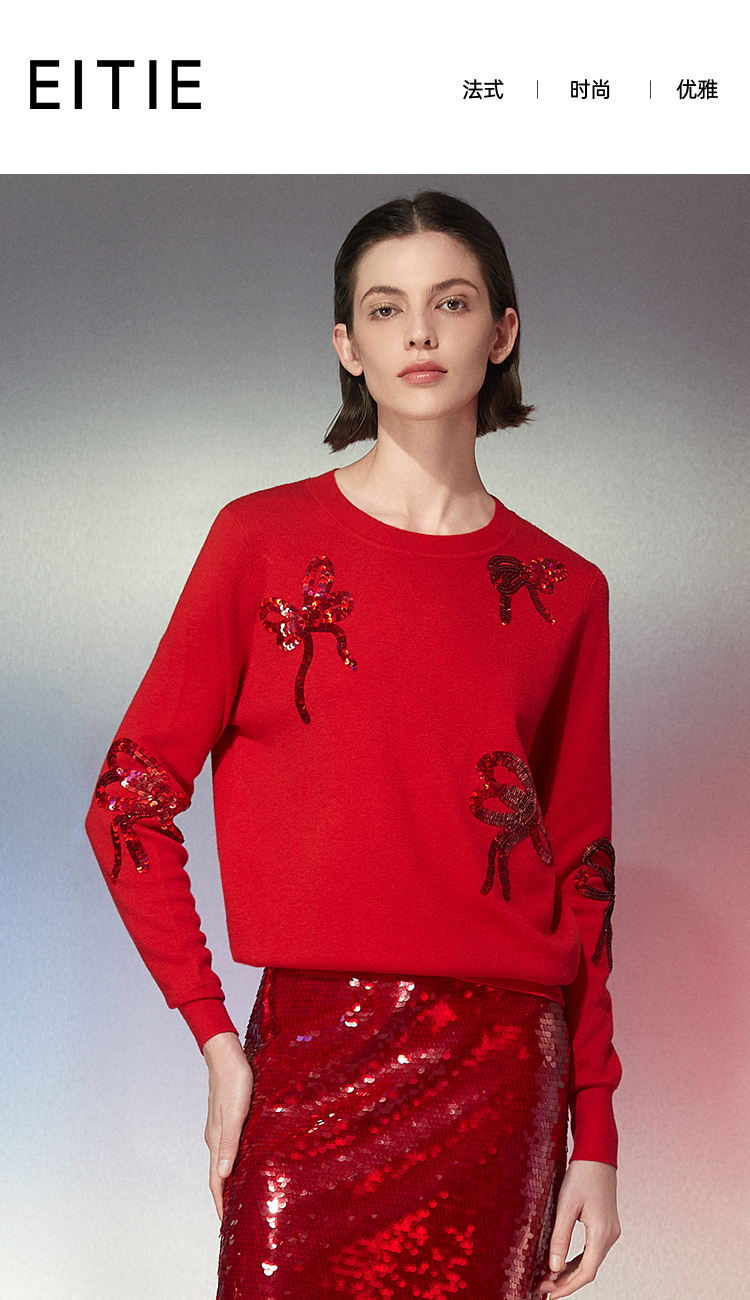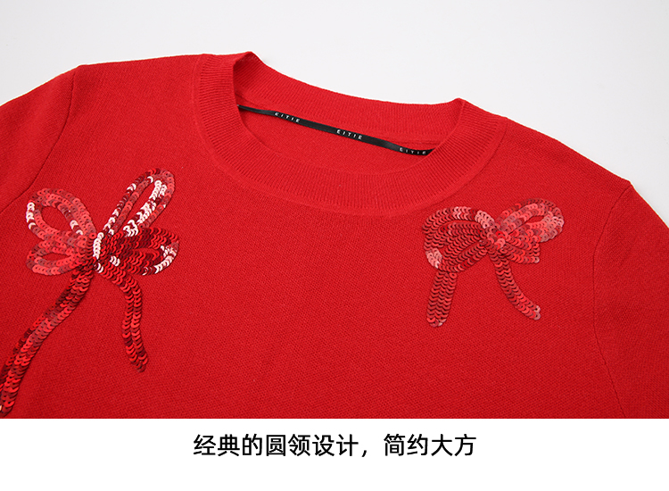 EITIE爱特爱春季新款显瘦舒适套头亮片刺绣针织衫7701404
