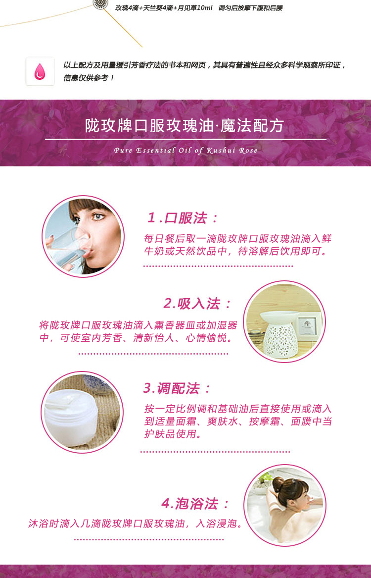 东方之玫牌口服玫瑰油1ml甘肃核心产区玫瑰蒸馏提取按摩护肤玫瑰纯精油