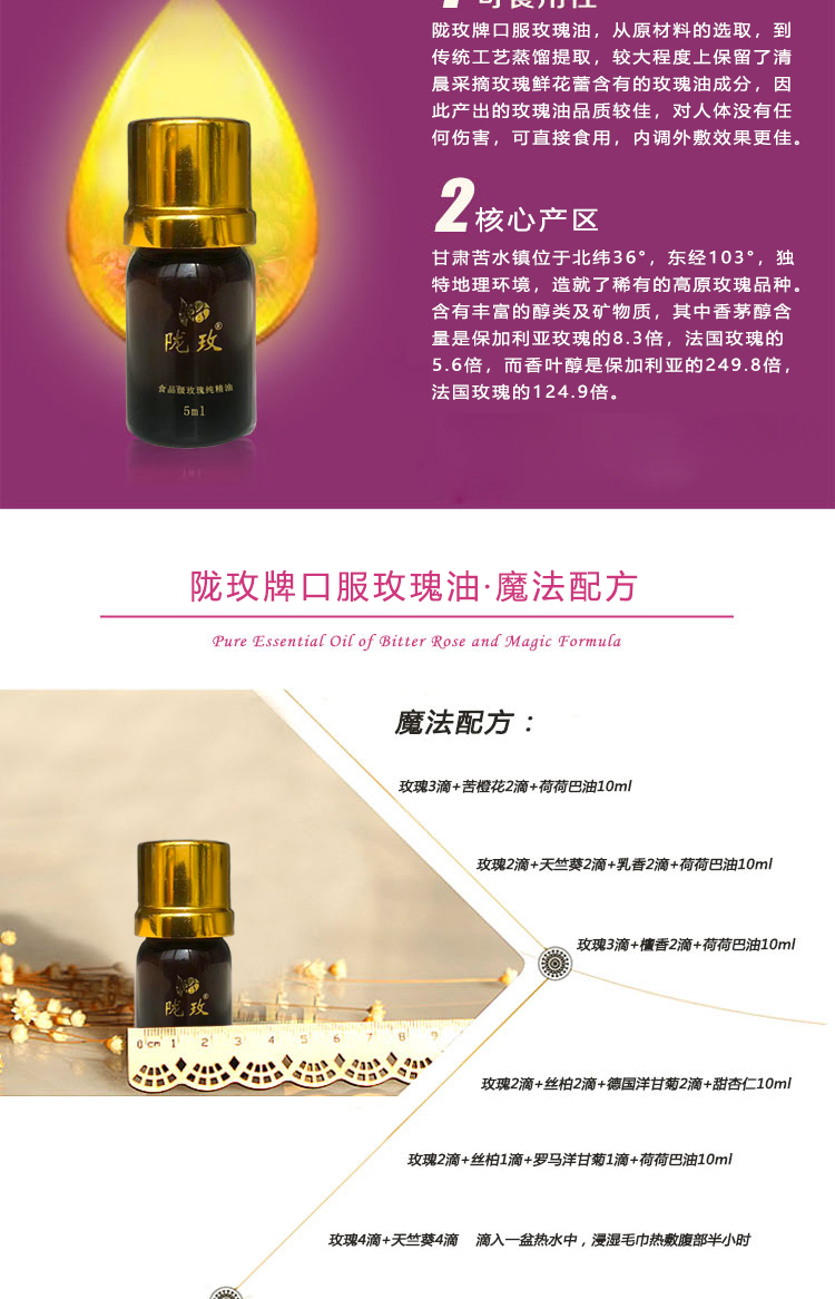 陇玫牌口服玫瑰油5mlX2 甘肃玫瑰原产地核心产区清晨采摘蒸馏提取 国家标准