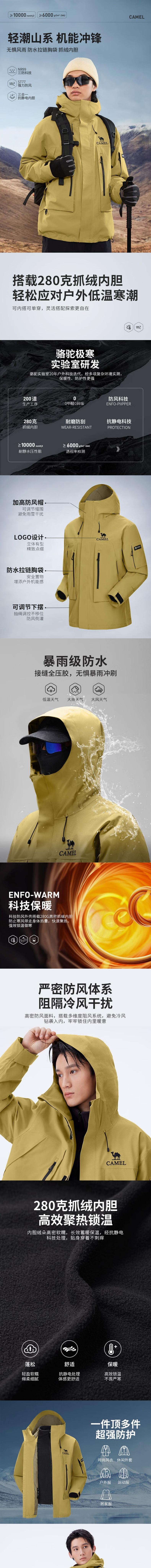 骆驼 通用三合一冲锋衣(抓绒内胆) A34CA18673