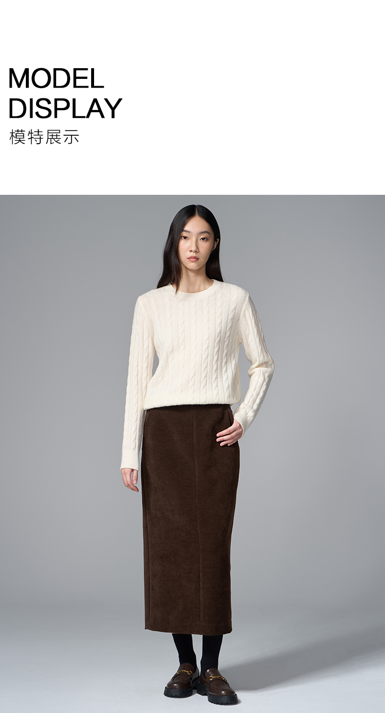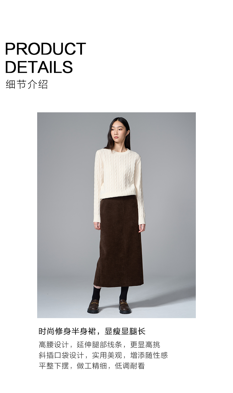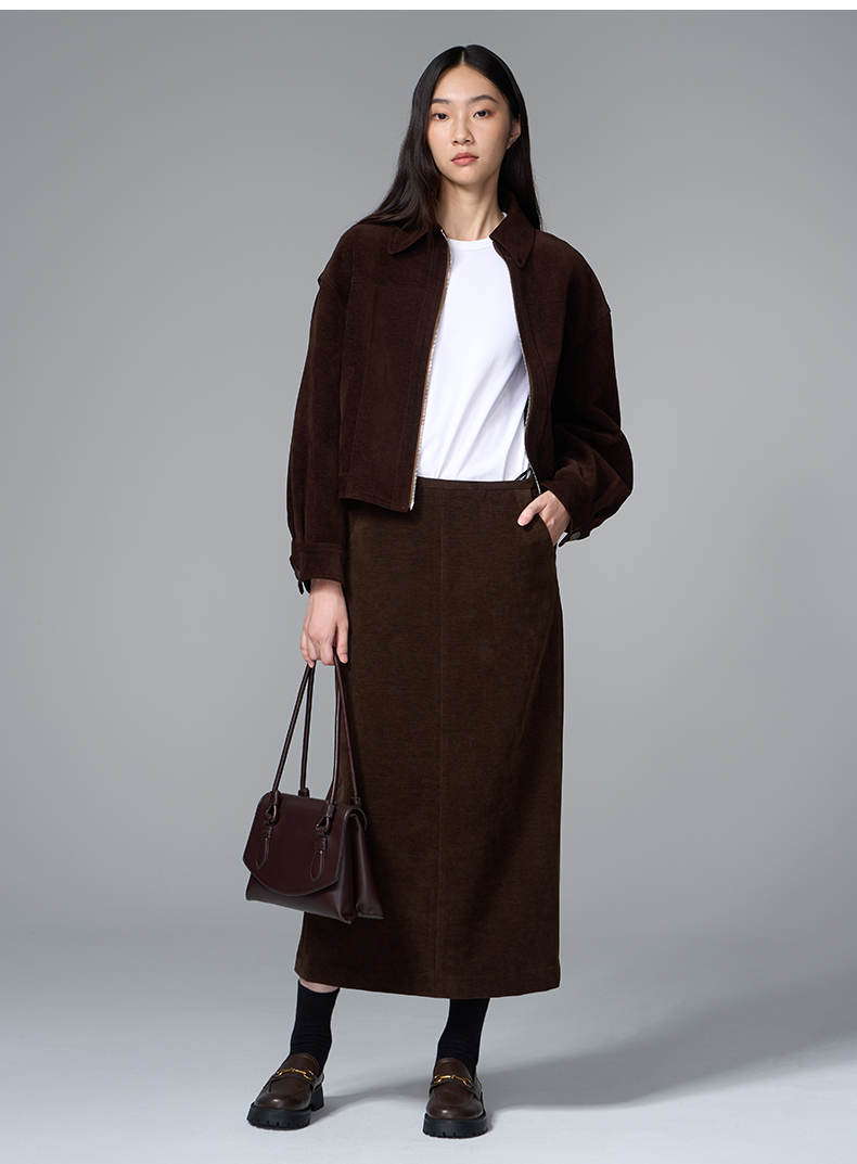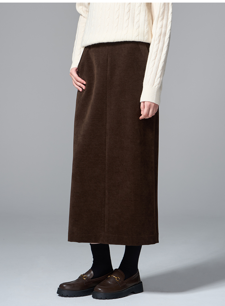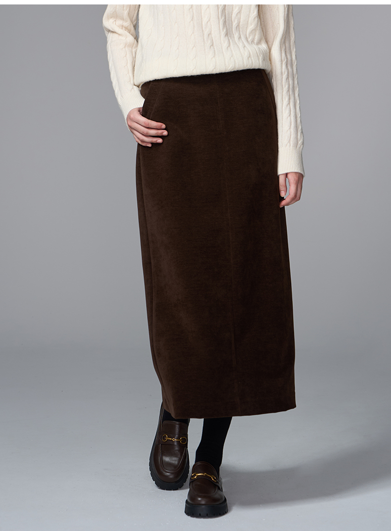 VIMAGE纬漫纪灯芯绒复古百搭直筒长款开叉半身裙女2025秋季新款V2406114