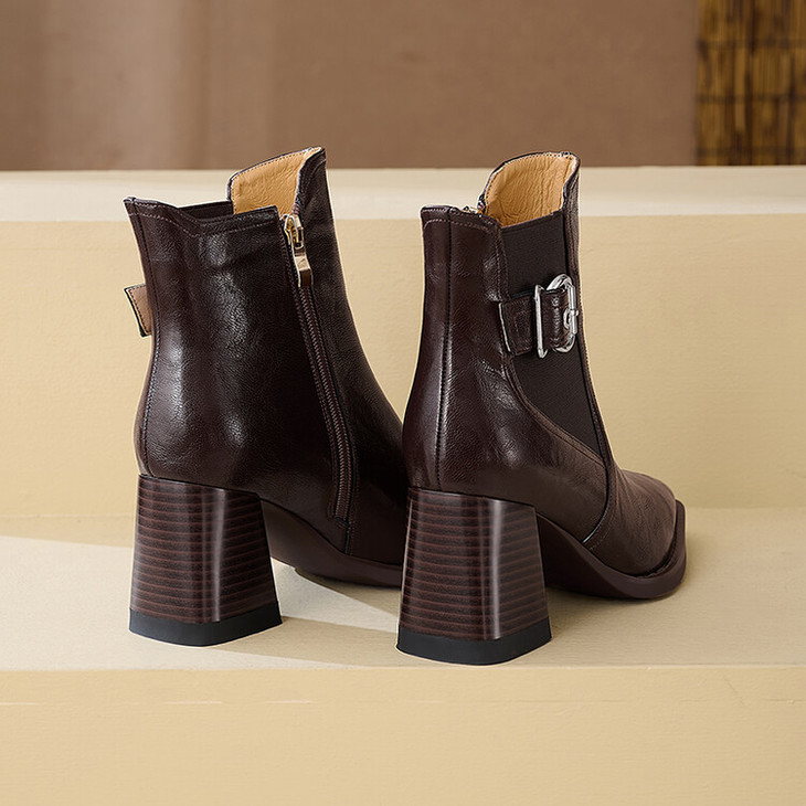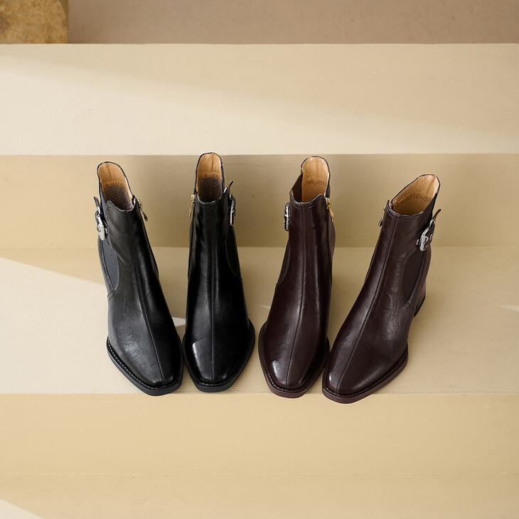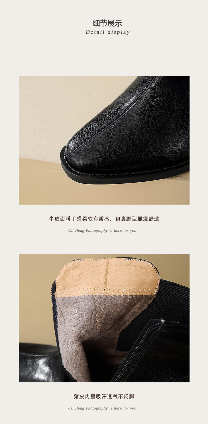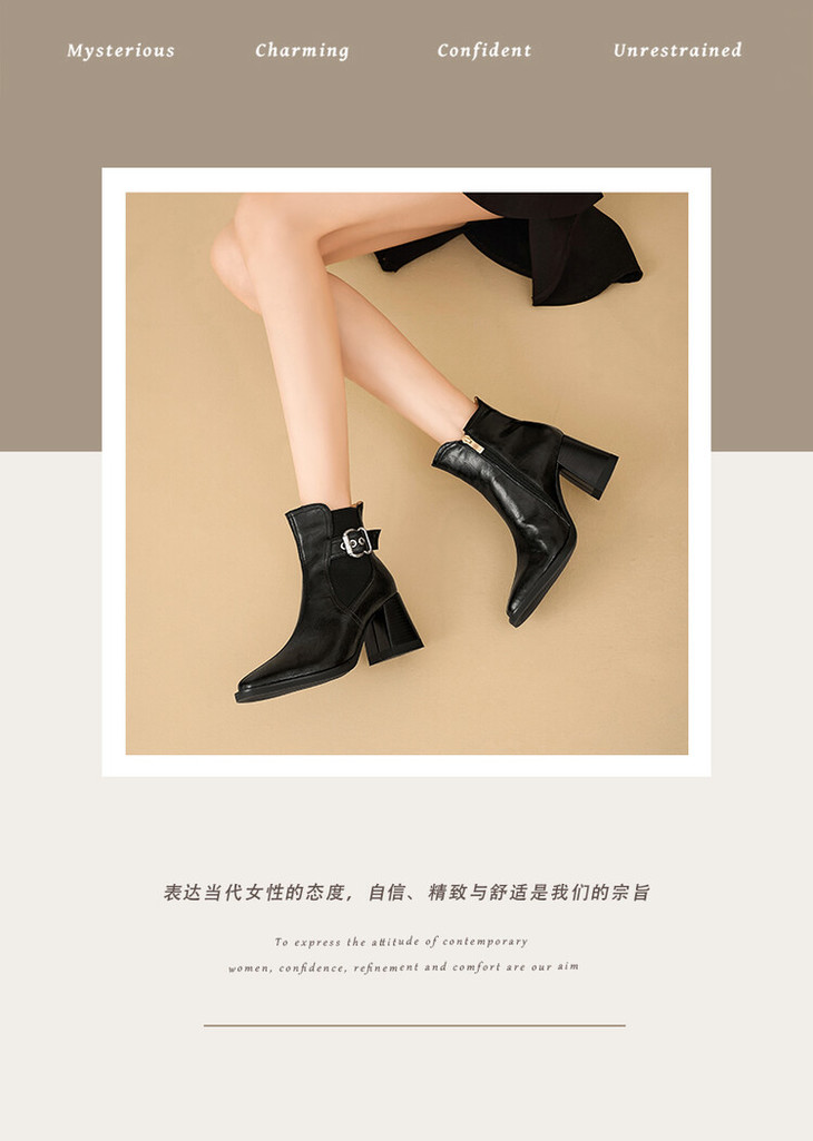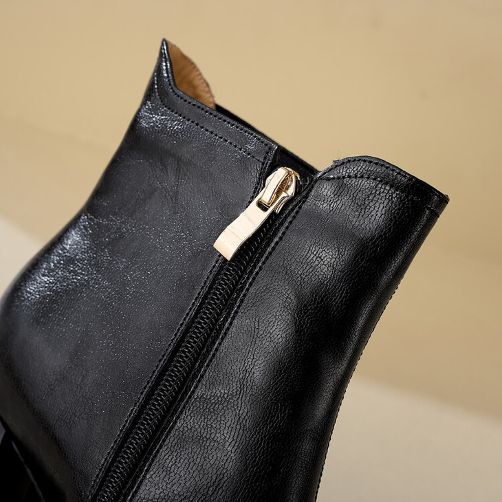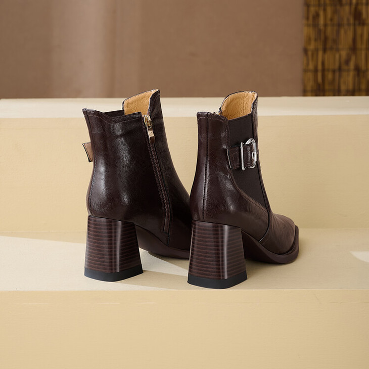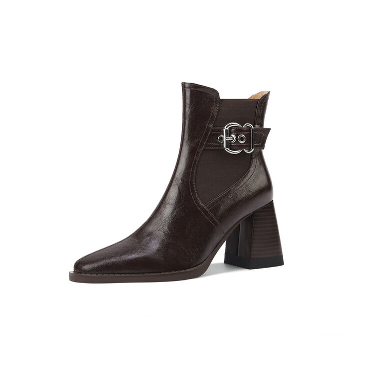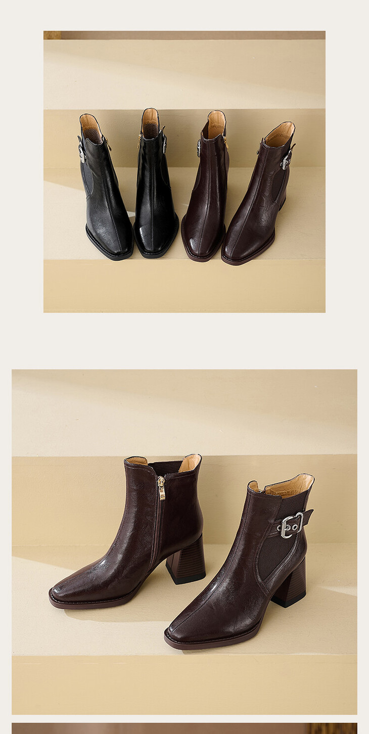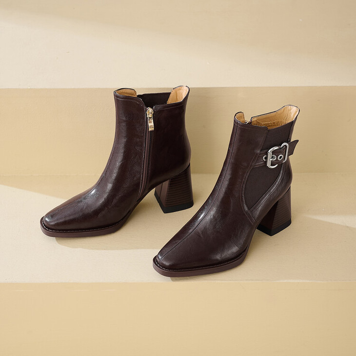 【预售5天】复古棕色大码法式小短靴女粗跟新款秋冬尖头高跟靴子女马丁靴XME&898-137