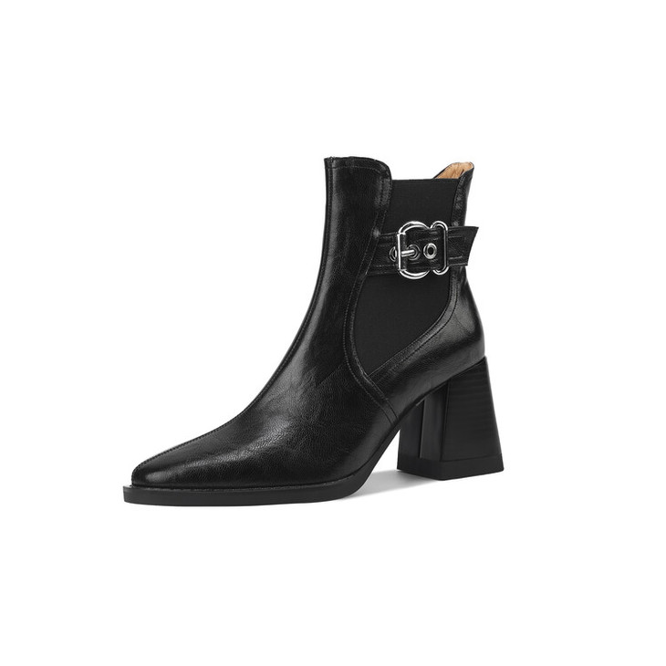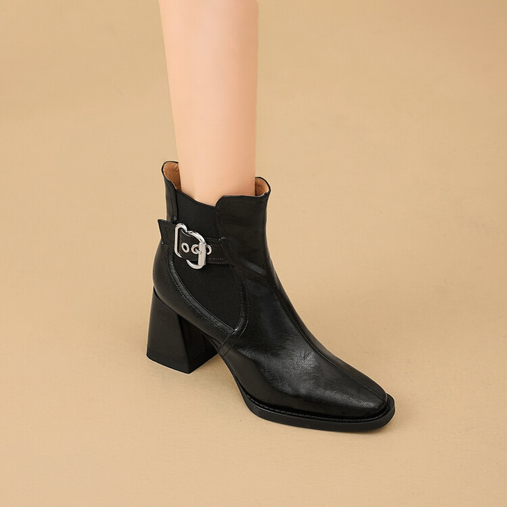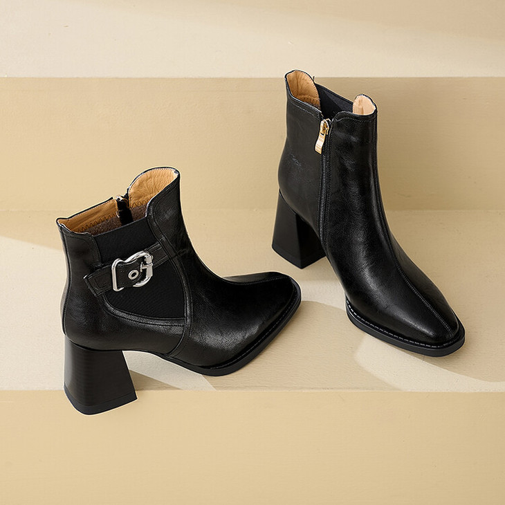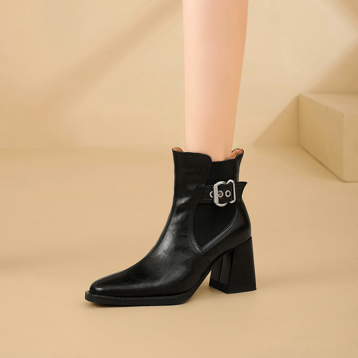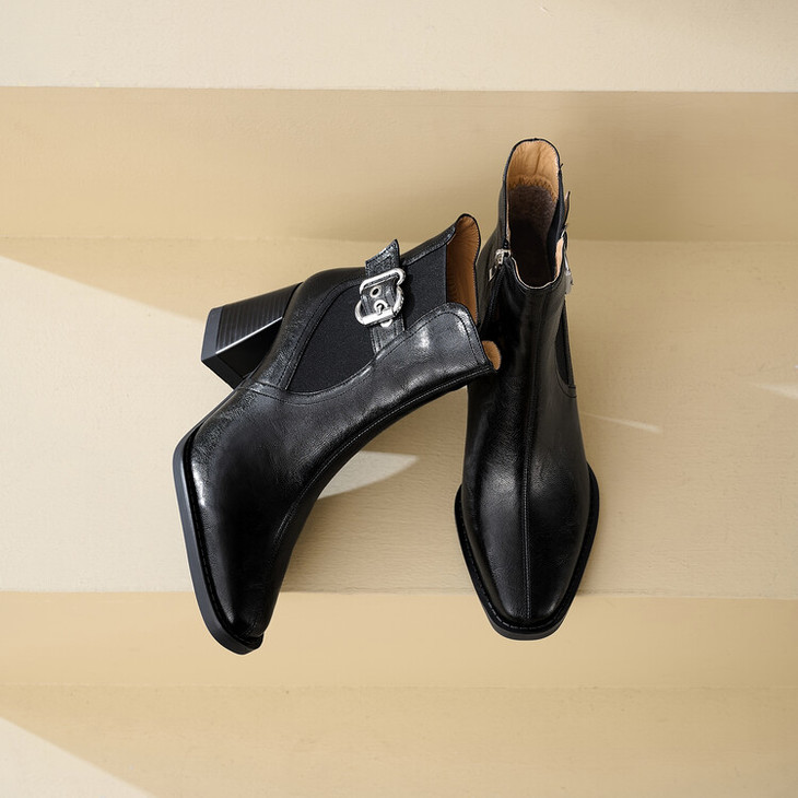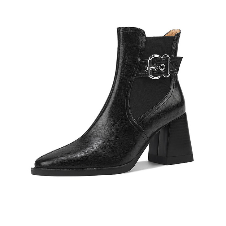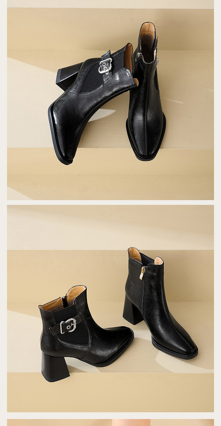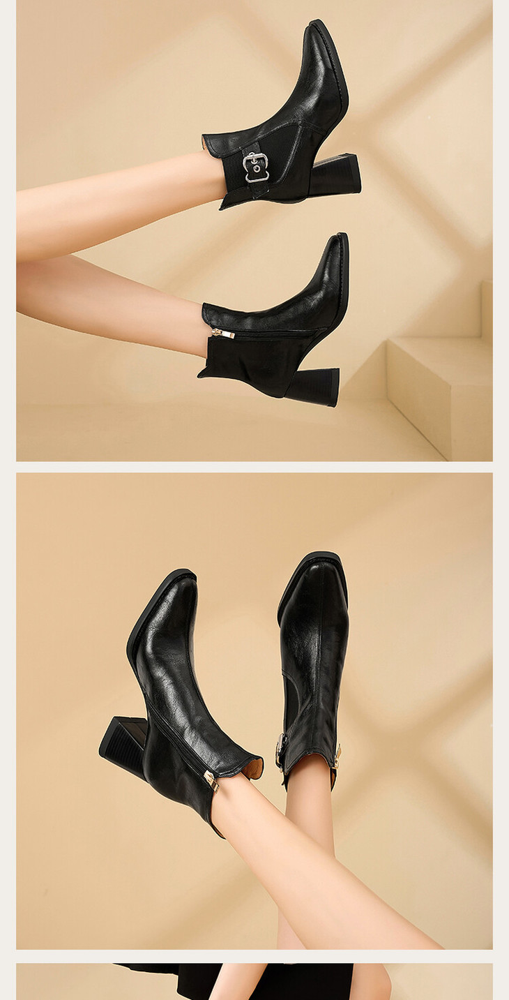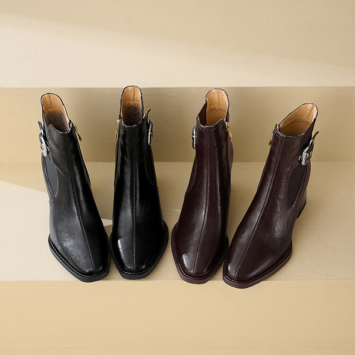 【预售5天】复古棕色大码法式小短靴女粗跟新款秋冬尖头高跟靴子女马丁靴XME&898-137