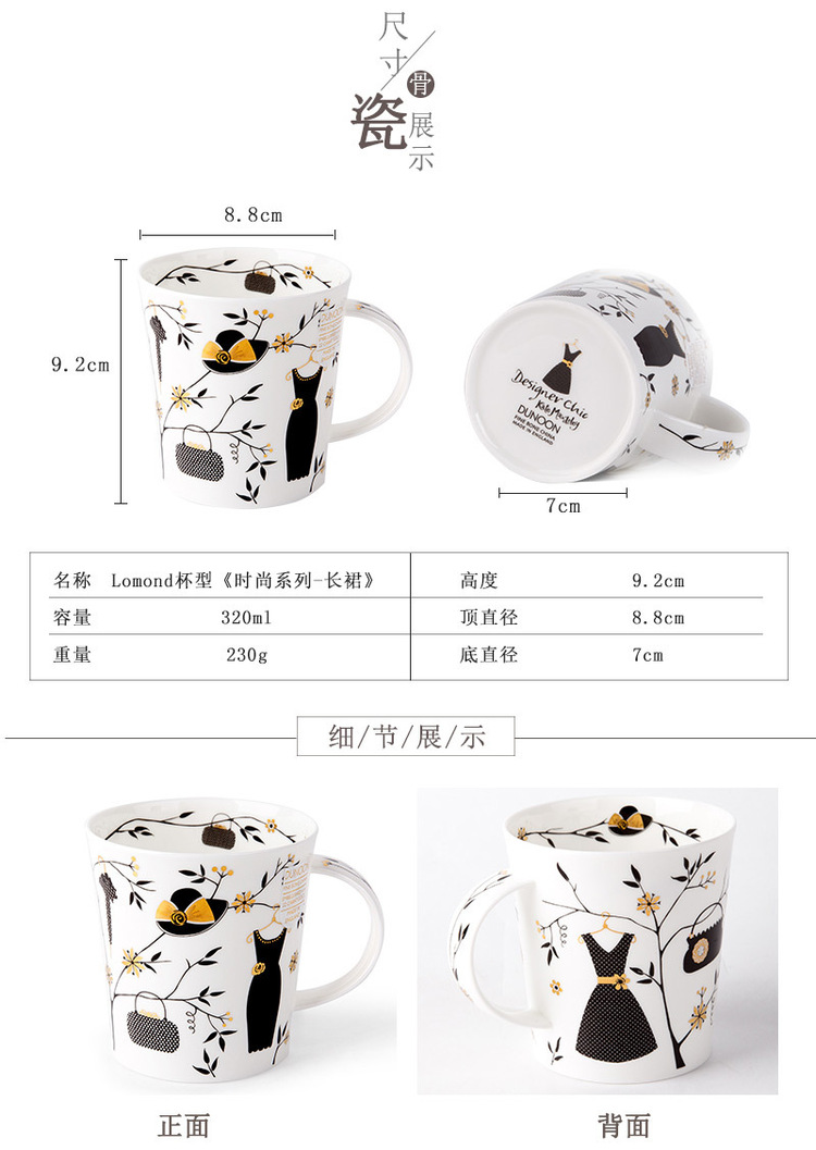 英国原产DUNOON丹侬lomond型骨瓷茶杯水杯马克杯时尚长裙