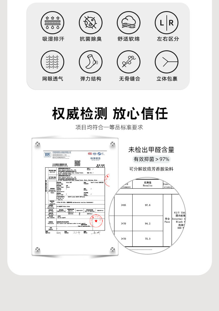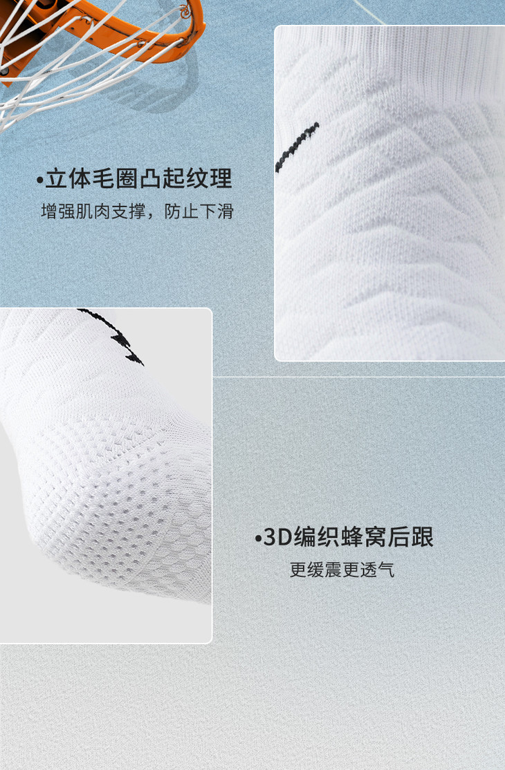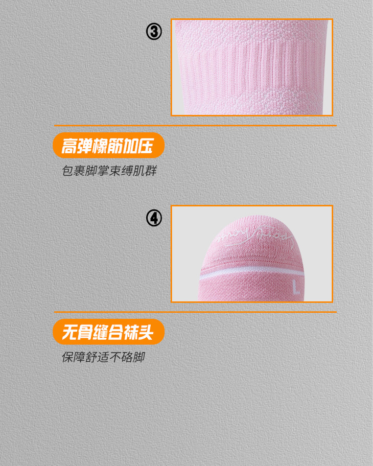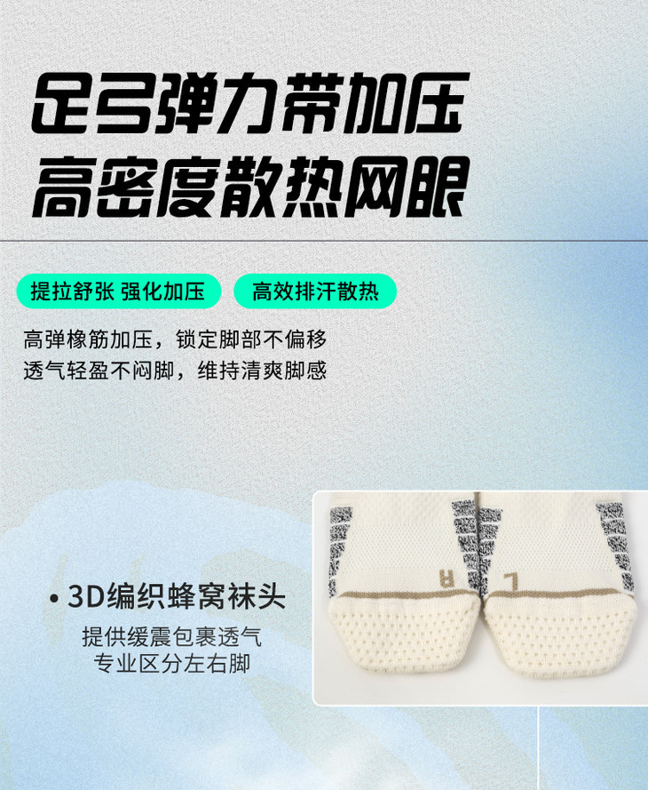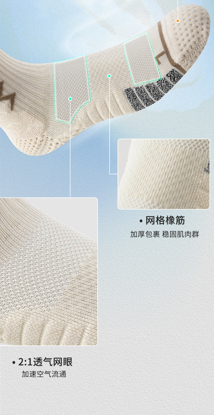 脚面透气网部位:93.4%棉纶,6.6%氨纶