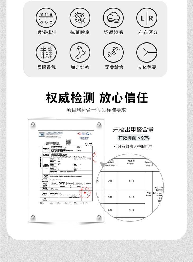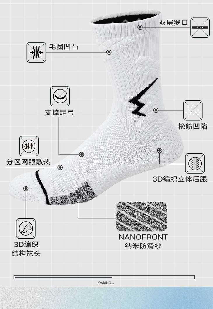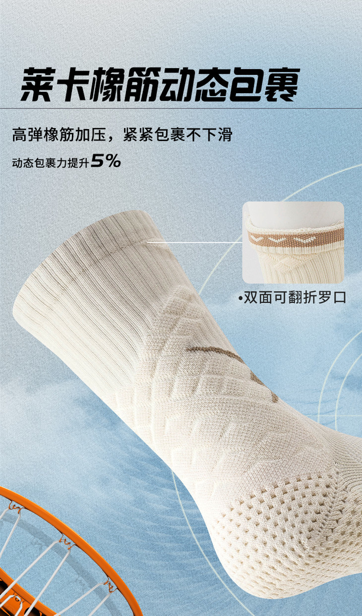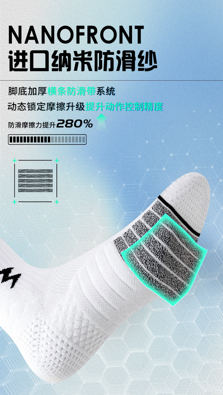 脚面透气网部位:93.4%棉纶,6.6%氨纶