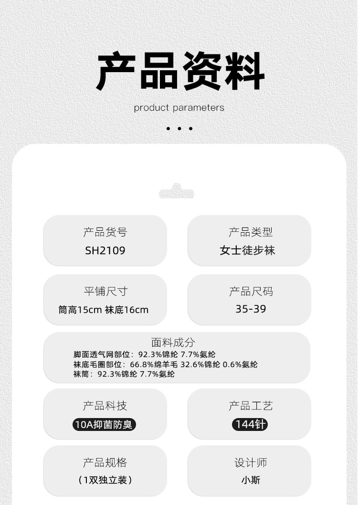 SH2109:脚面透气网部位:92.3%棉纶,7.7%氨纶
