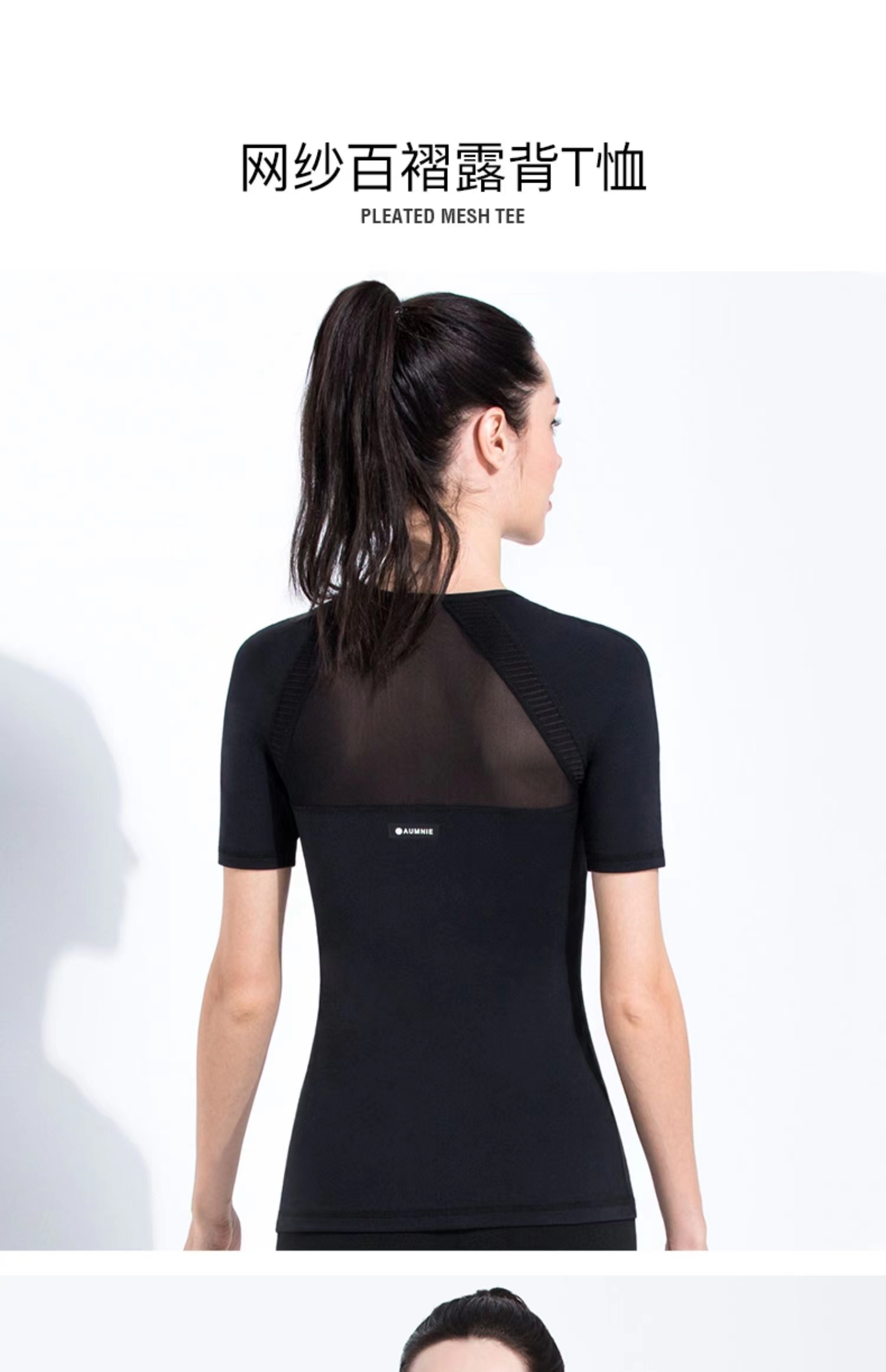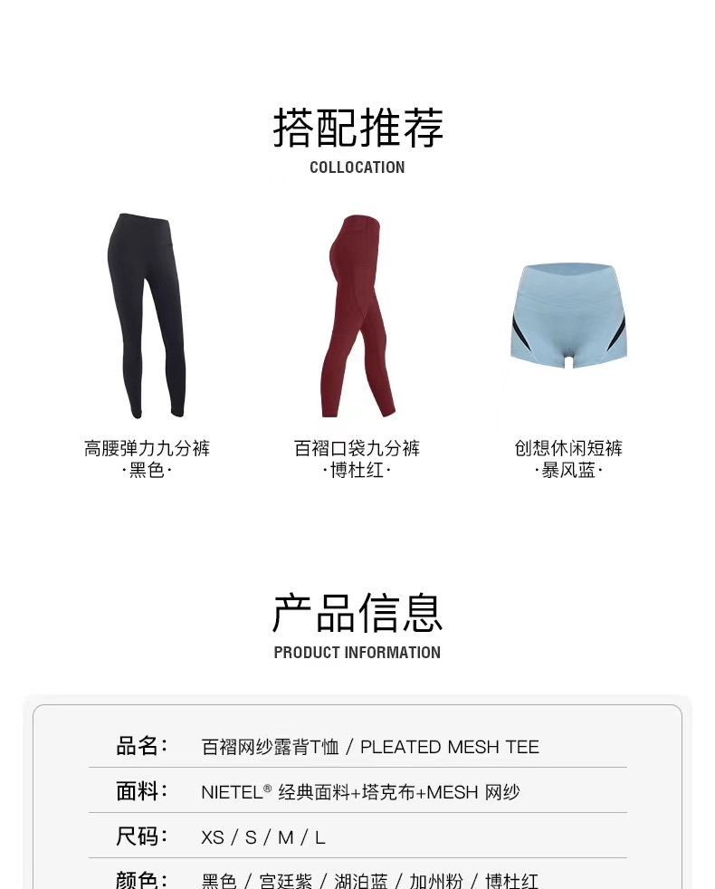 全配色 Pleated Mesh Tee / 百褶网纱露背T恤 含胸垫