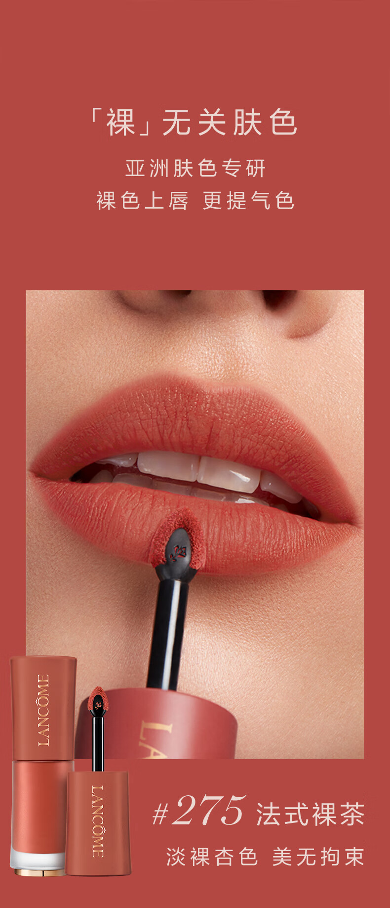 专柜340 兰蔻菁纯唇釉裸唇釉 温柔裸色 哑光奶茶色口红唇膏 188# 196# 279# 275#