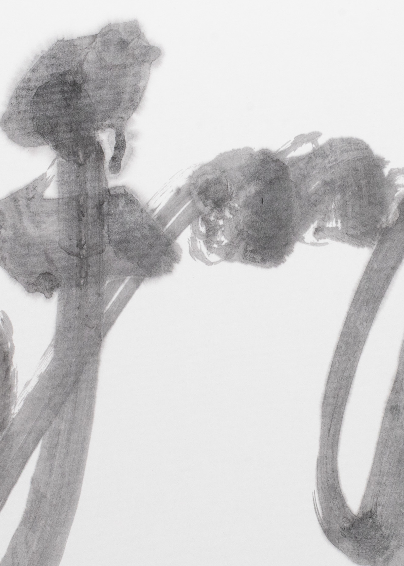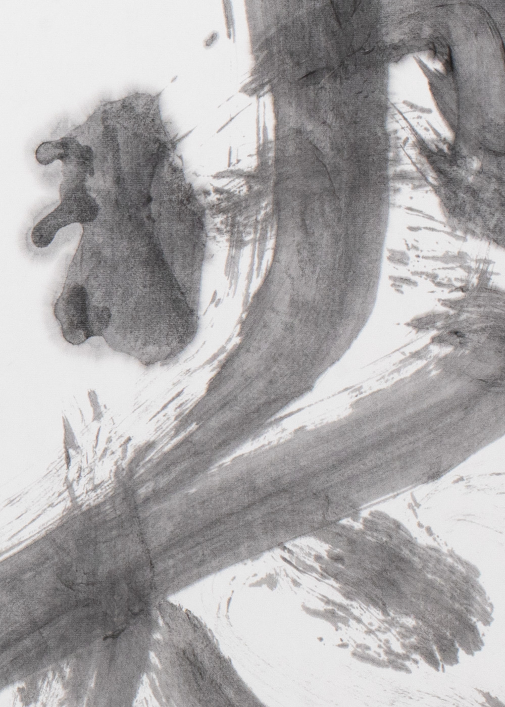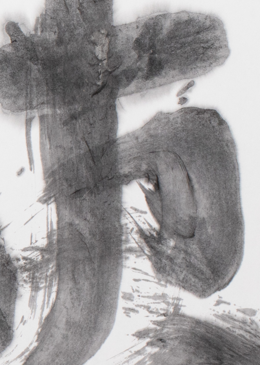 此作品为契合词中意境,用墨简淡,运笔悠然,点、划、 线,充满活力,气韵流畅,自由流淌,形成书法整体观感上的意境之美。