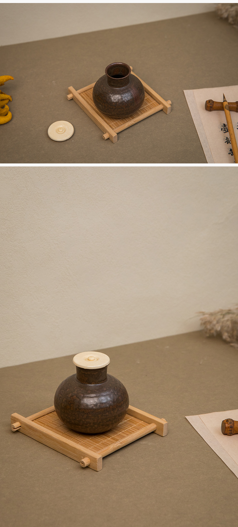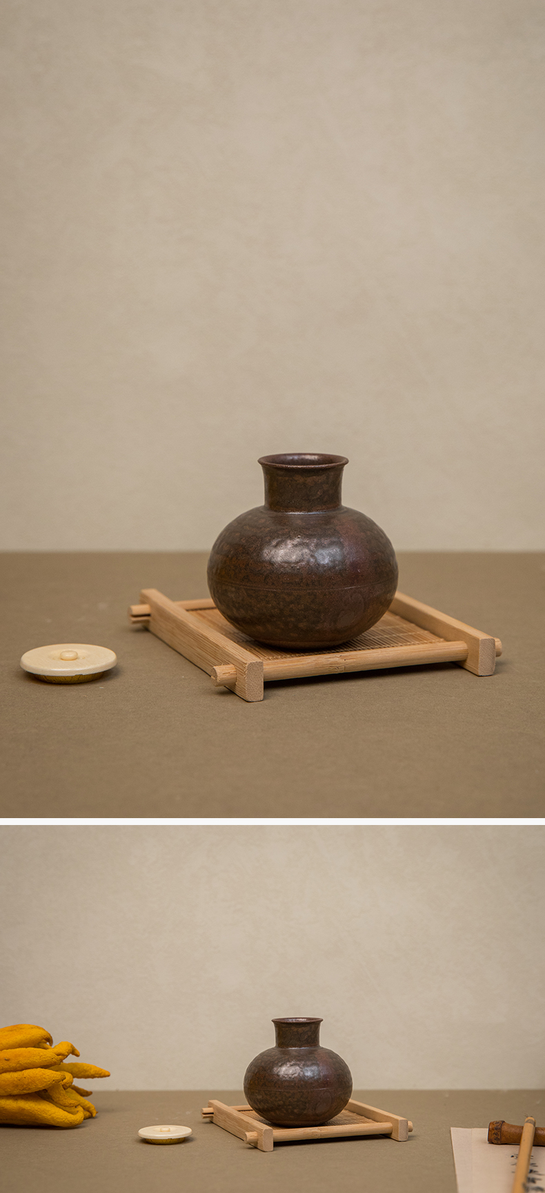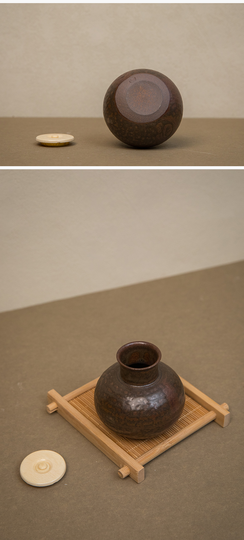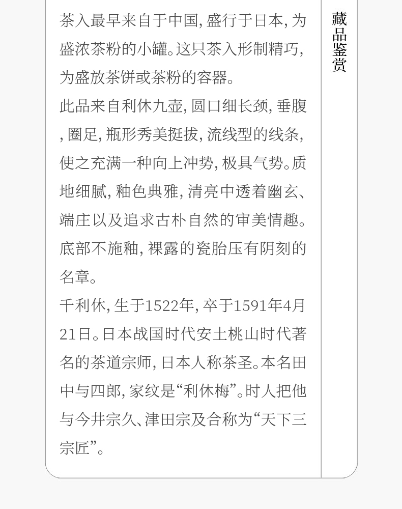 陶长颈鼓腹茶入