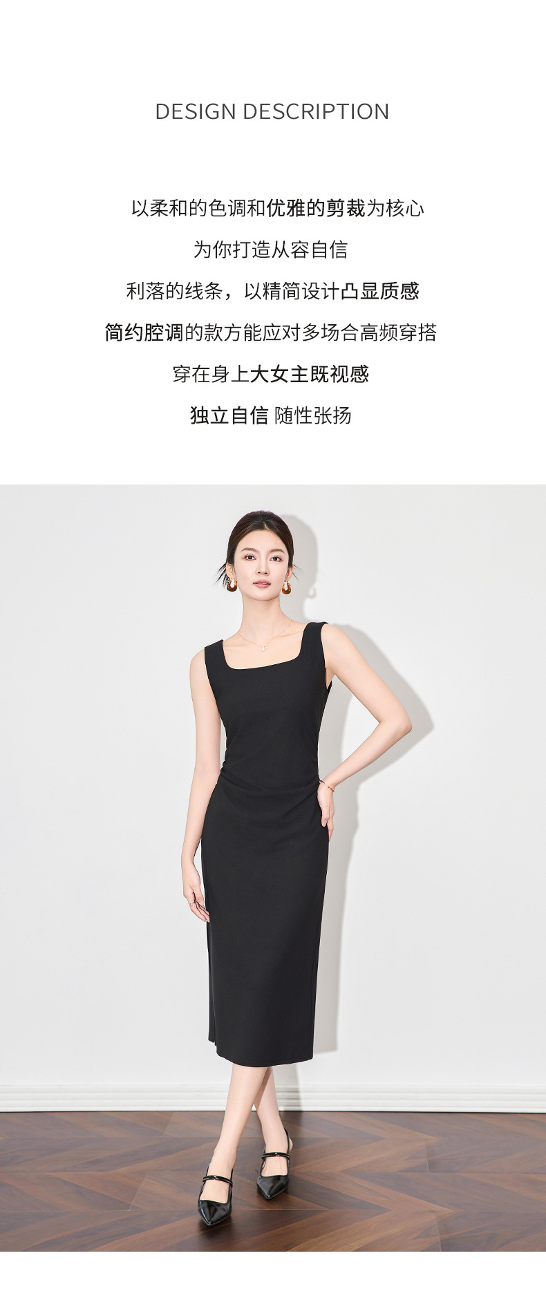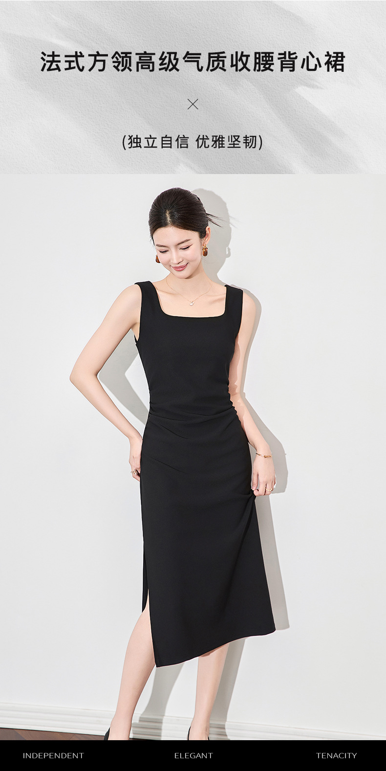 「高货wl」全新升级【铂金会员284/天猫379/差价95】(20219)洛诗琳法式方领吊带连衣裙2025夏季高级感气质收腰长裙女