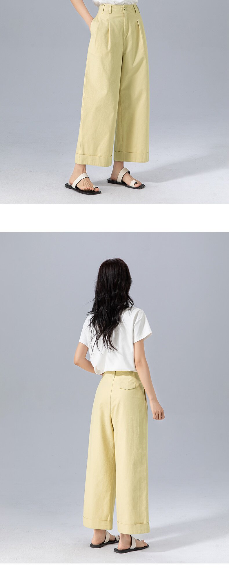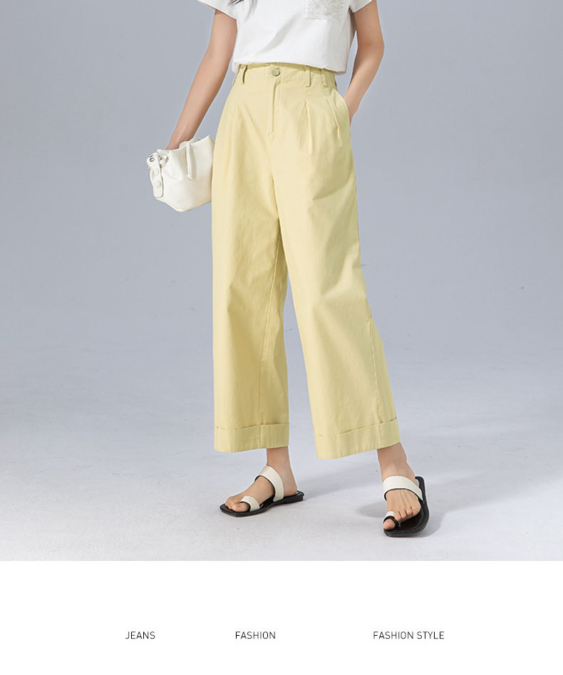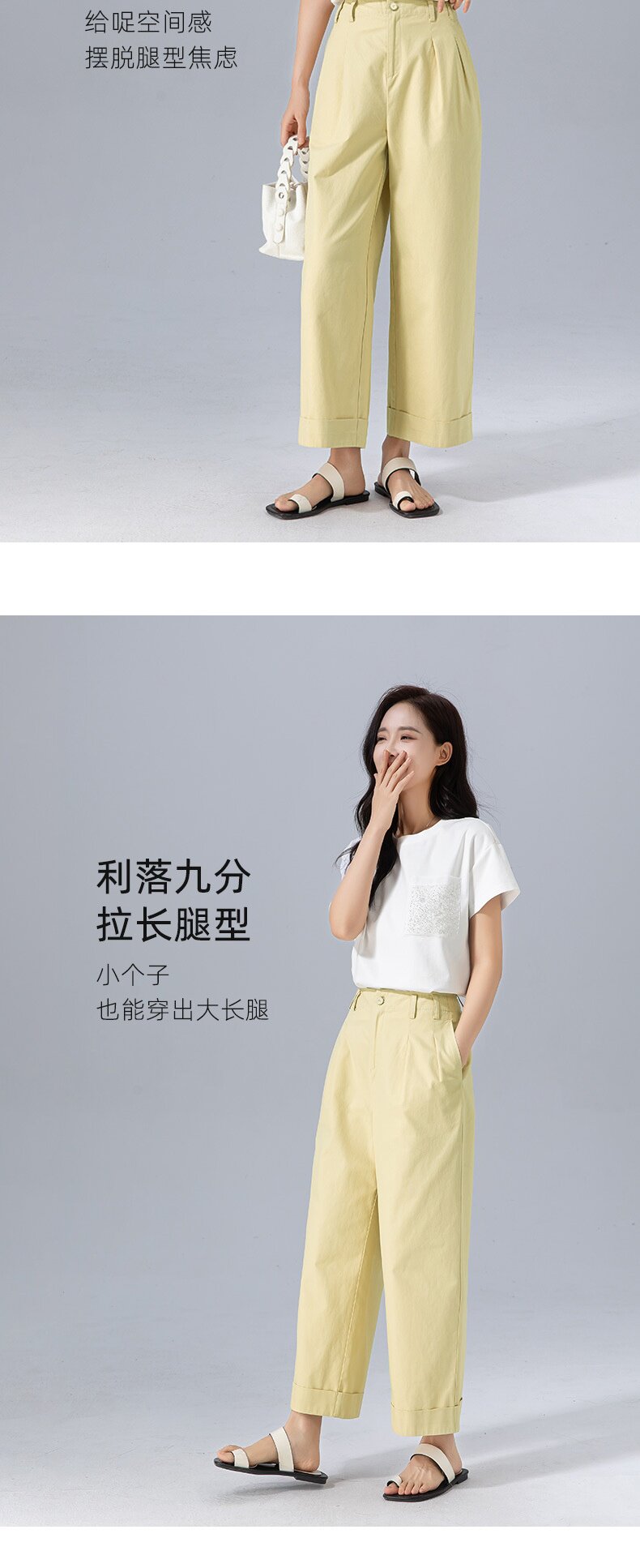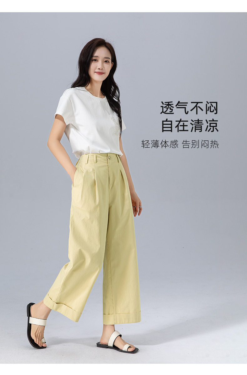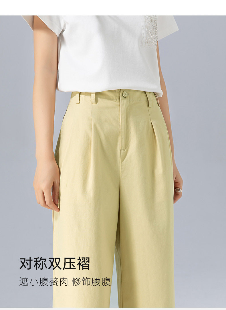 「高货xg」全新升级【铂金会员183/天猫239/差价56】(80102)洛诗琳气质水洗棉阔腿裤女2026新款高腰奶油黄九分直筒裤