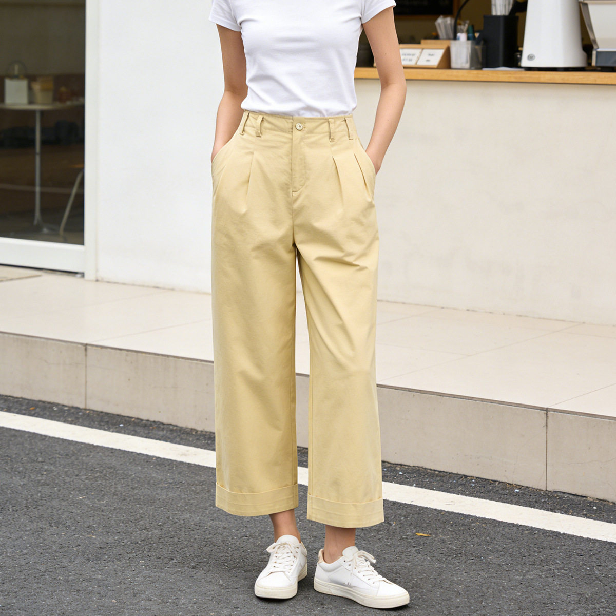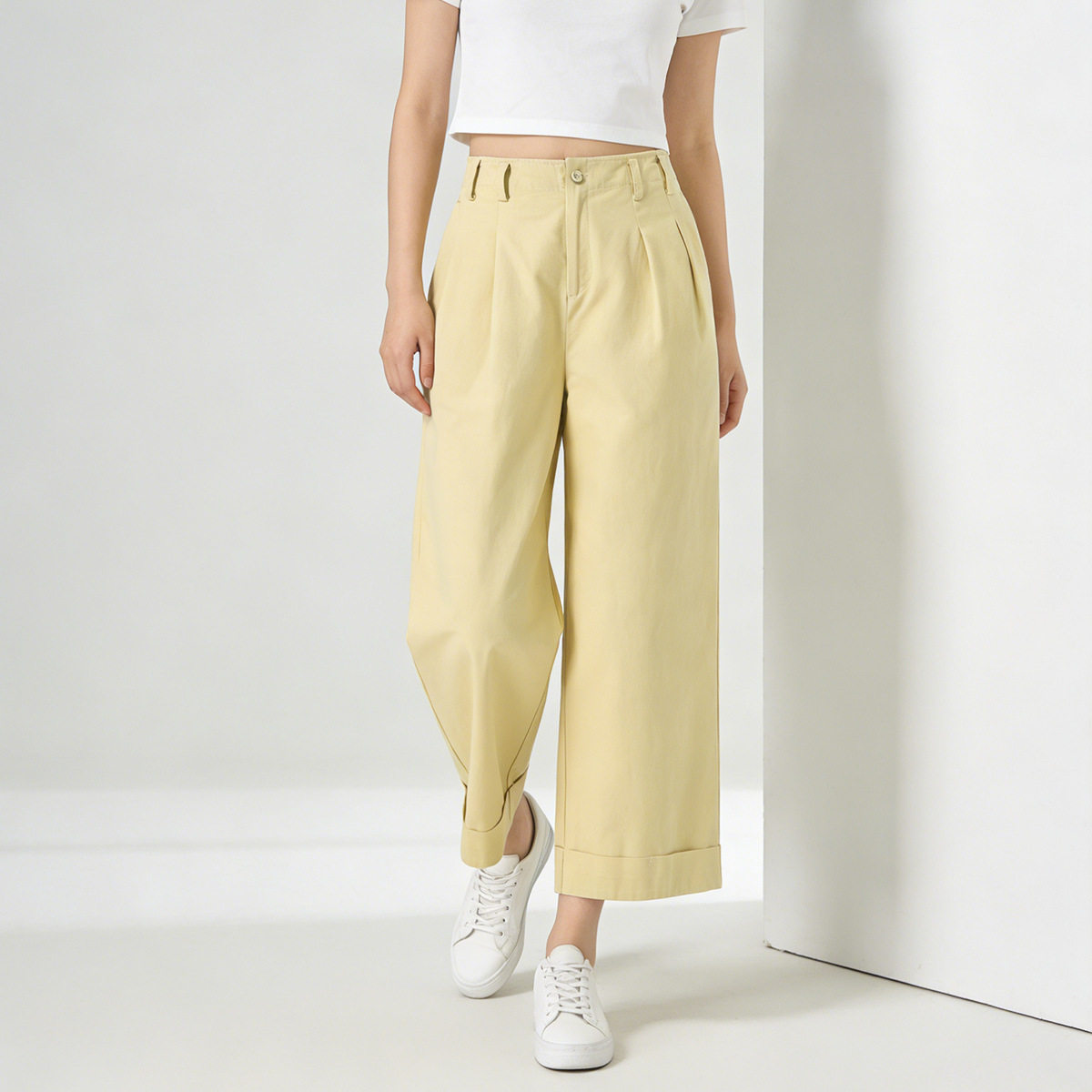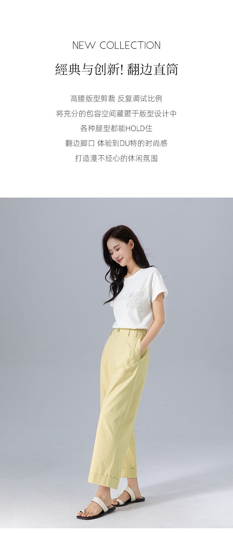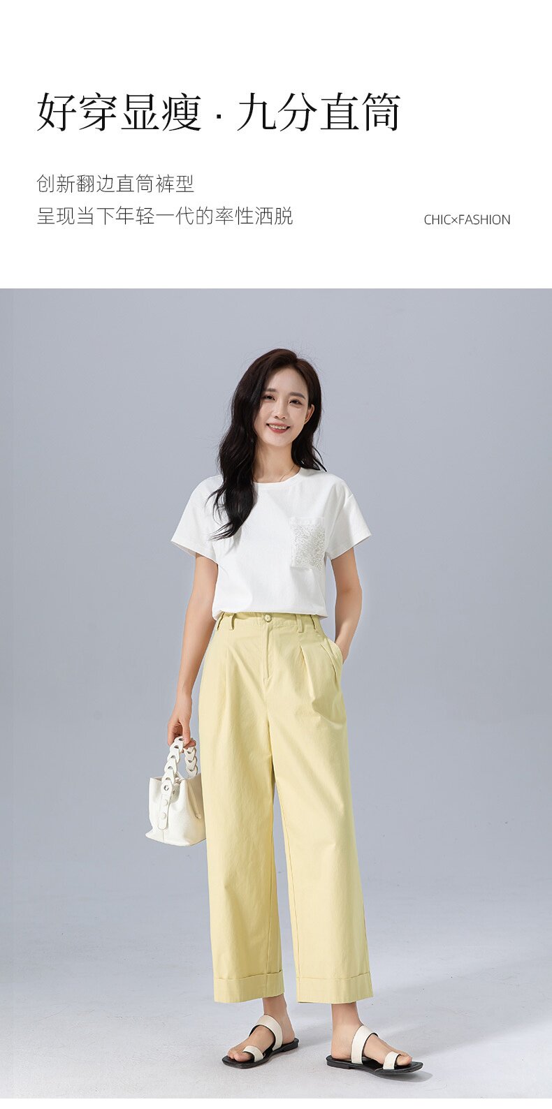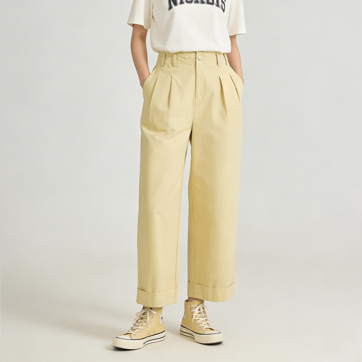 「高货xg」全新升级【铂金会员183/天猫239/差价56】(80102)洛诗琳气质水洗棉阔腿裤女2026新款高腰奶油黄九分直筒裤