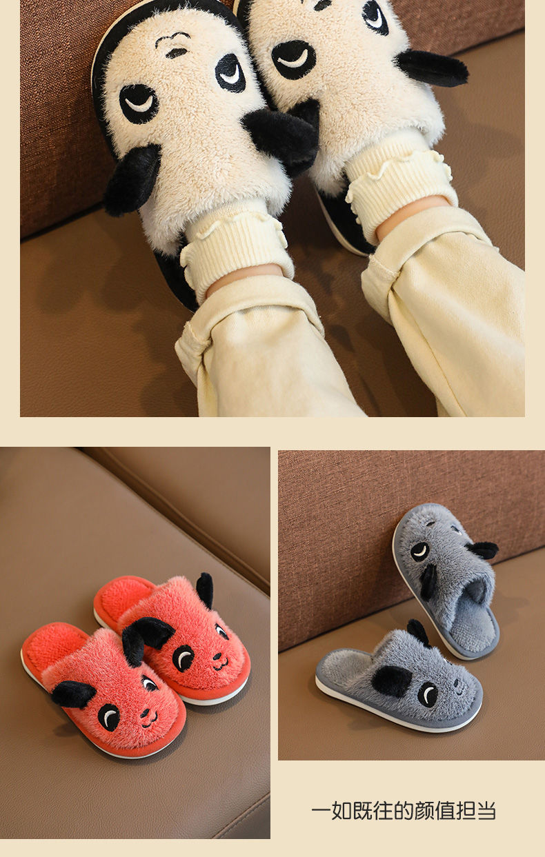 DD-儿童棉拖鞋秋冬季卡通大中男童女童室内家居防滑宝宝小孩毛毛拖鞋