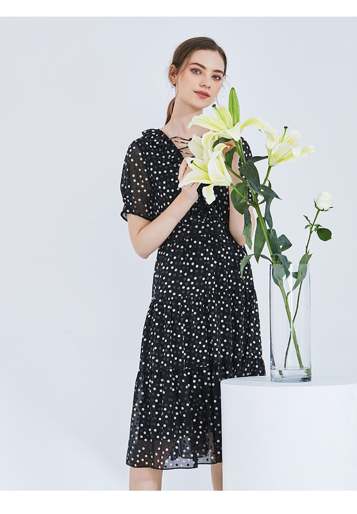 EITIE爱特爱品牌女装时尚碎花长袖蕾丝连衣裙修身短裙5807505