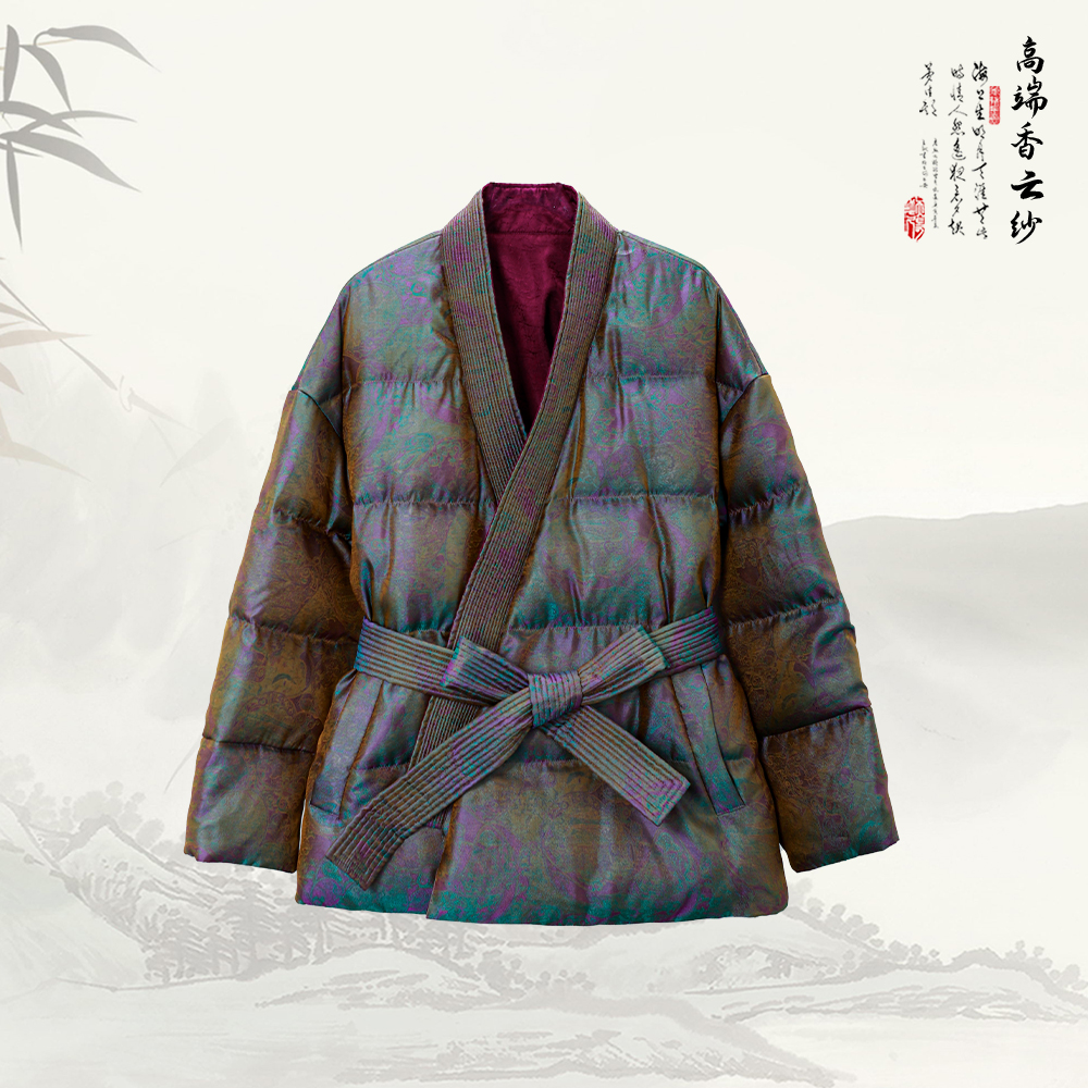 NANSONGSILK/NS桑蚕丝国风新中式V领系带鹅绒服547118南宋