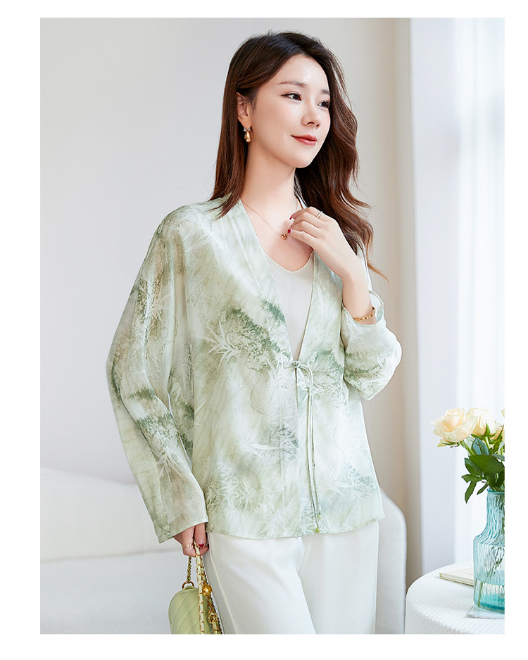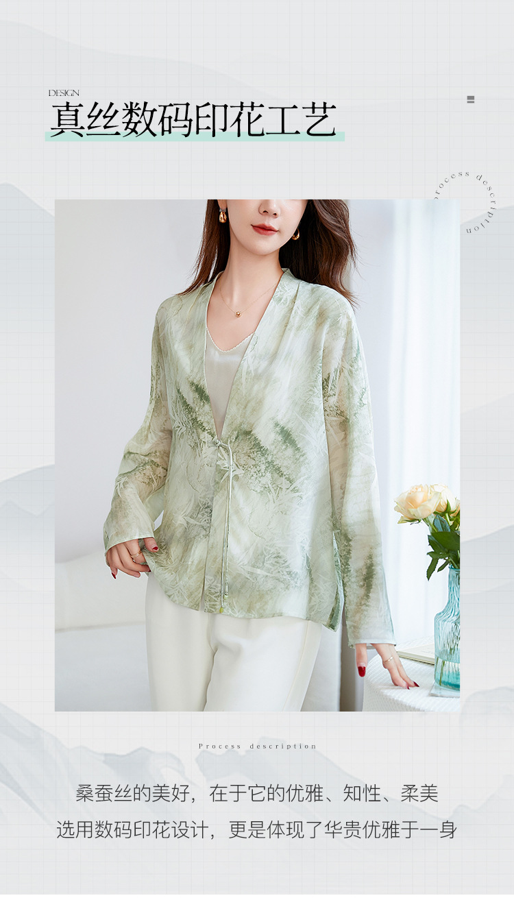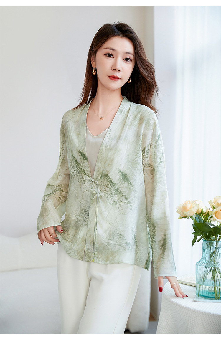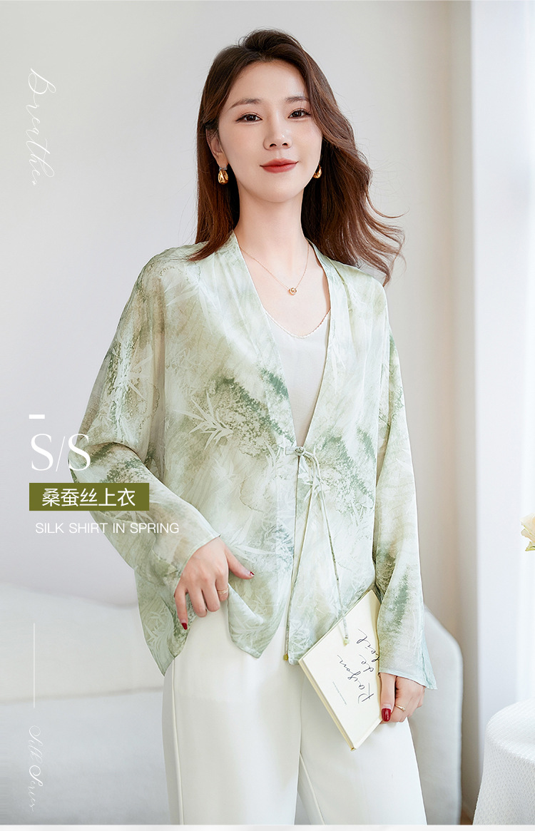 丁摩真丝衬衫女长袖衬衣新款气质休闲宽松显瘦古风印花桑蚕丝上衣AL12599600