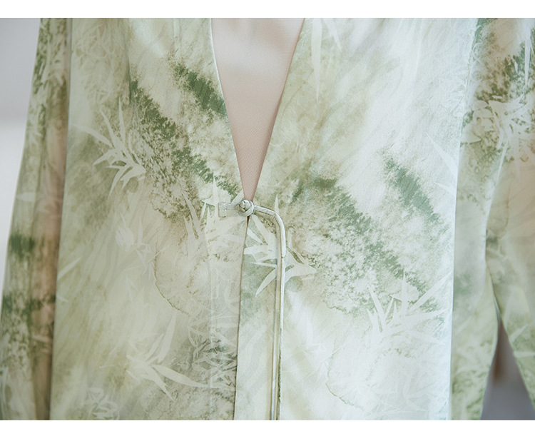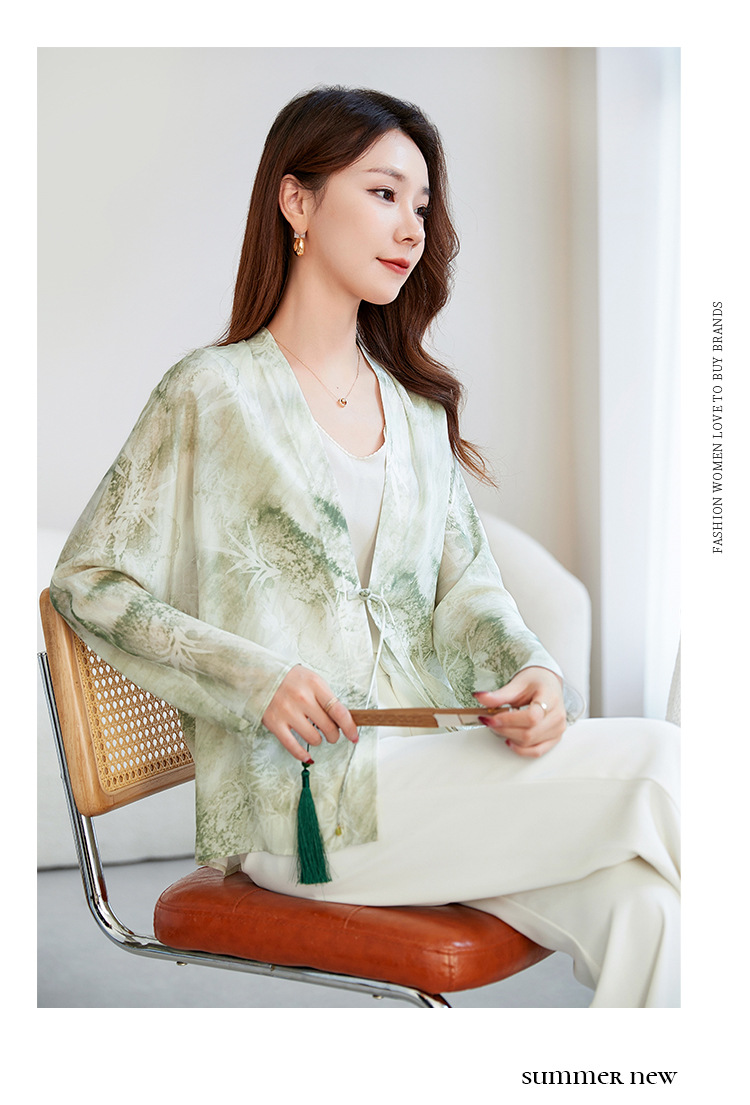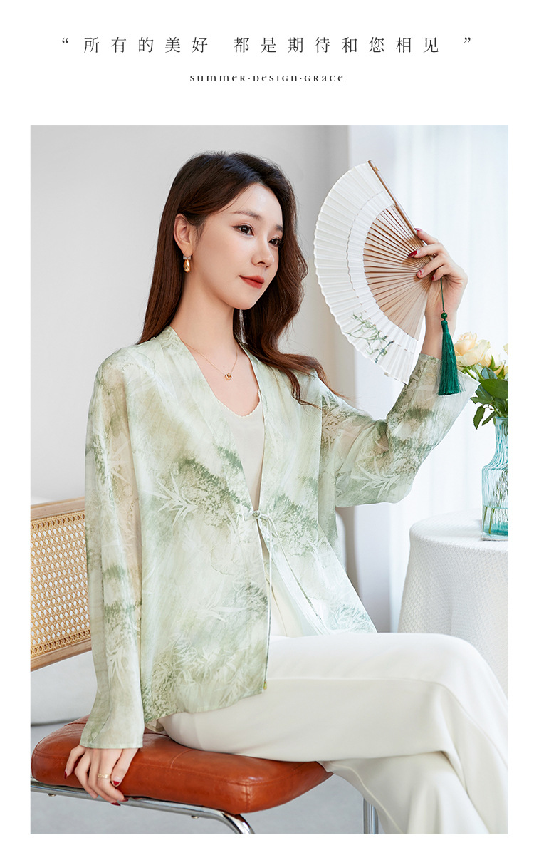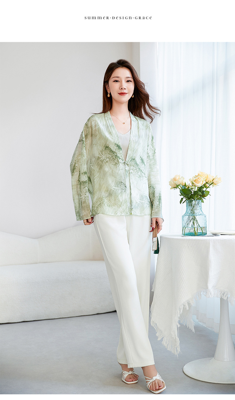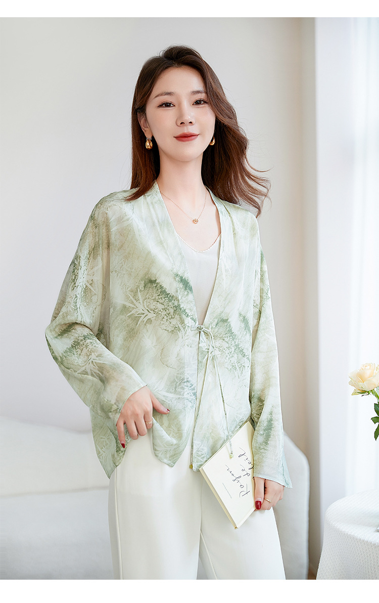 丁摩真丝衬衫女长袖衬衣新款气质休闲宽松显瘦古风印花桑蚕丝上衣AL12599600