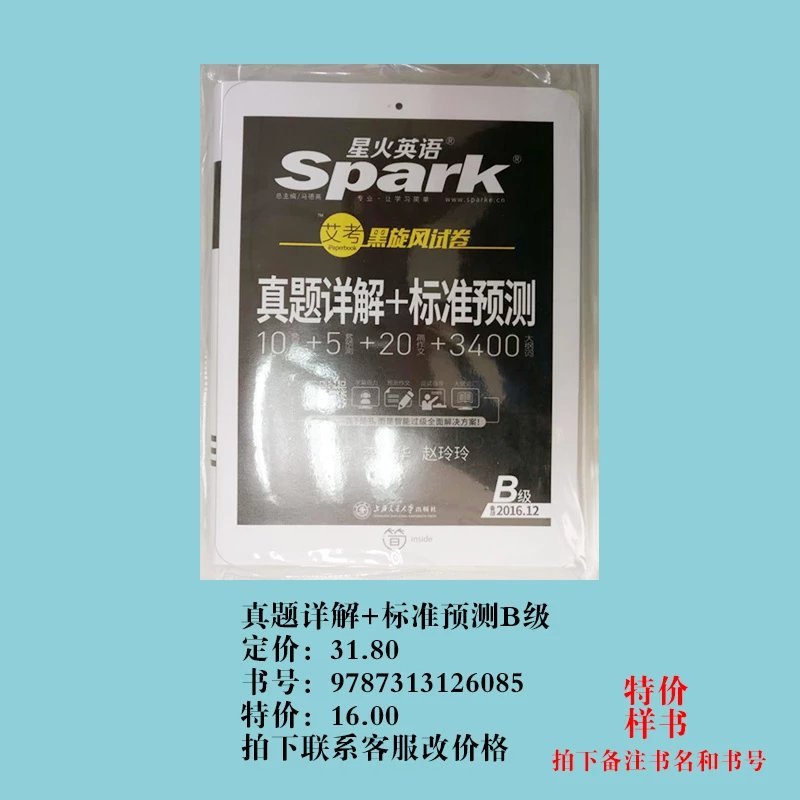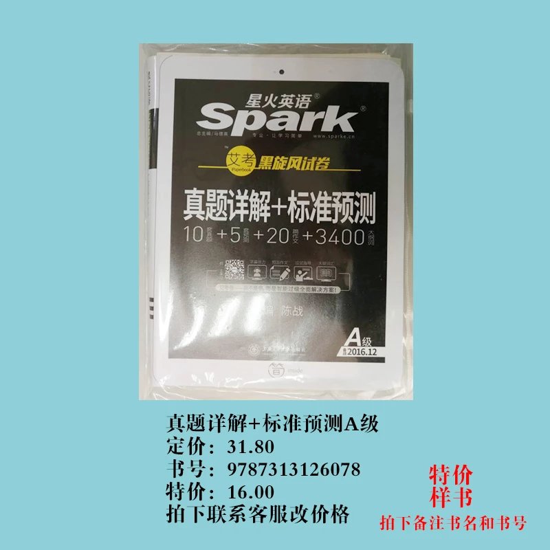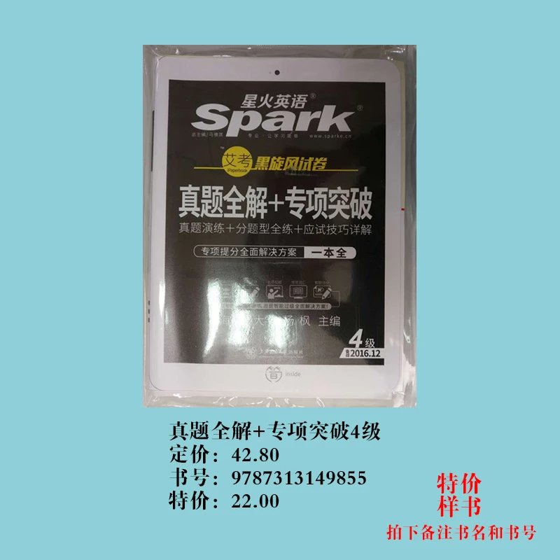 星火英语系列样书特价 所有样书都完好无损,48折——51折销售。每种书只有1——2本,先咨询客服,确定有书再拍下;或者您直接拍,如果没有我们会帮你退款。 拍下一定要备注书名和书号啊!