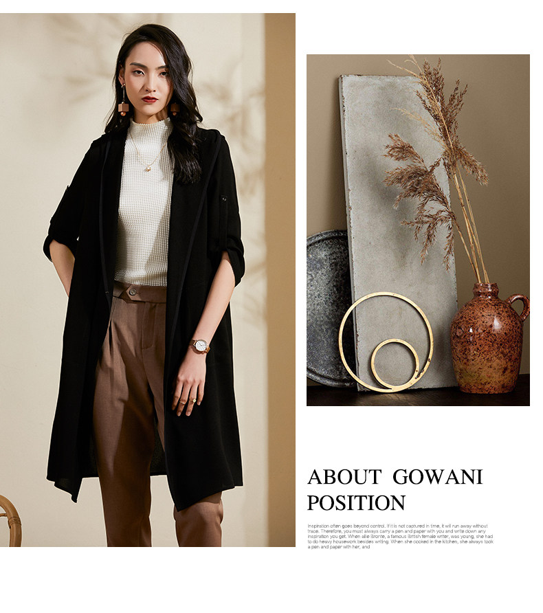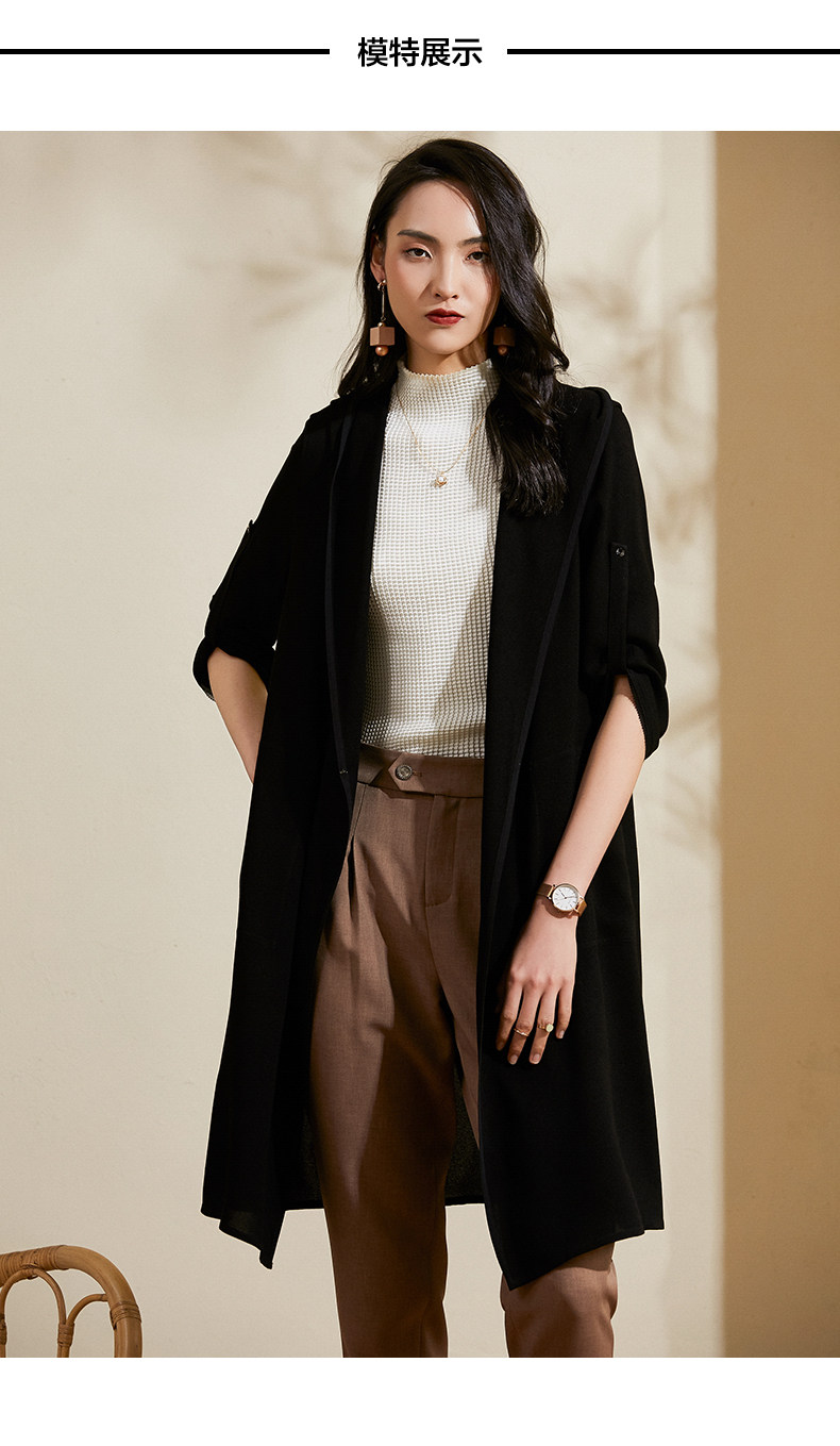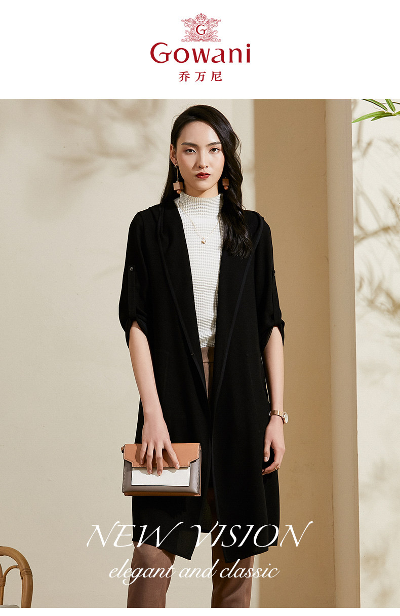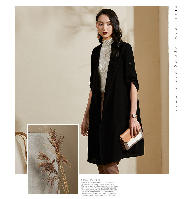 乔万尼风衣新款女时尚洋气流行休闲黑色外套薄款中长款夏ES2A113