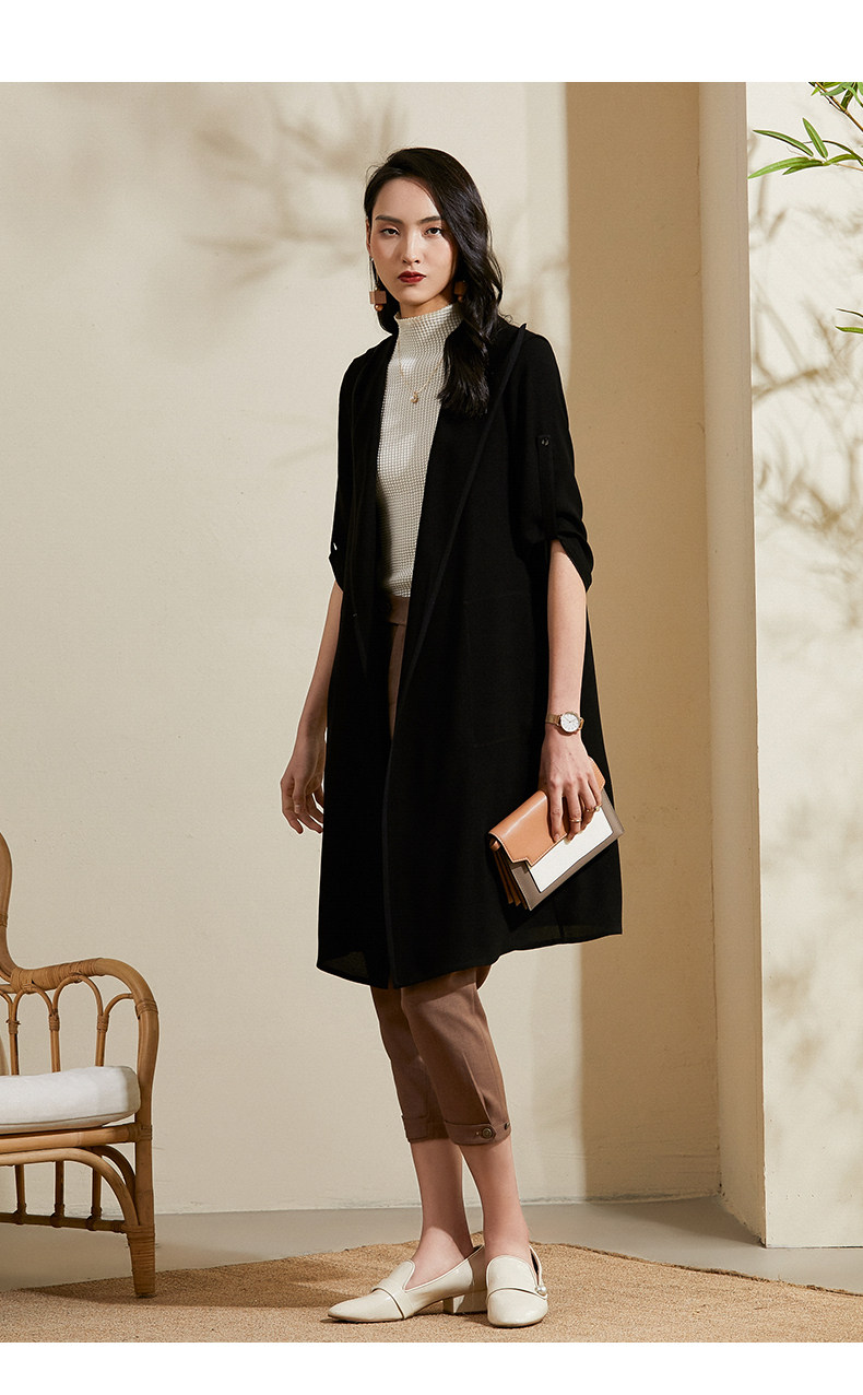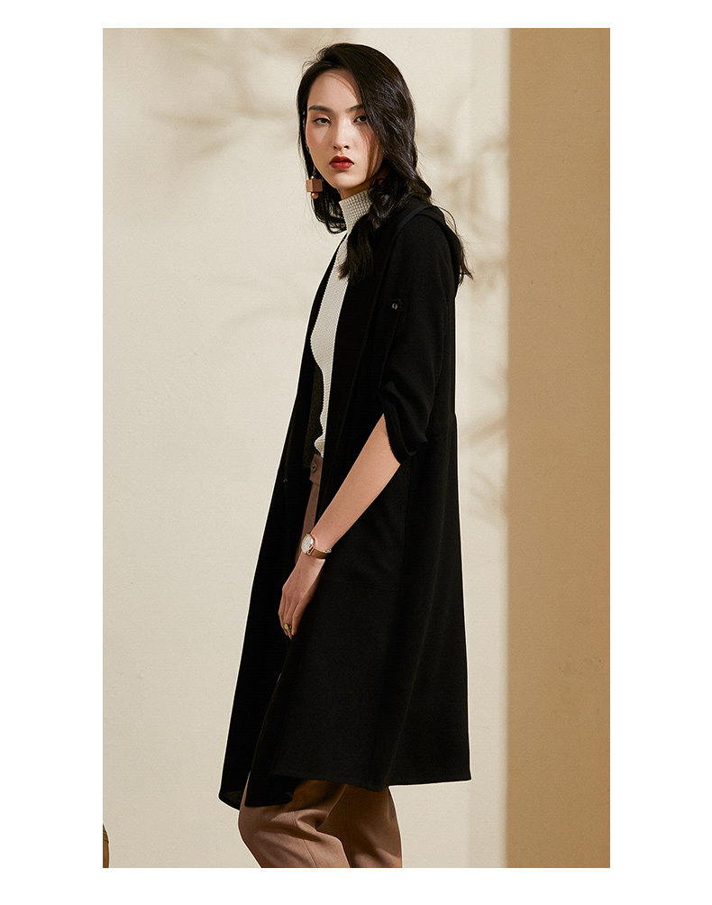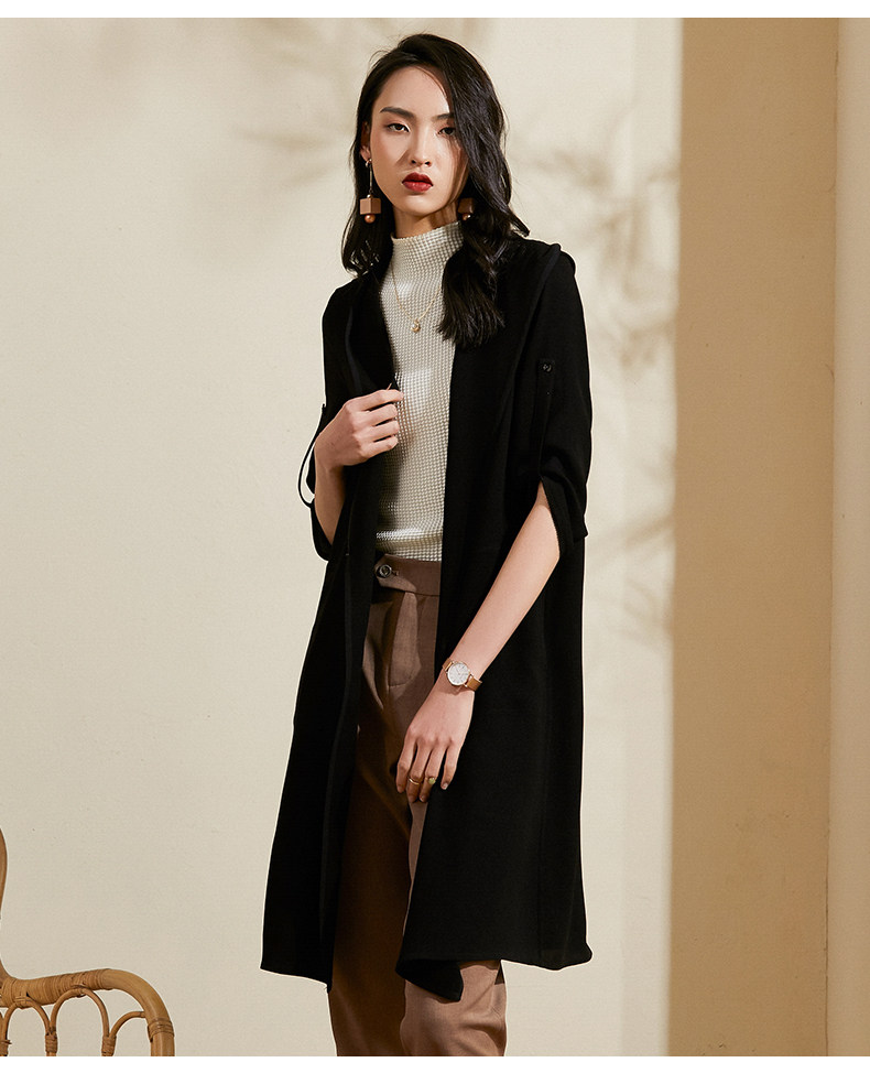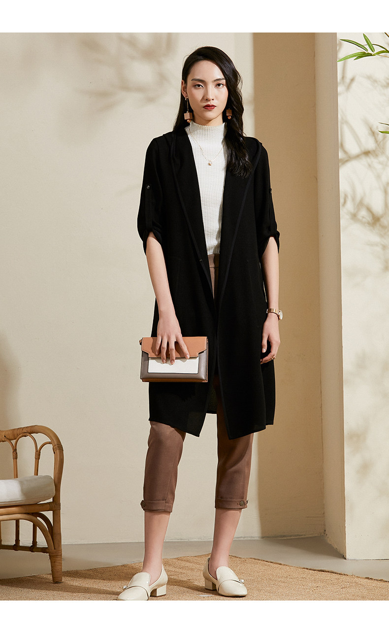 乔万尼风衣新款女时尚洋气流行休闲黑色外套薄款中长款夏ES2A113