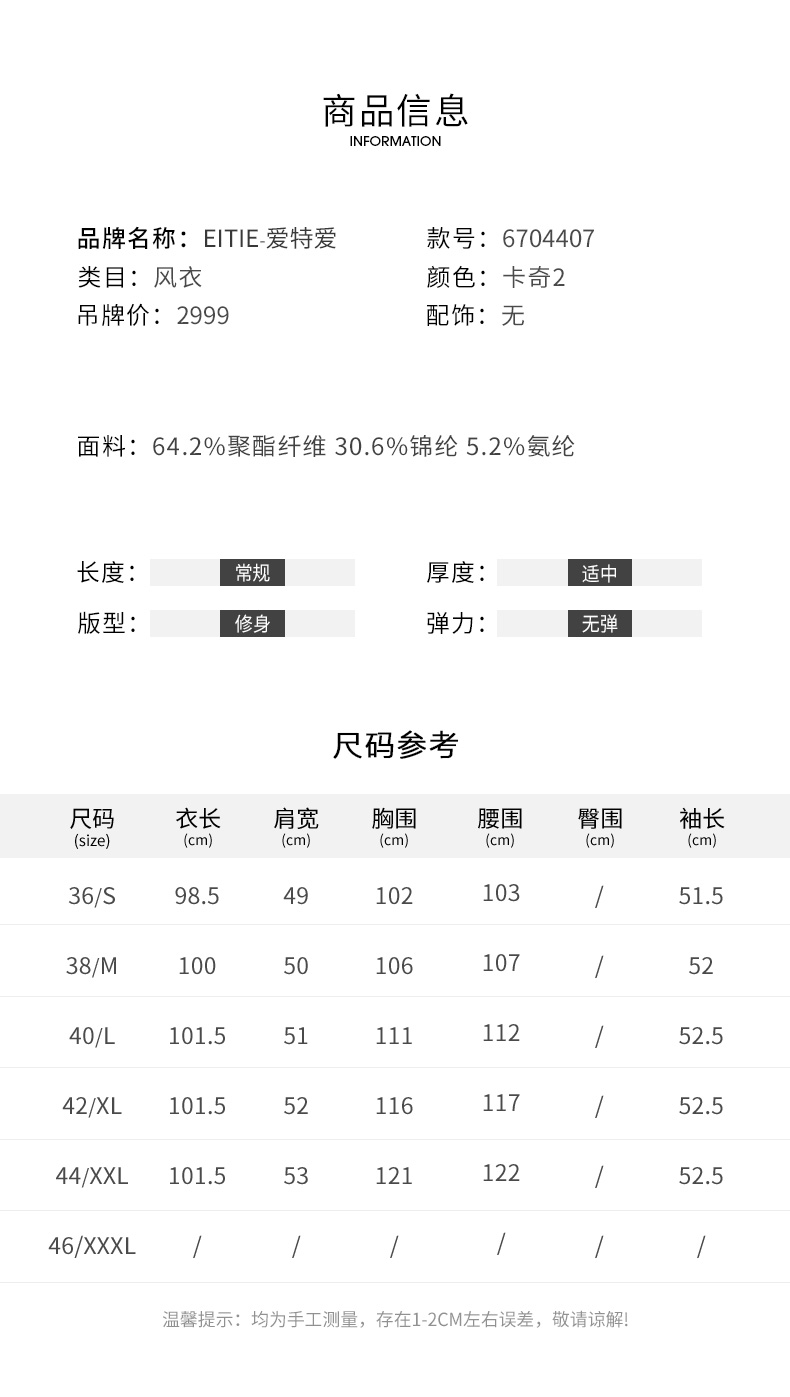 EITIE爱特爱纪秋季新款纯色显瘦风衣6704407