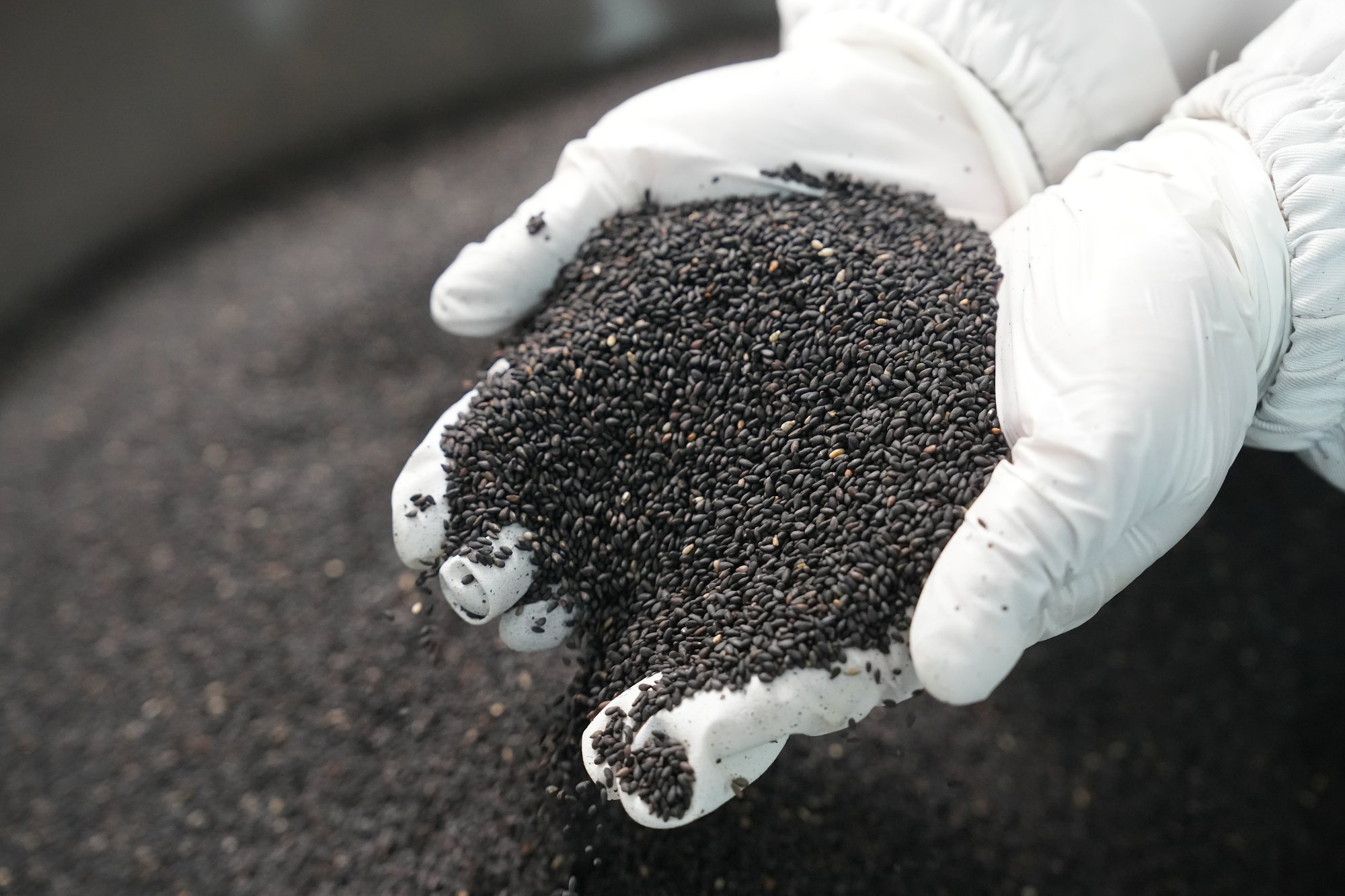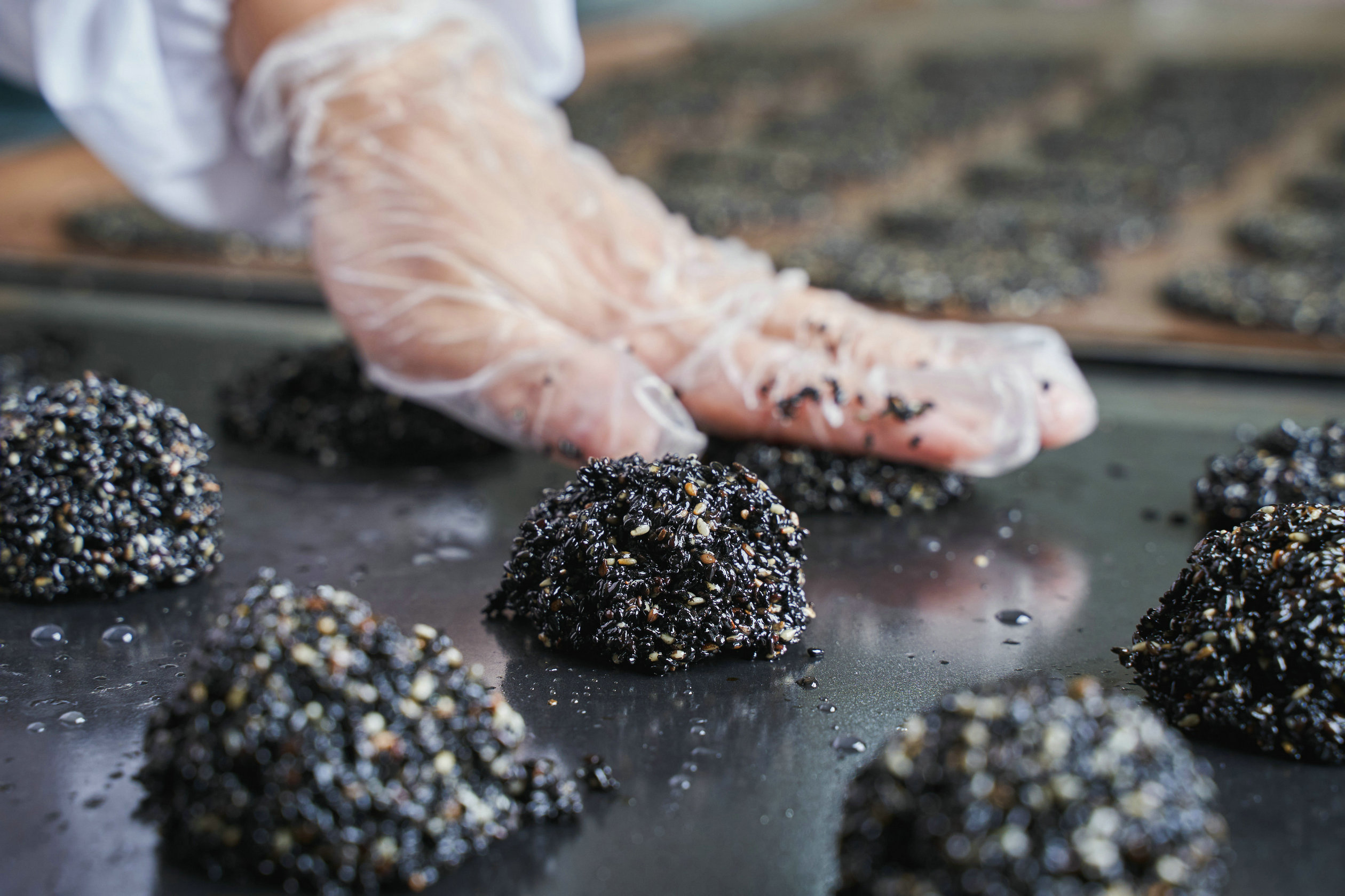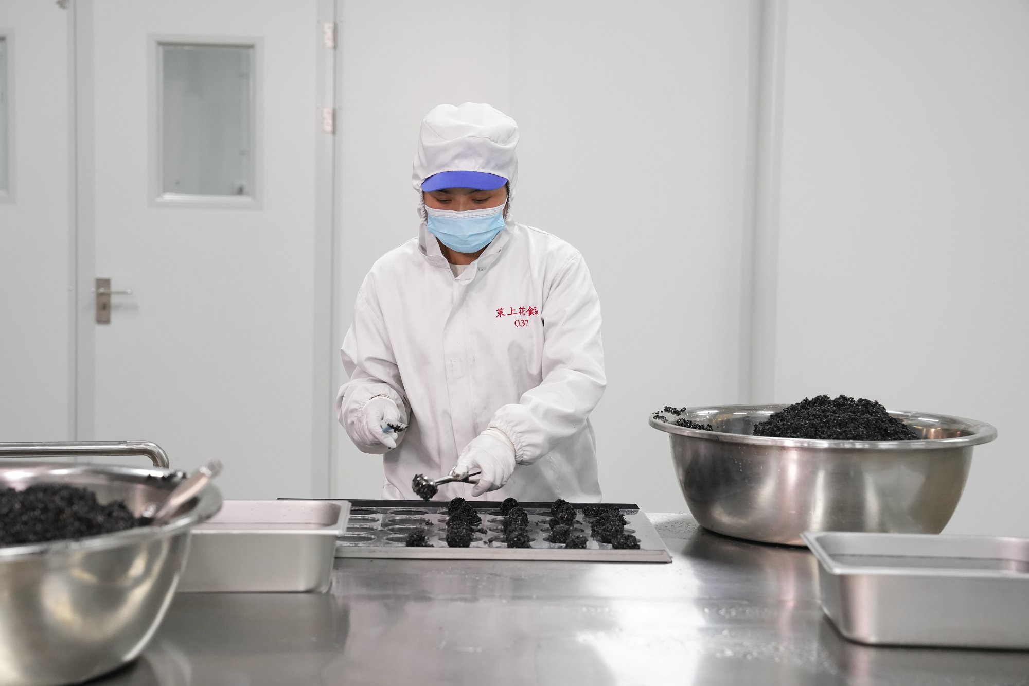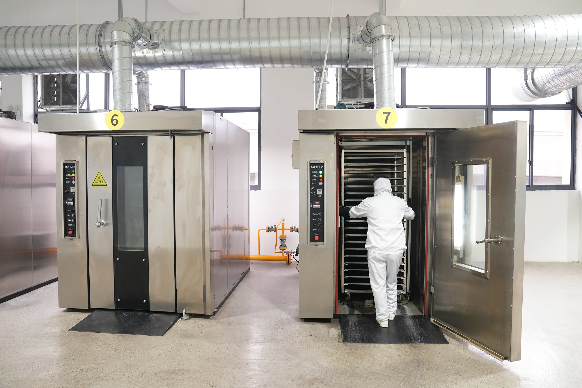 将粘合好的芝麻饼放入烤箱中,通过精确温控去掉水分,几个小时后即可出炉。