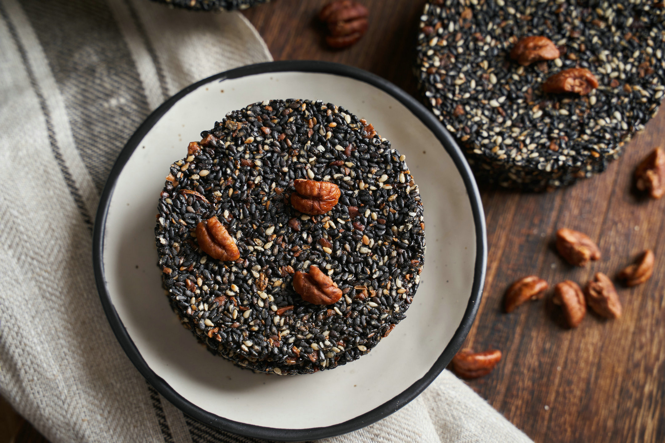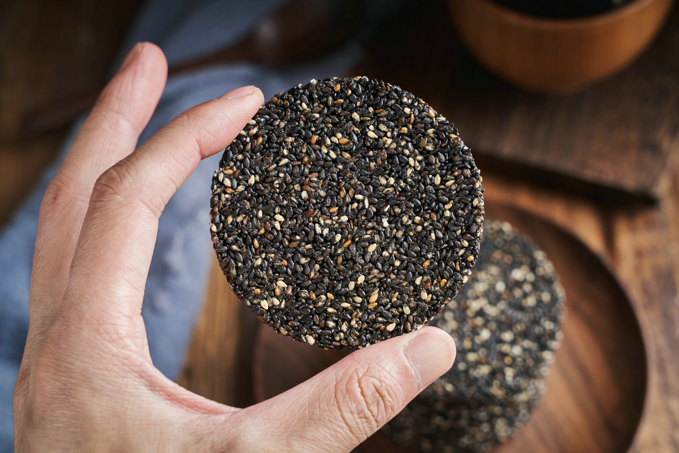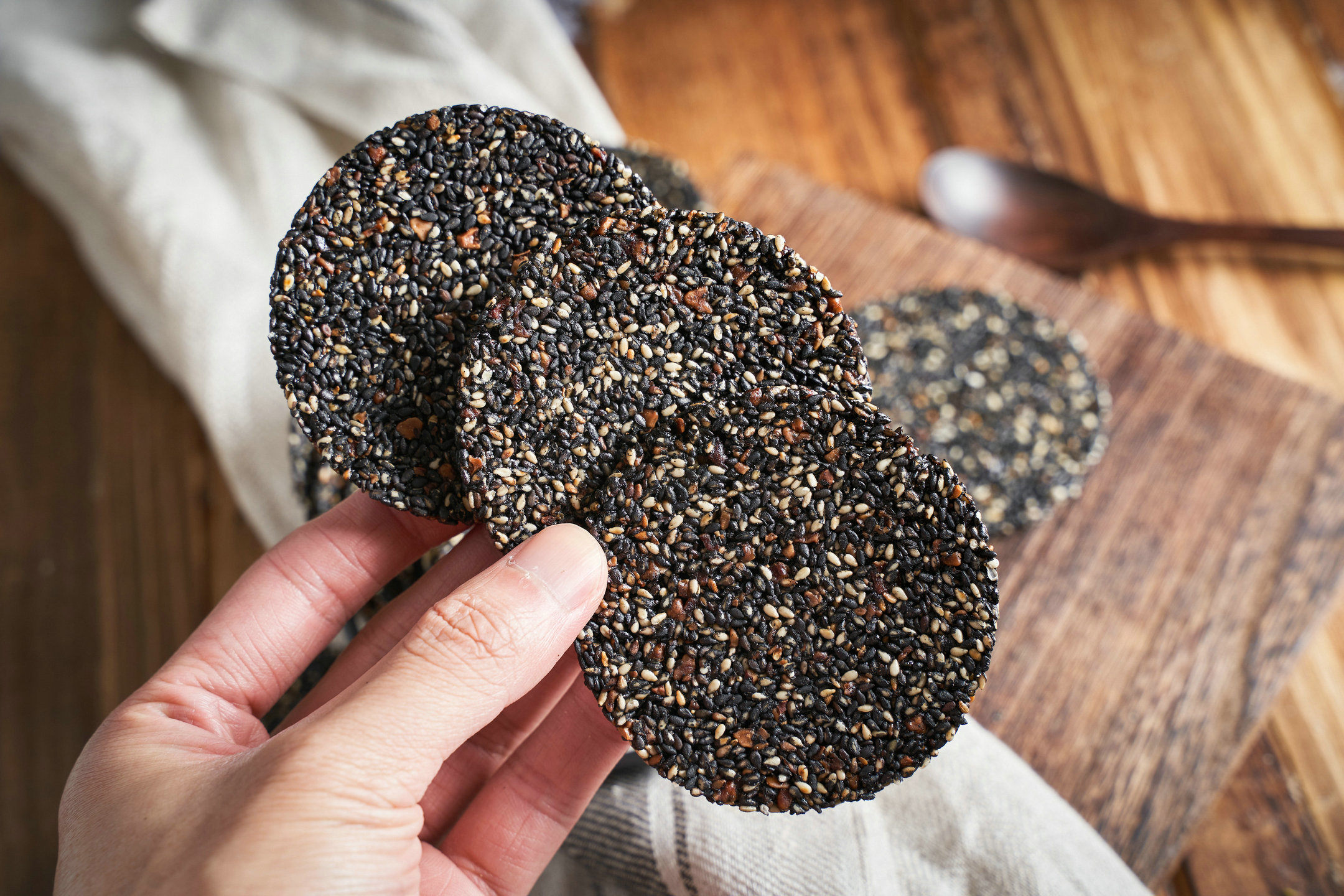 山核桃芝麻饼(黑芝麻75%、山核桃仁15%、蜂蜜5%、鲜鸡蛋5%)