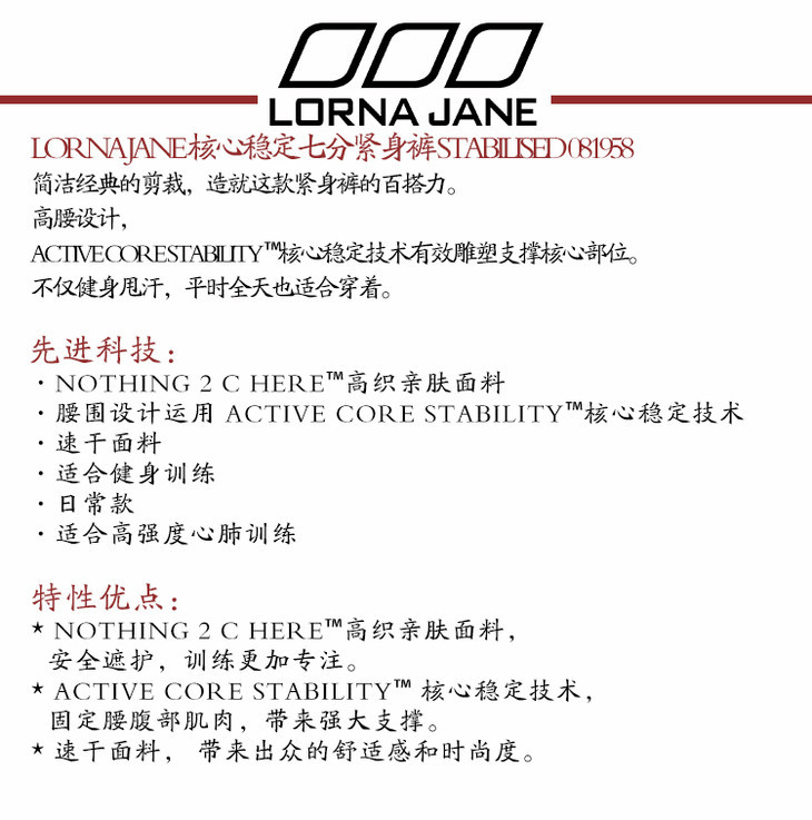 【清仓秒】澳洲 Lorna Jane 核心稳定七分紧身裤 STABILISED 081958(清仓产品,收货7天内支持调货、不退款)