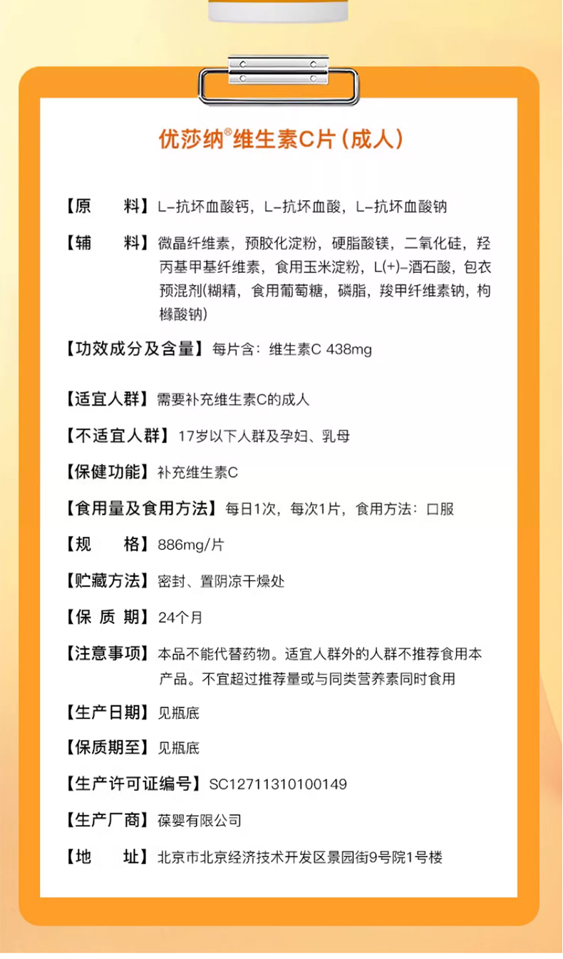 优莎纳维生素C片成人24.8g(28片)