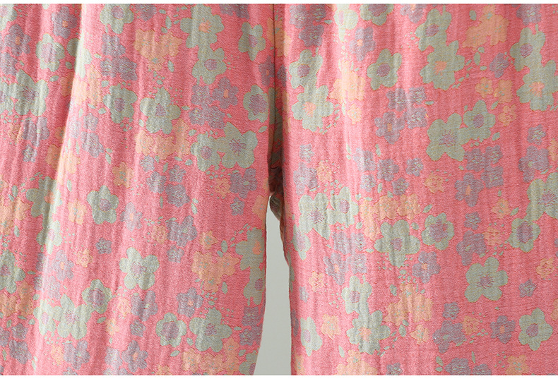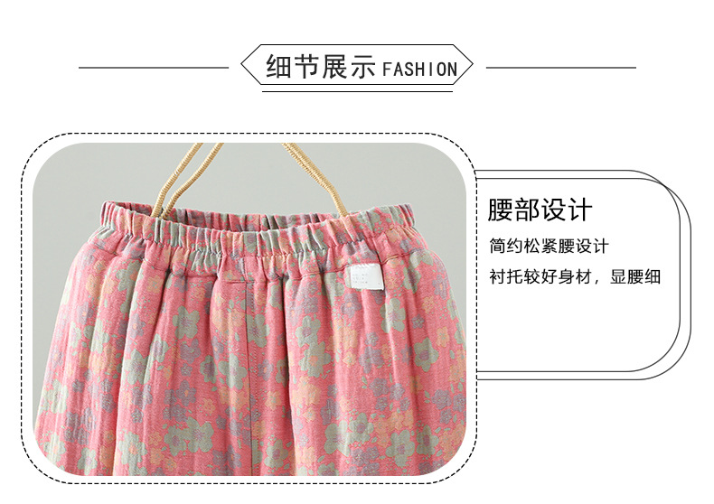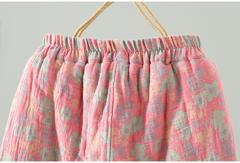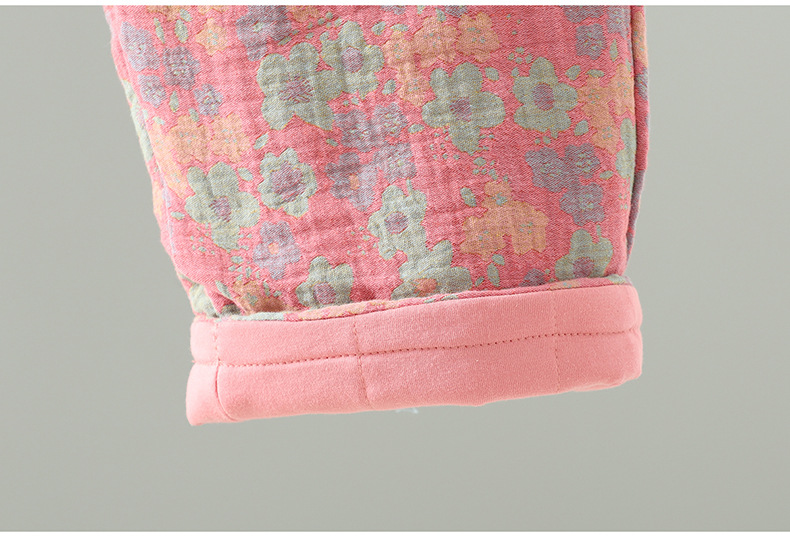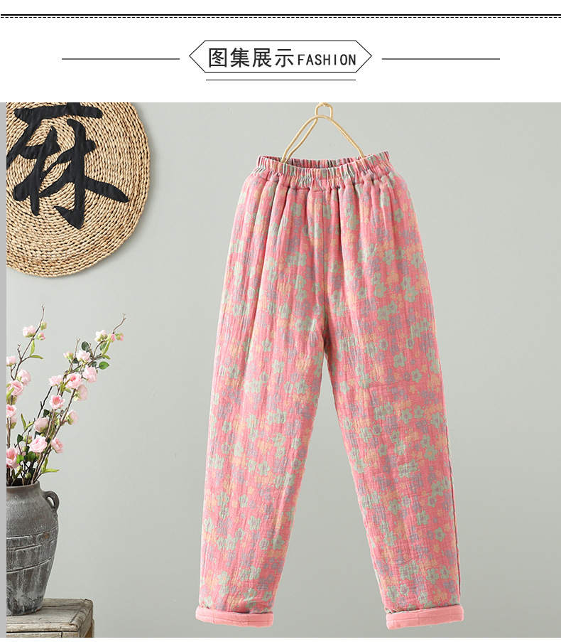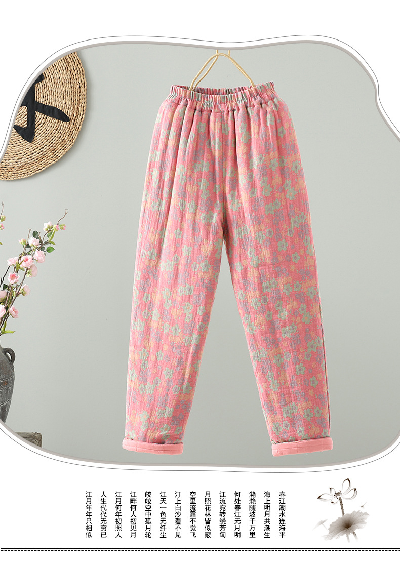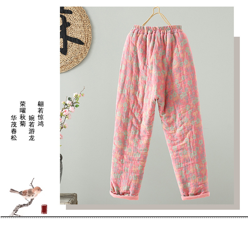 GYH 3758复古印花棉裤拼接加厚休闲宽松直筒裤