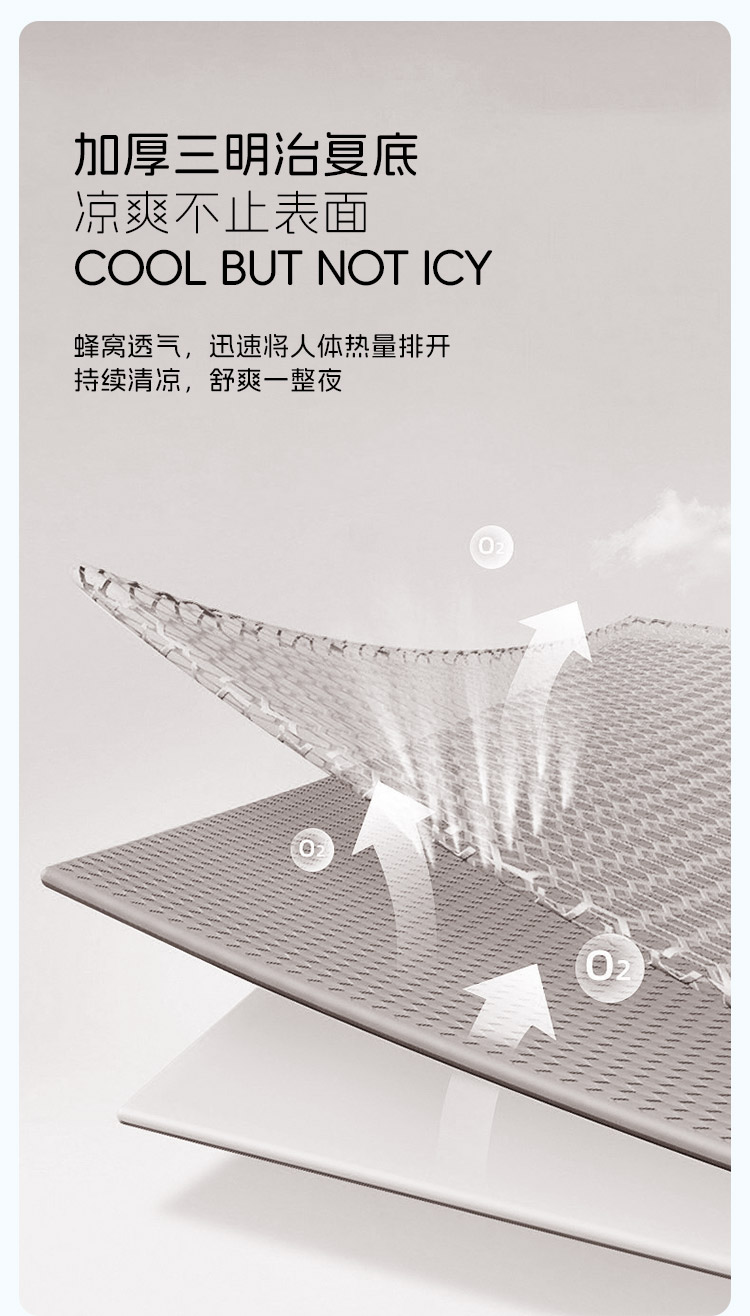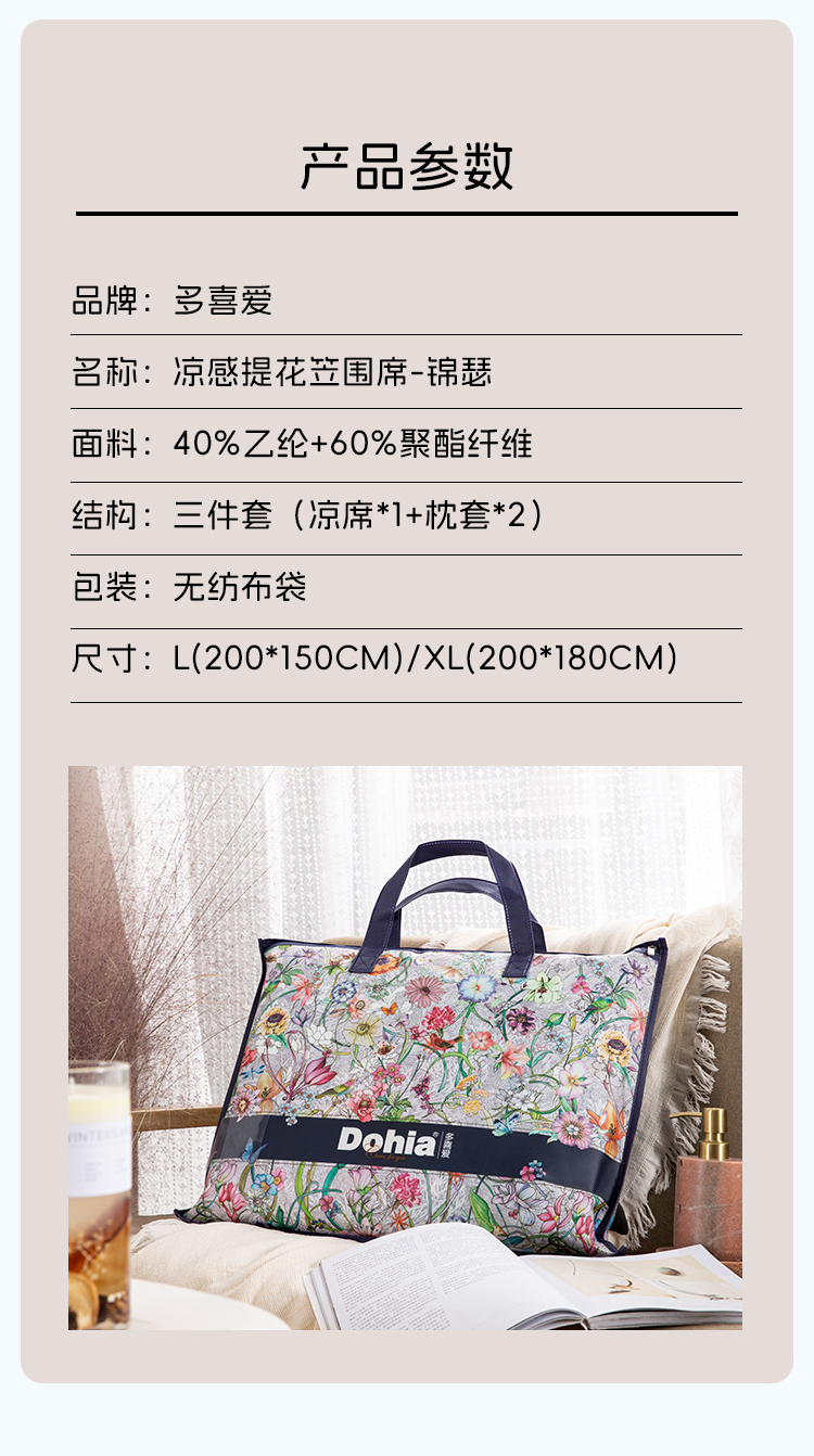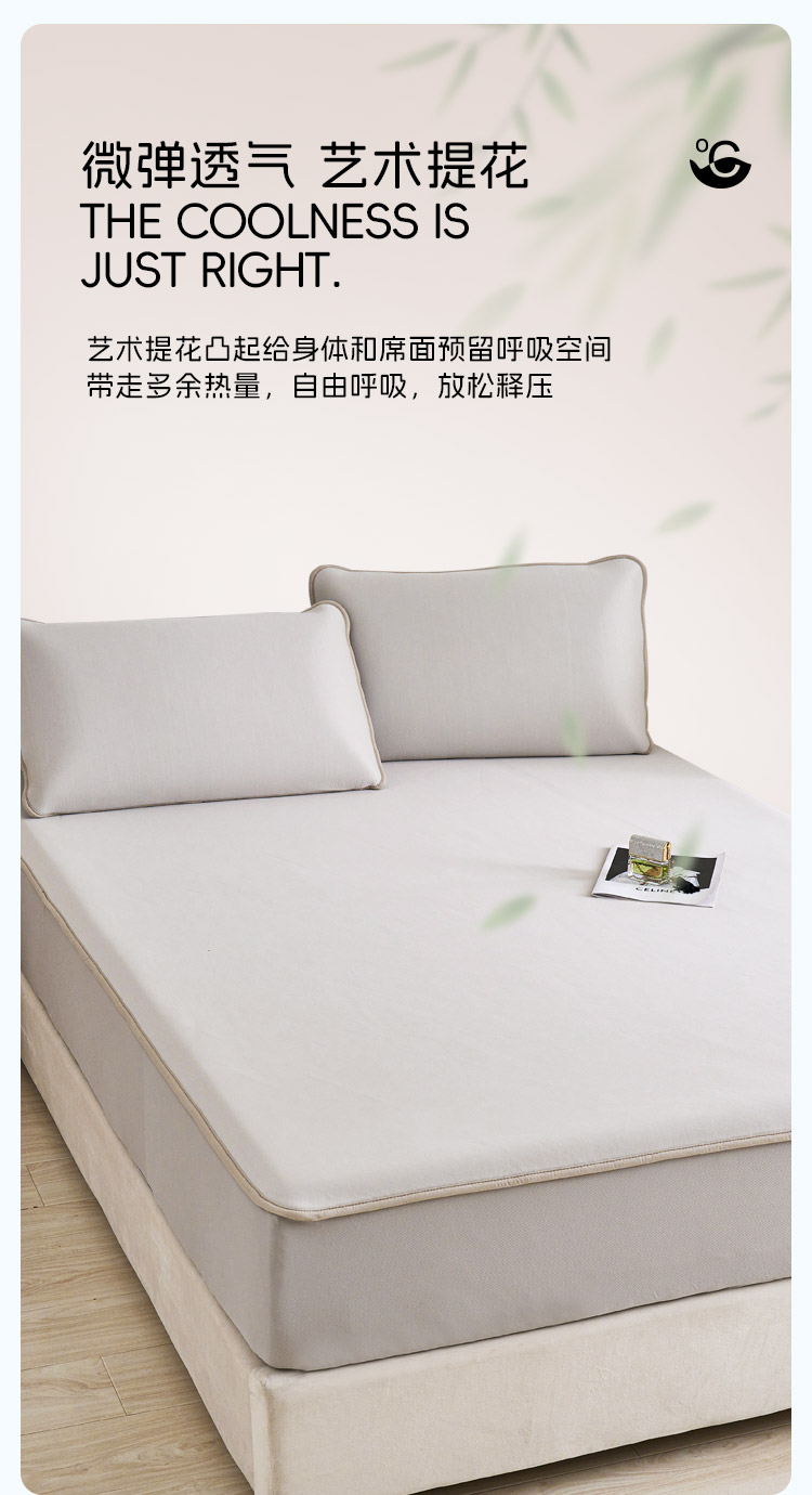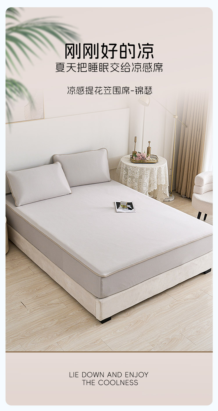 多喜爱 凉感提花围席三件套-锦瑟 【科技凉感面料】 【艺术提花】【加厚三明治复底】【A类标准】【机洗水洗】【360°全包裹设计】凉而不冰久睡不闷热 柔滑亲肤 透气排湿