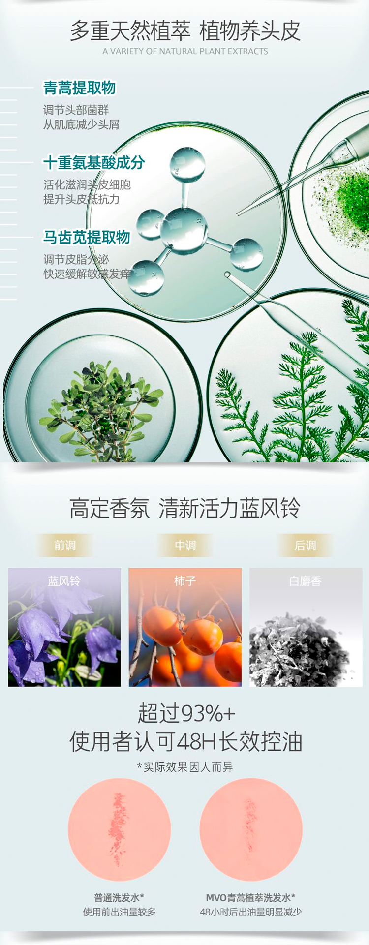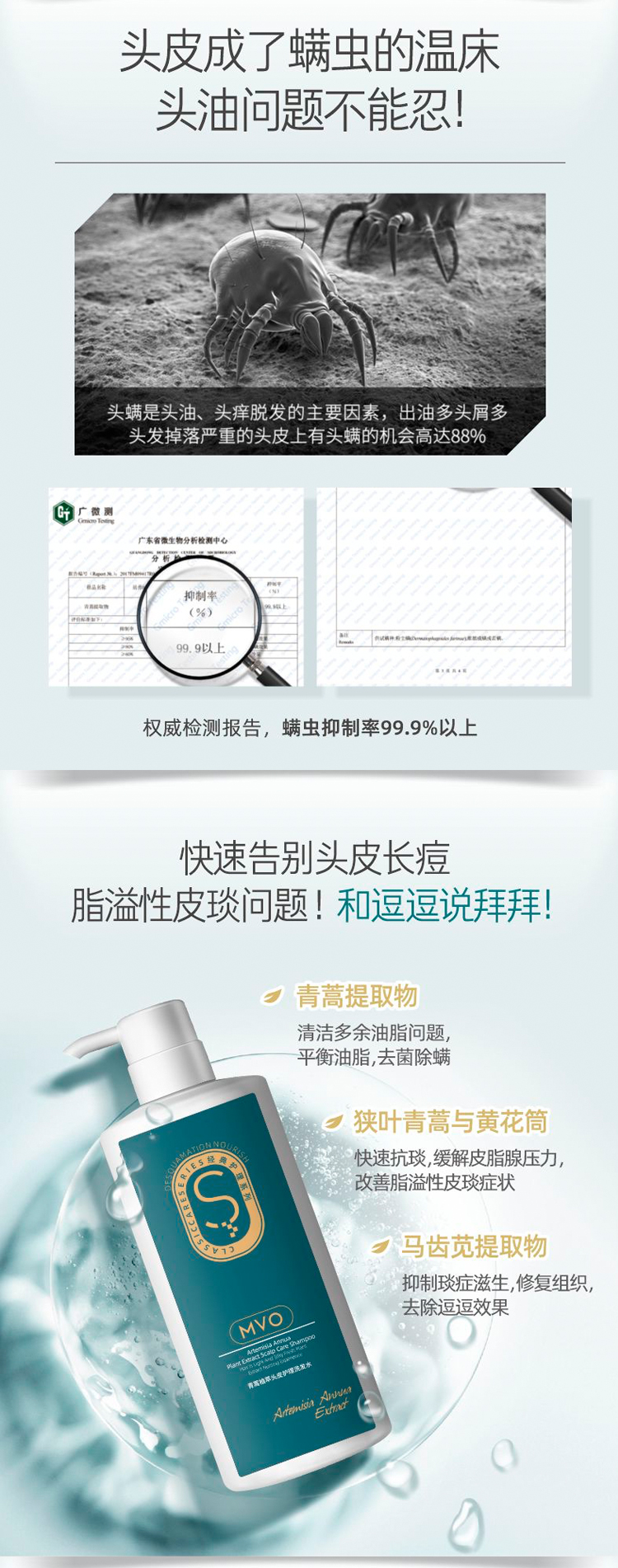 【除螨率99.9%】MVO青蒿止痒养发洗发水氨基酸控油去屑除螨蓬松青蒿护发素柔顺顺滑修复改善干枯毛躁