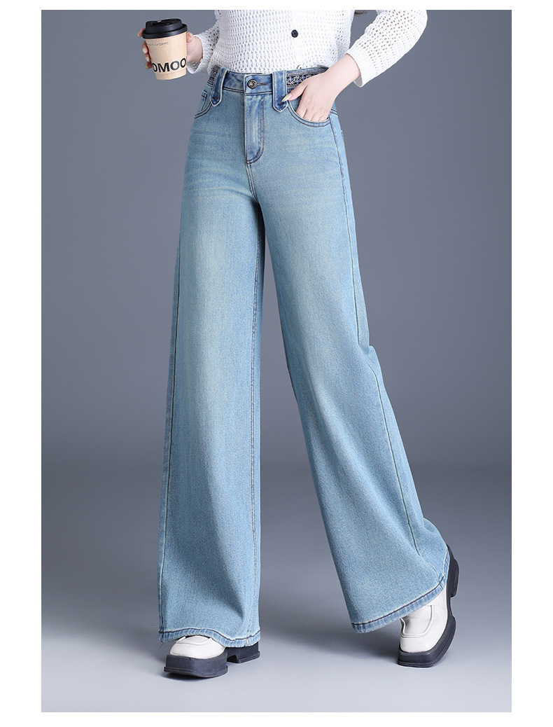 YM 9841时髦洋气百搭加绒保暖牛仔阔腿裤高腰显瘦垂感裤 商品图4