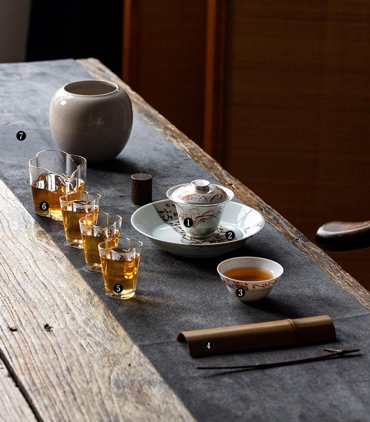 茶香记 乎上堂寒香无言盖碗100ml景德镇陶瓷泡茶碗墨彩矾红手绘功夫茶具