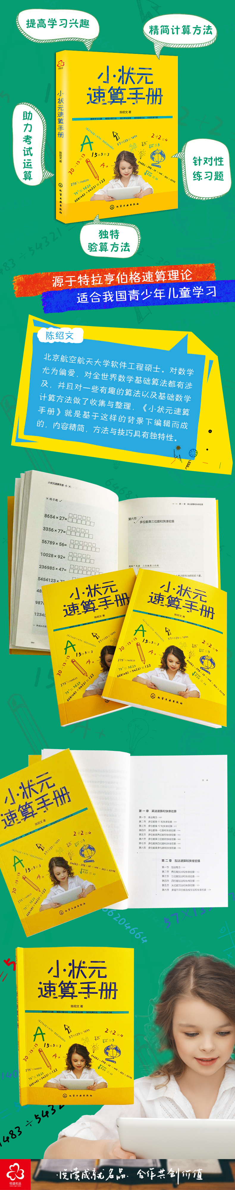 小状元速算手册 陈绍文 青少年中小学生速算珠心算技巧 多位数加减乘除运算快准 验算教程儿童 奥数趣味学习 数学算法辅导书