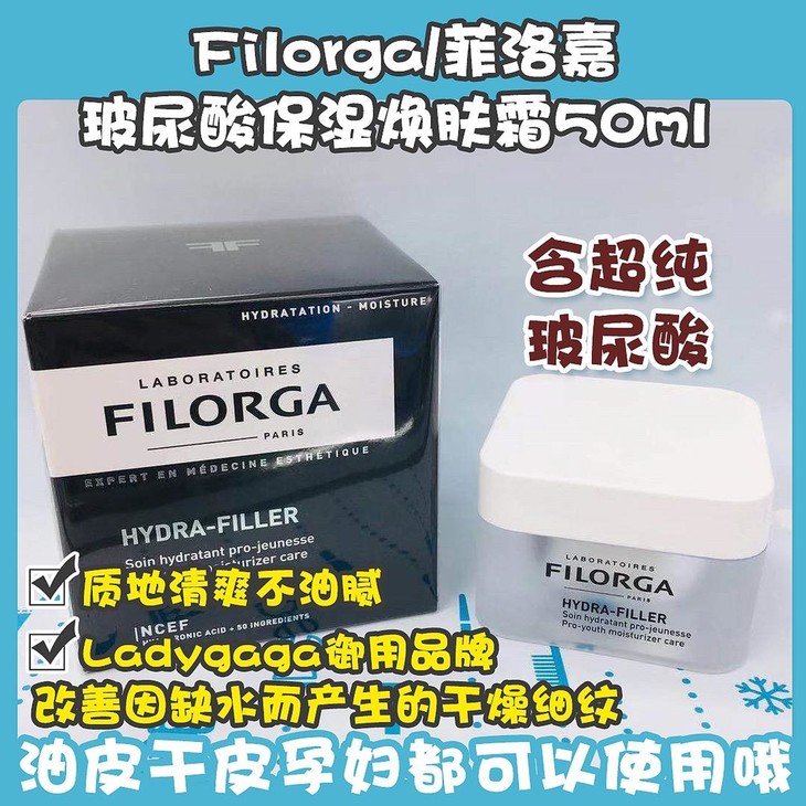 菲洛嘉玻尿酸保湿焕肤霜50ml👍Ladygaga御用品牌🔥🔥是一款适合轻熟龄肌的面霜,50ml含超纯玻尿酸❗运用独特活性成分强化肌肤的保湿机制💦,达到长效保湿💙,改善因缺水而产生的干燥细纹🕸,令肌肤充满活力、皮肤润泽水润。质地清爽不油腻🍃,油皮干皮孕妇都可以使用哦,✅说明成分真的很安全了!
