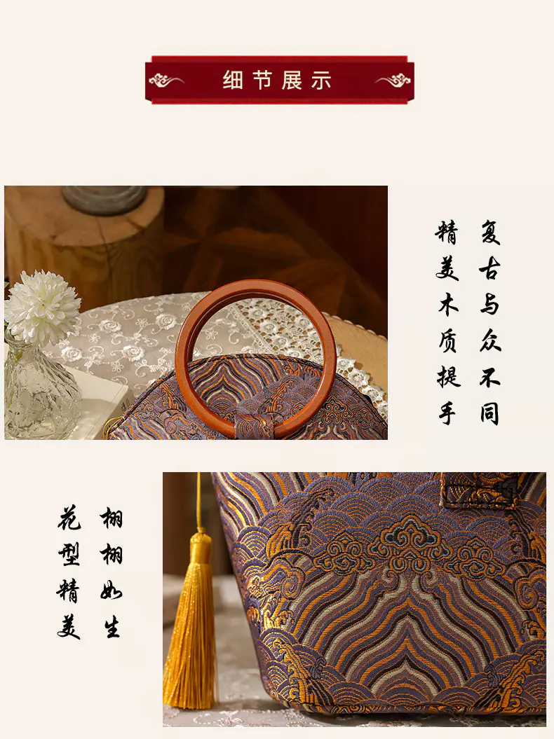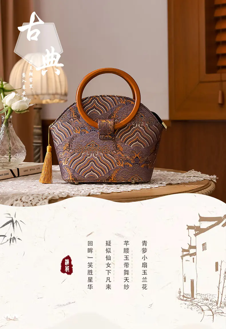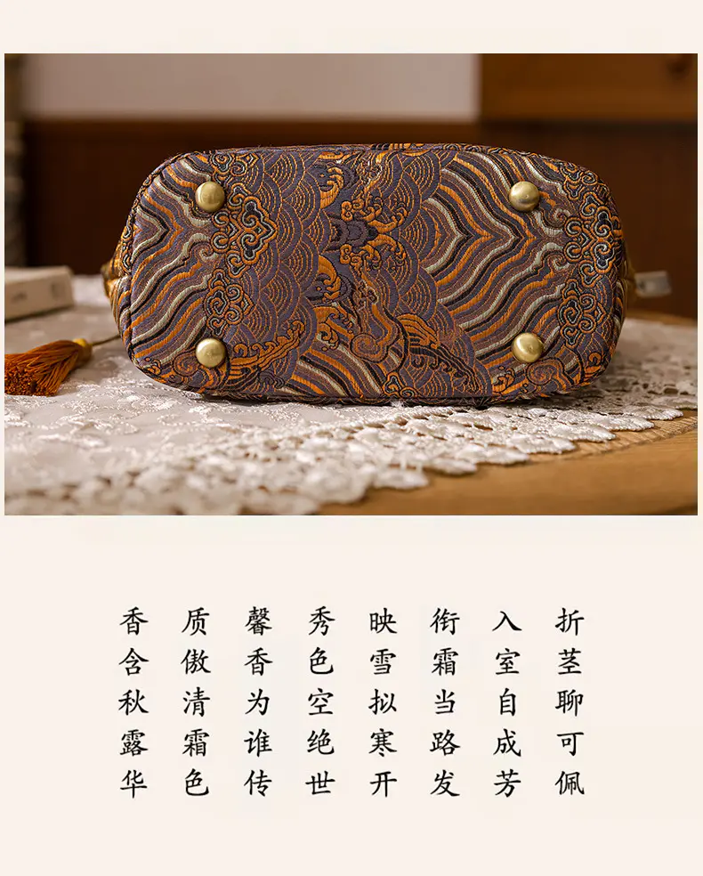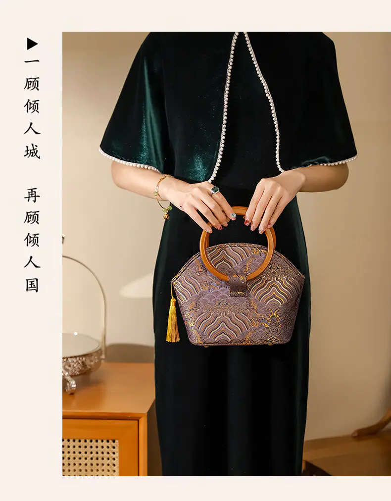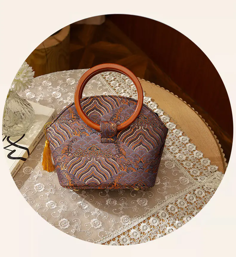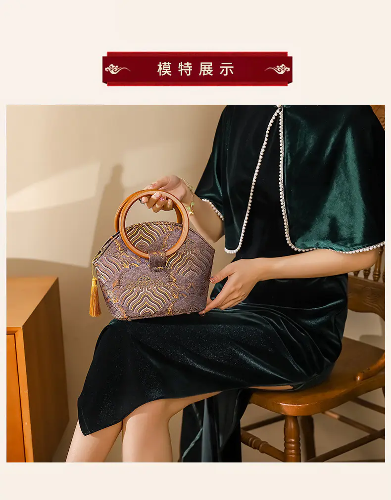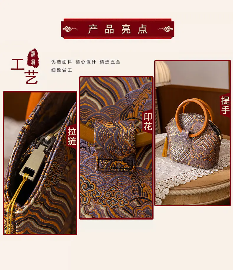 CY-手提包旗袍汉服古风包包 祥云印花拉链流苏手拎包