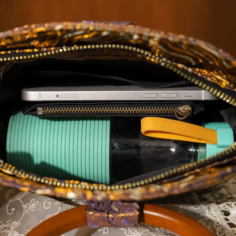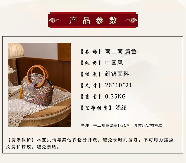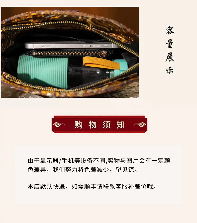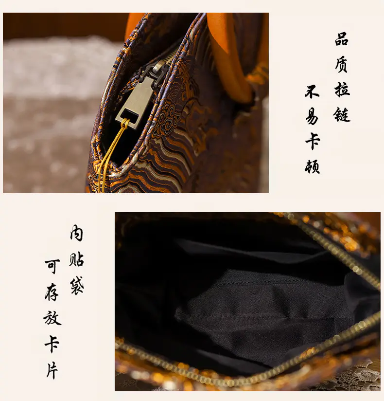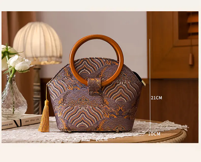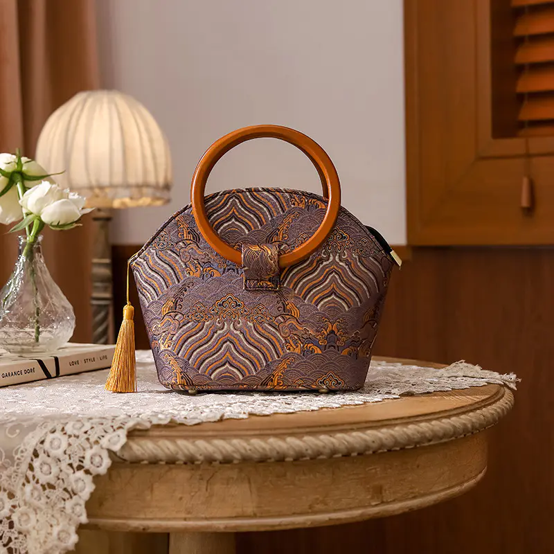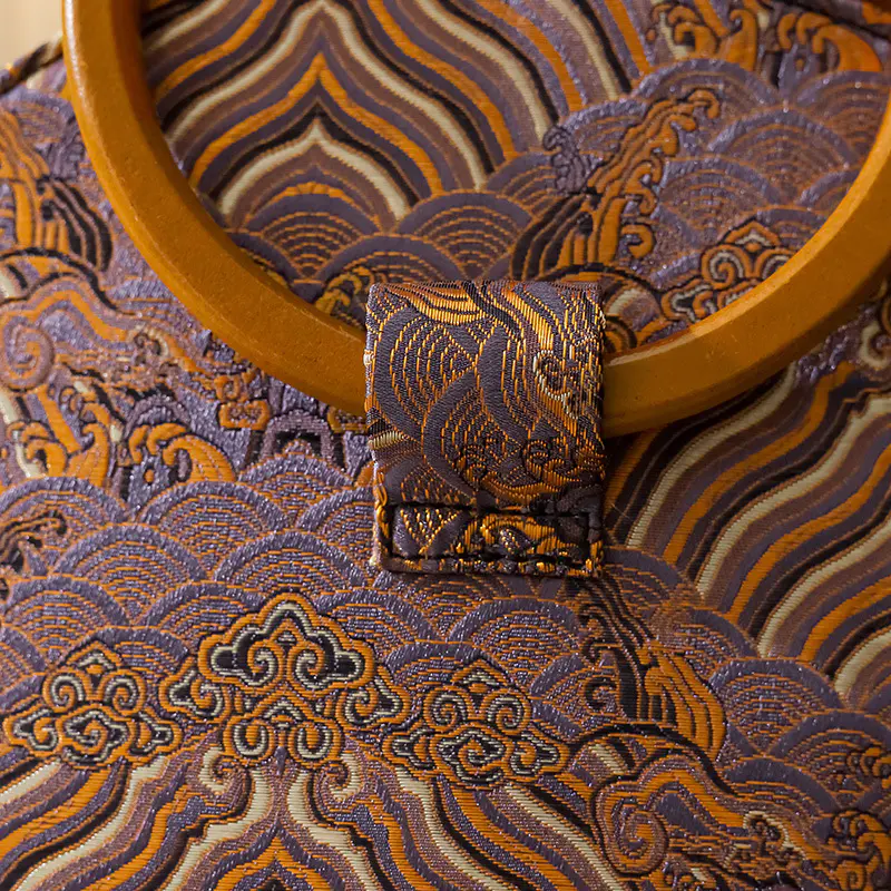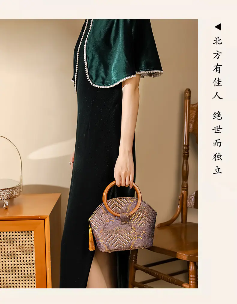 CY-手提包旗袍汉服古风包包 祥云印花拉链流苏手拎包