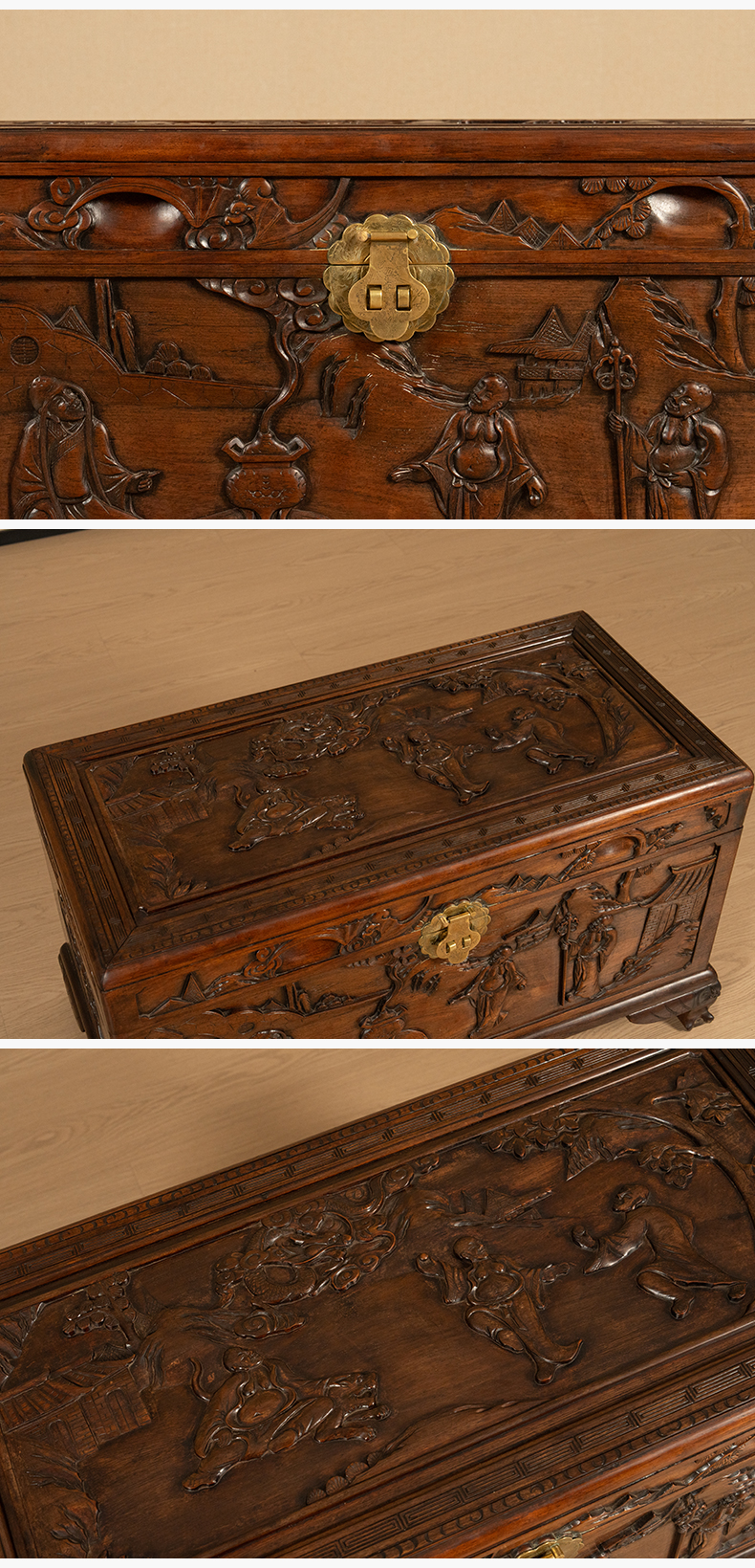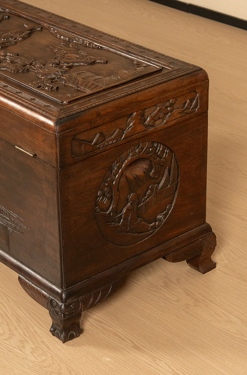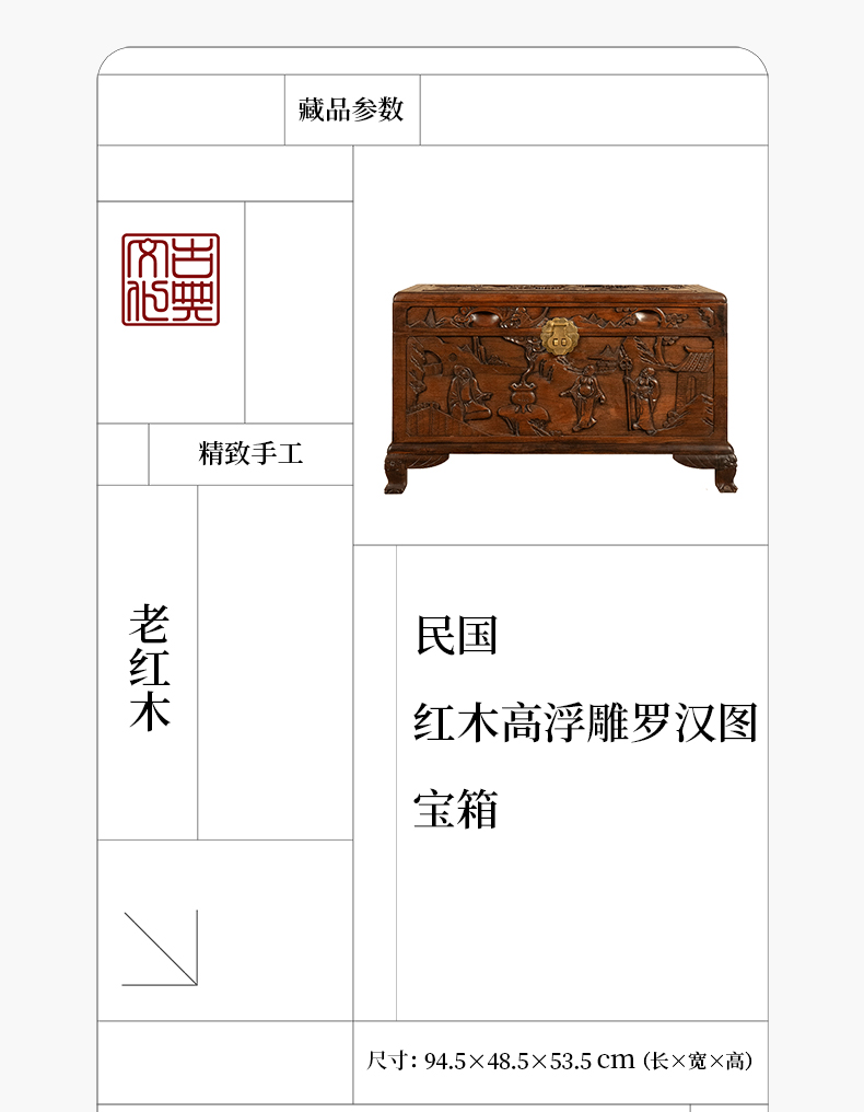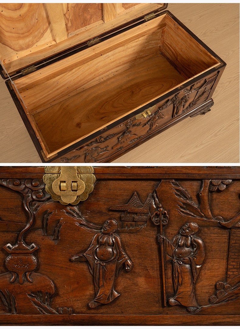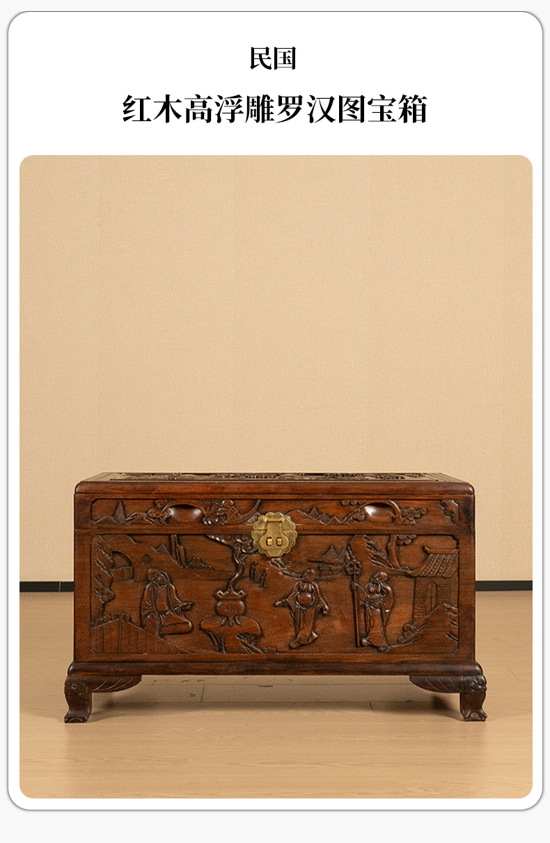 民国 红木高浮雕罗汉图宝箱