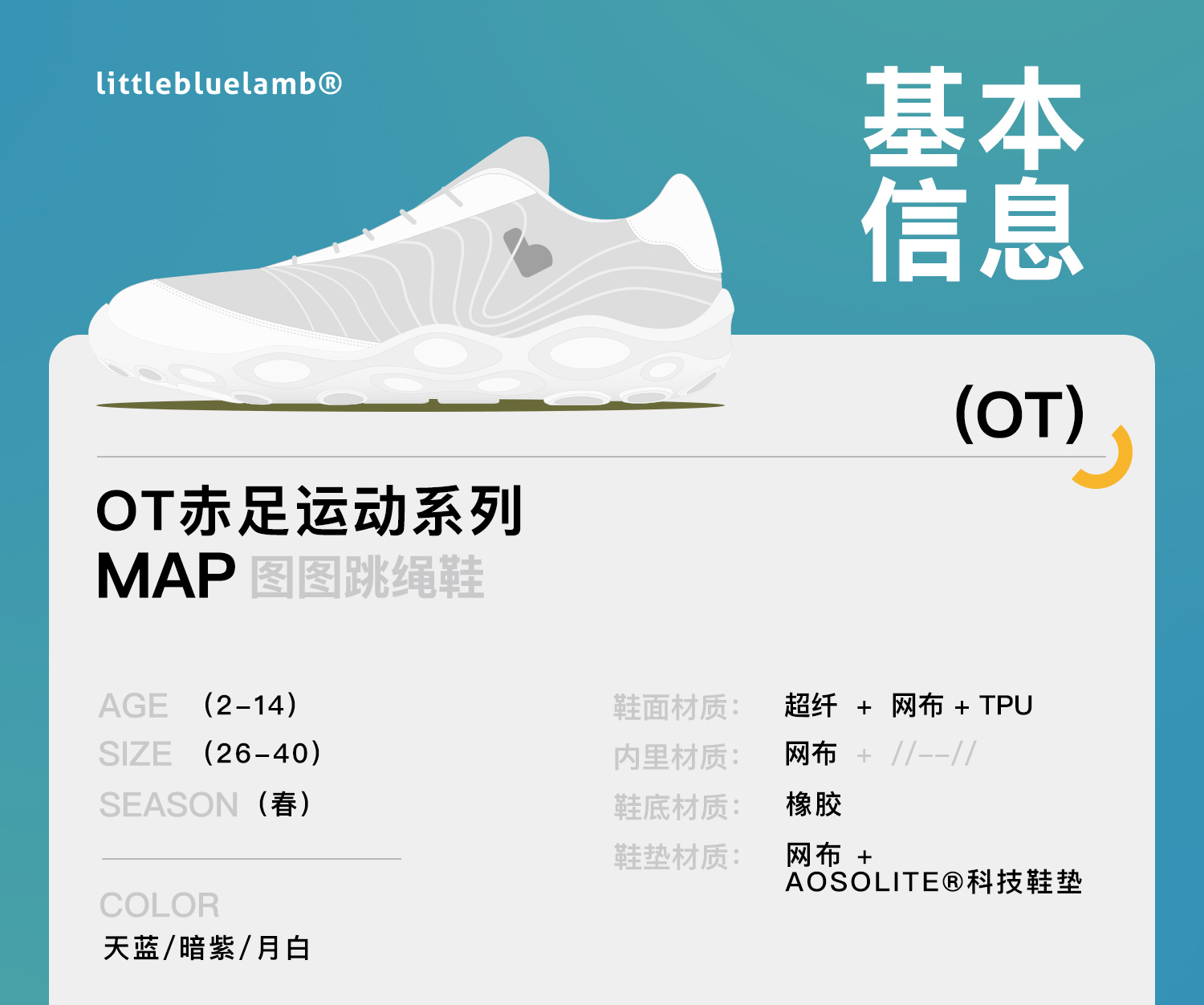 小蓝羊26春新款儿童户外赤足运动鞋中大童校园综合软底护足训练鞋图图跳绳鞋