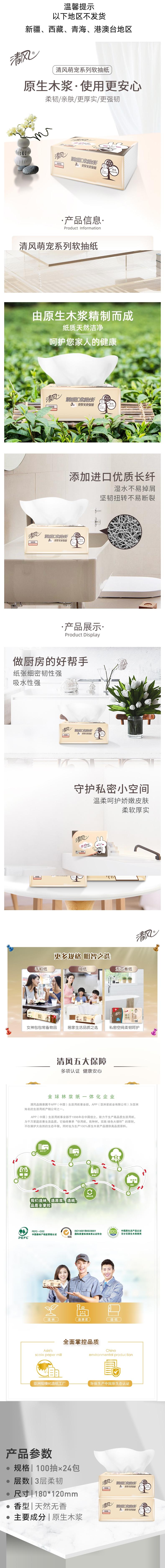 清风 萌宠抽纸3层100抽24包抽取式面巾纸 AR10SBY