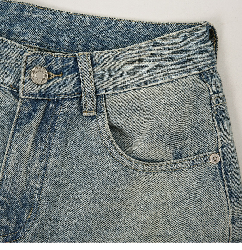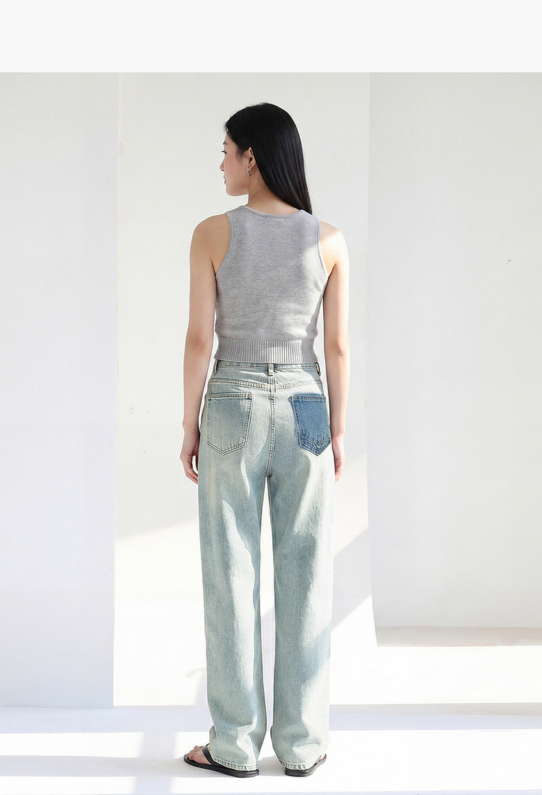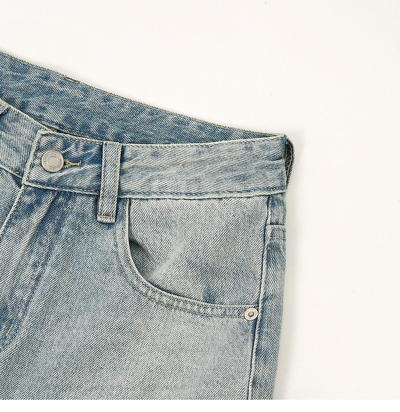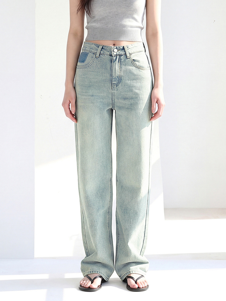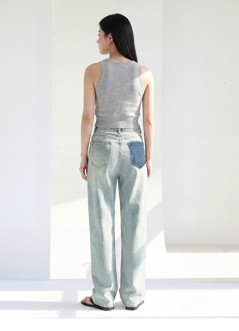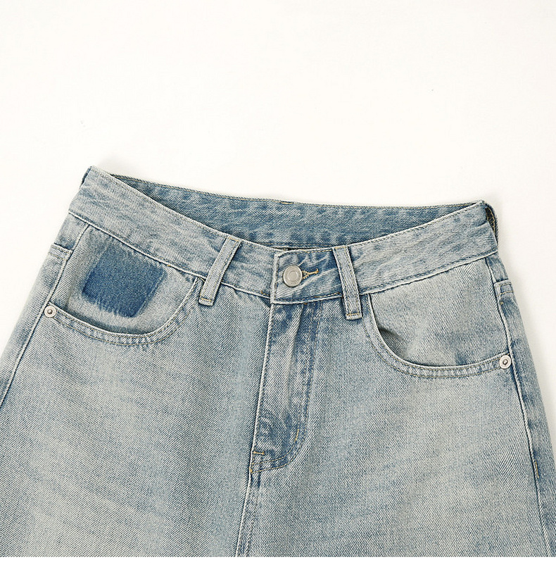 天猫同步【梨形本命裤】拉夏贝尔/La Chapelle高质含棉高腰一粒扣撞色后口袋宽松显瘦阔腿牛仔长裤