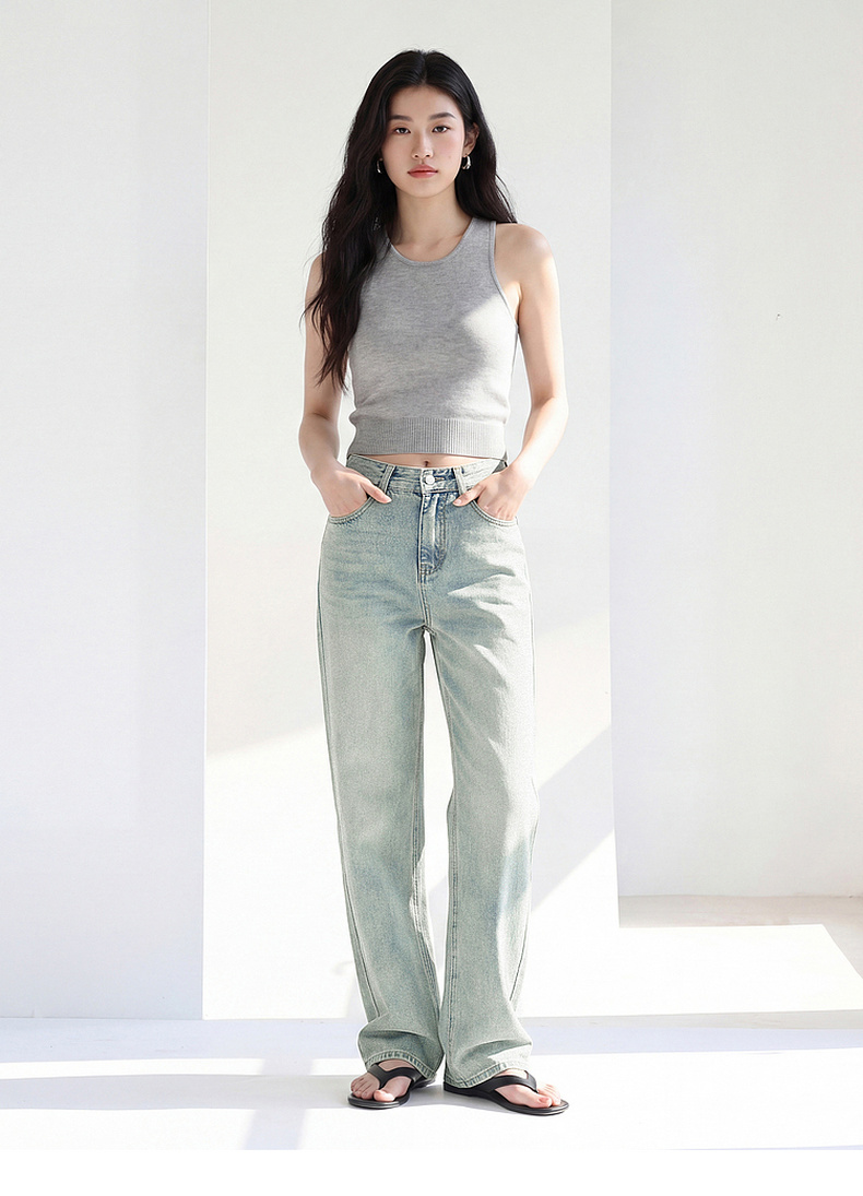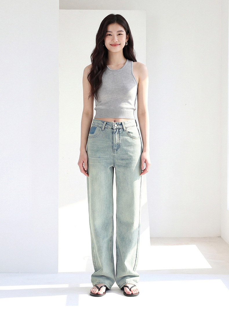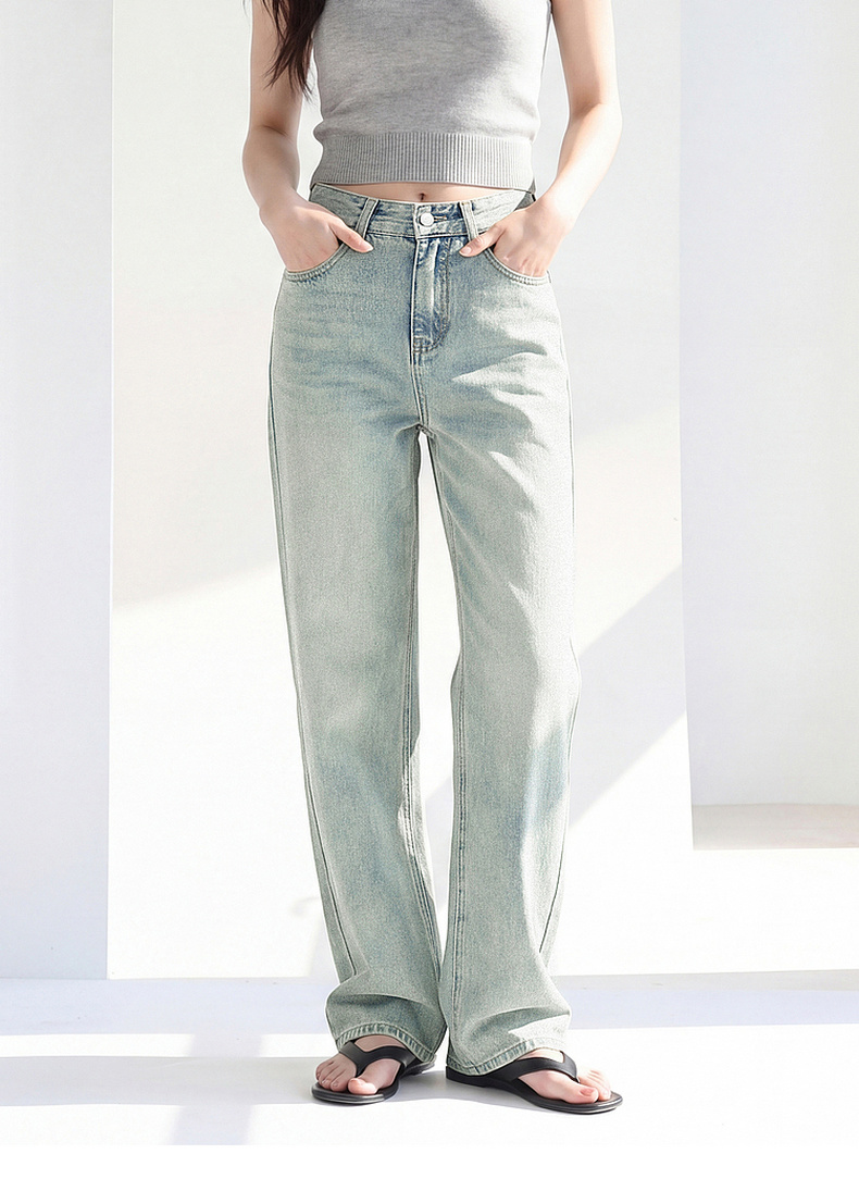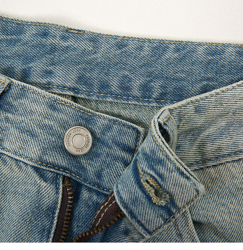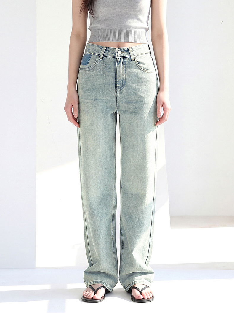 天猫同步【梨形本命裤】拉夏贝尔/La Chapelle高质含棉高腰一粒扣撞色后口袋宽松显瘦阔腿牛仔长裤