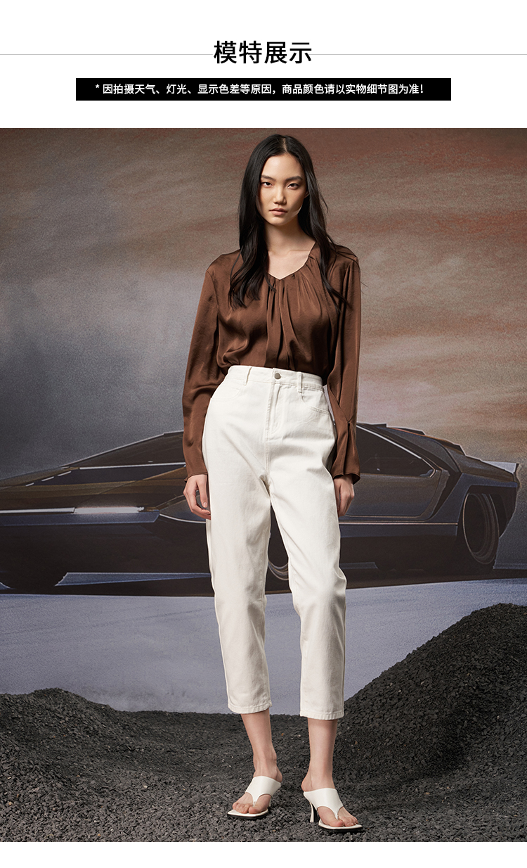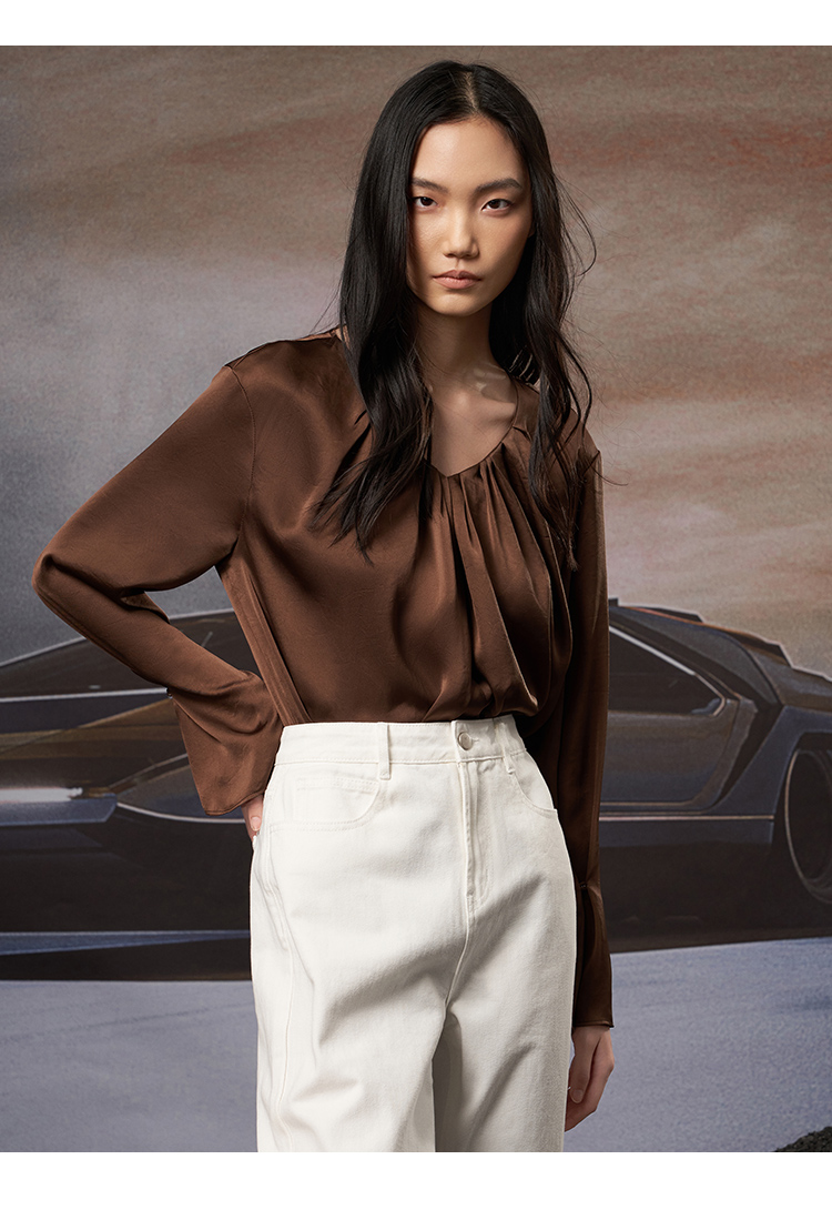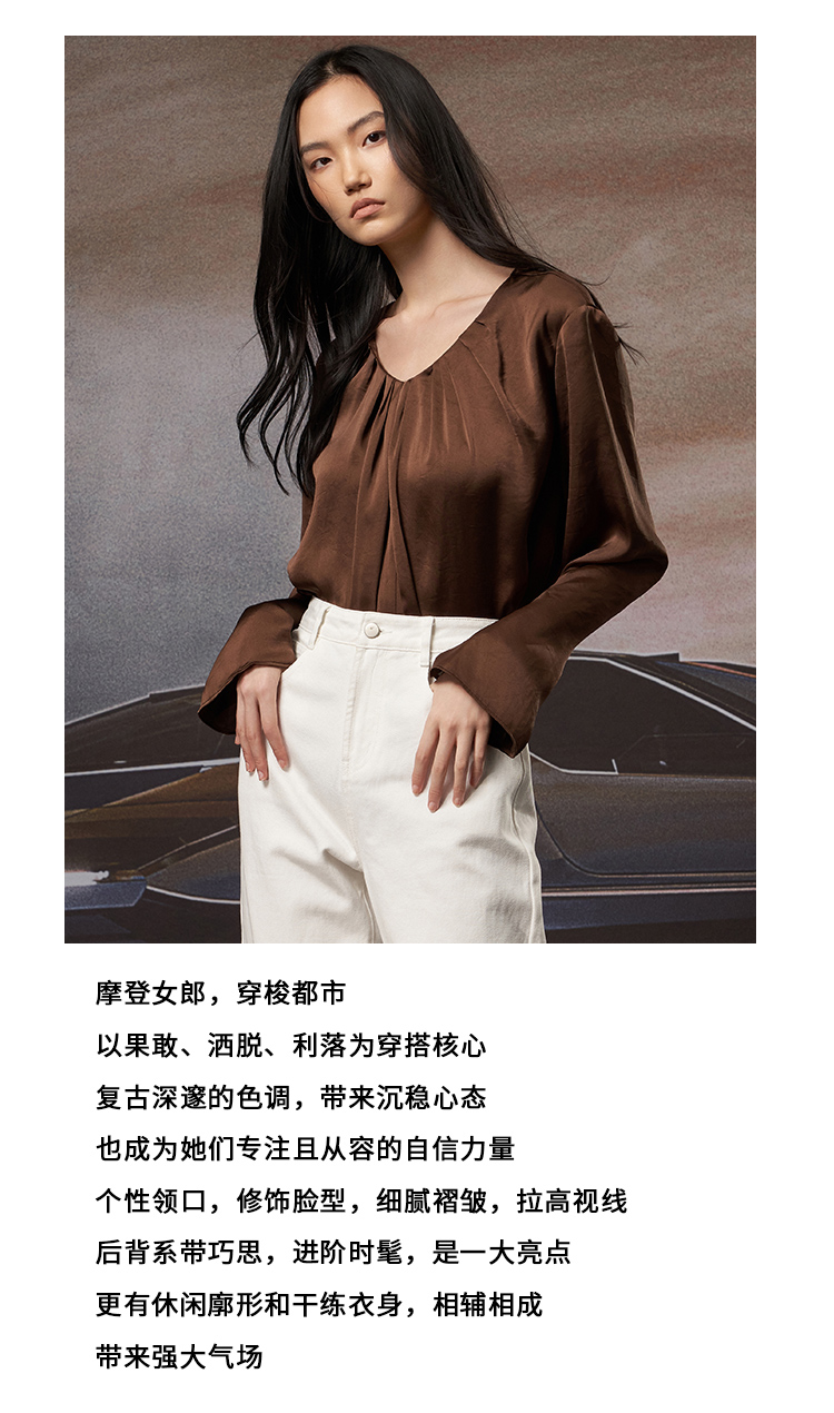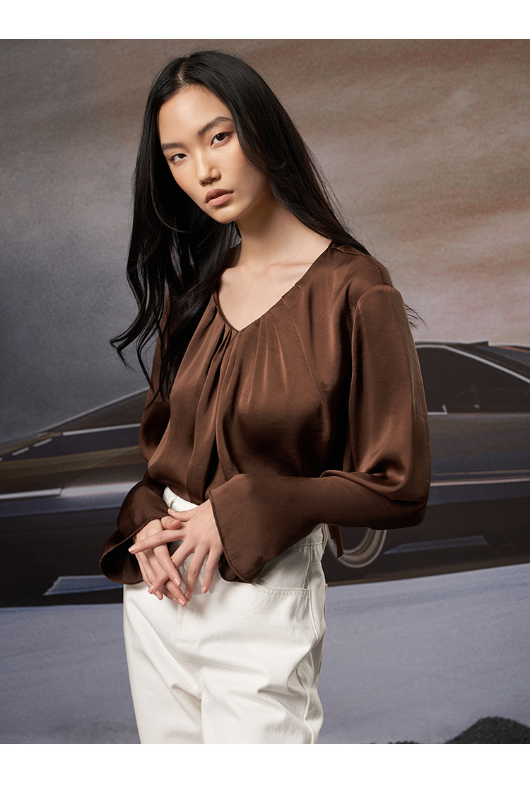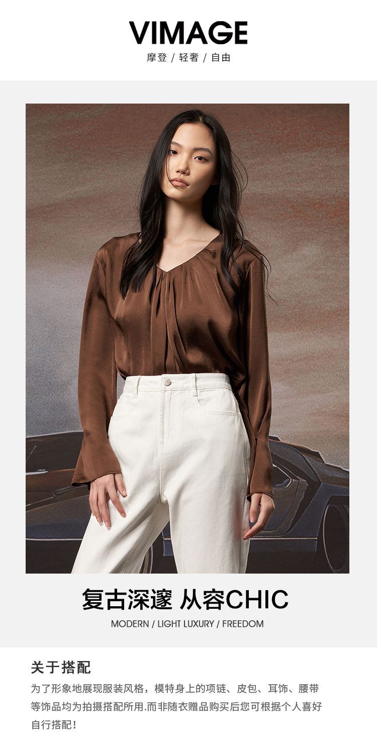 VIMAGE纬漫纪秋季新款时尚喇叭袖口雪纺面料短款V领小上衣女V1813406