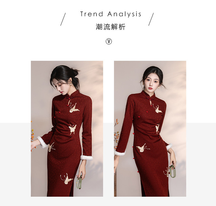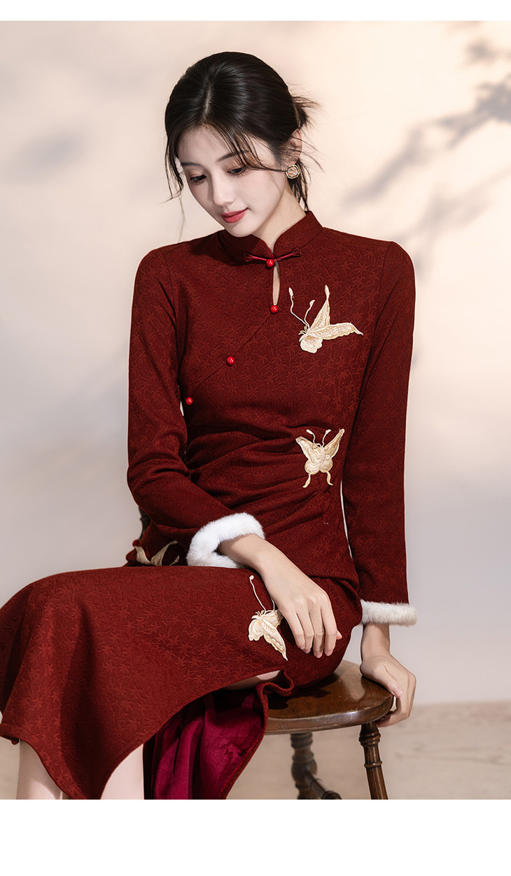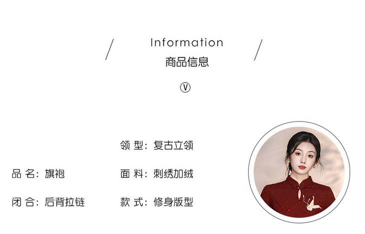 刺绣加绒红色旗袍,新中式订婚礼服裙敬酒服新娘LSB4151