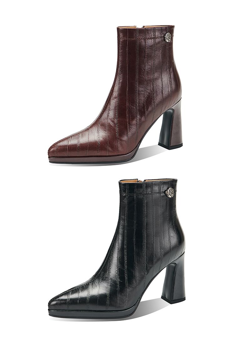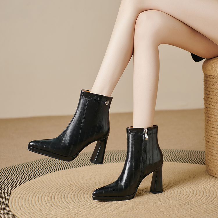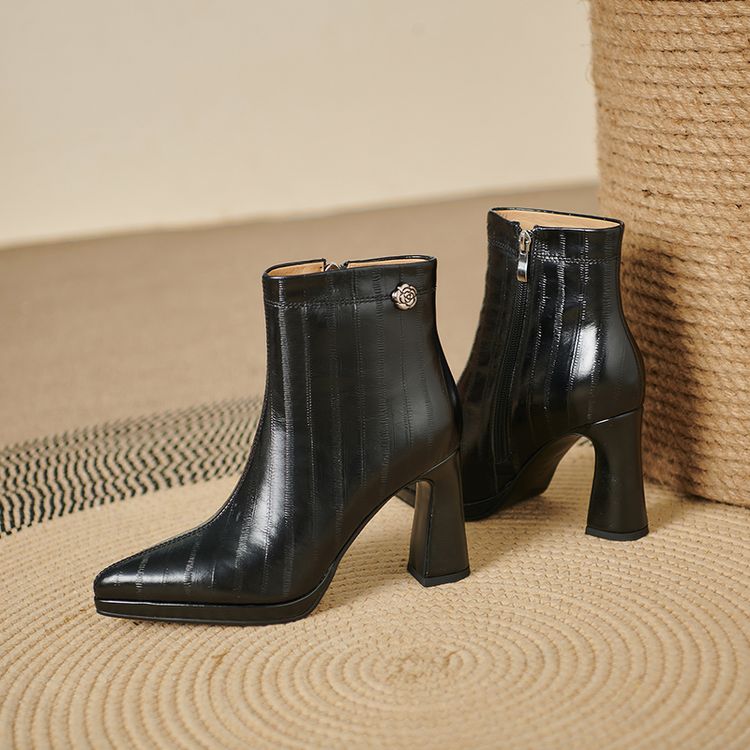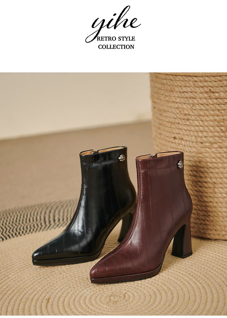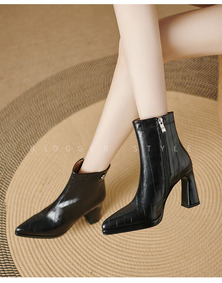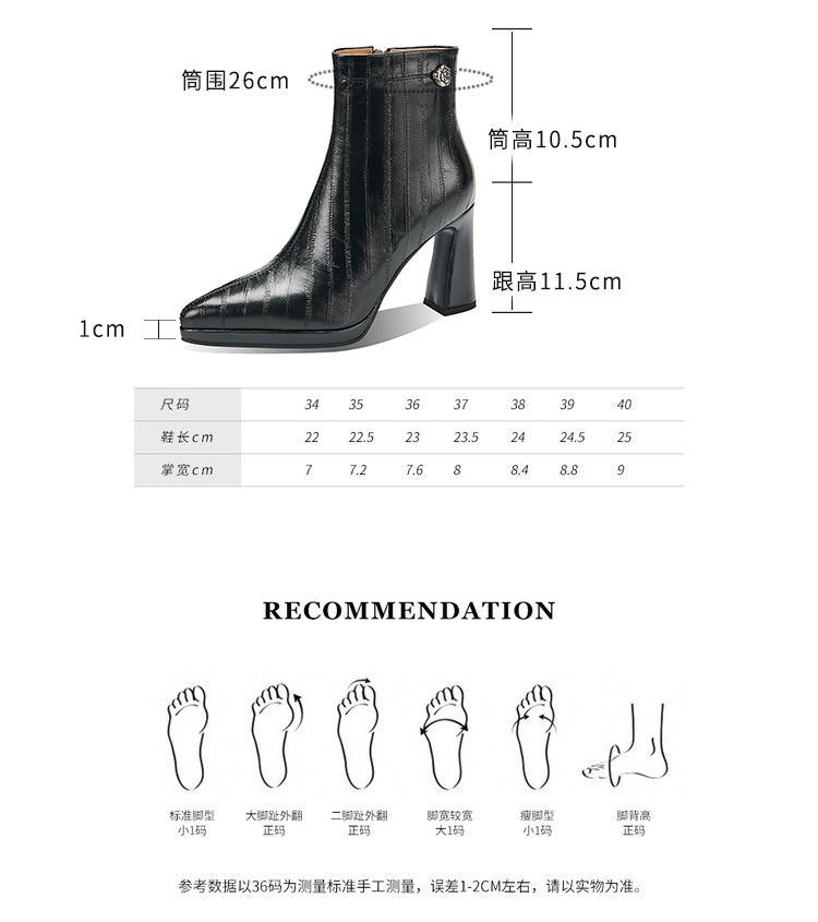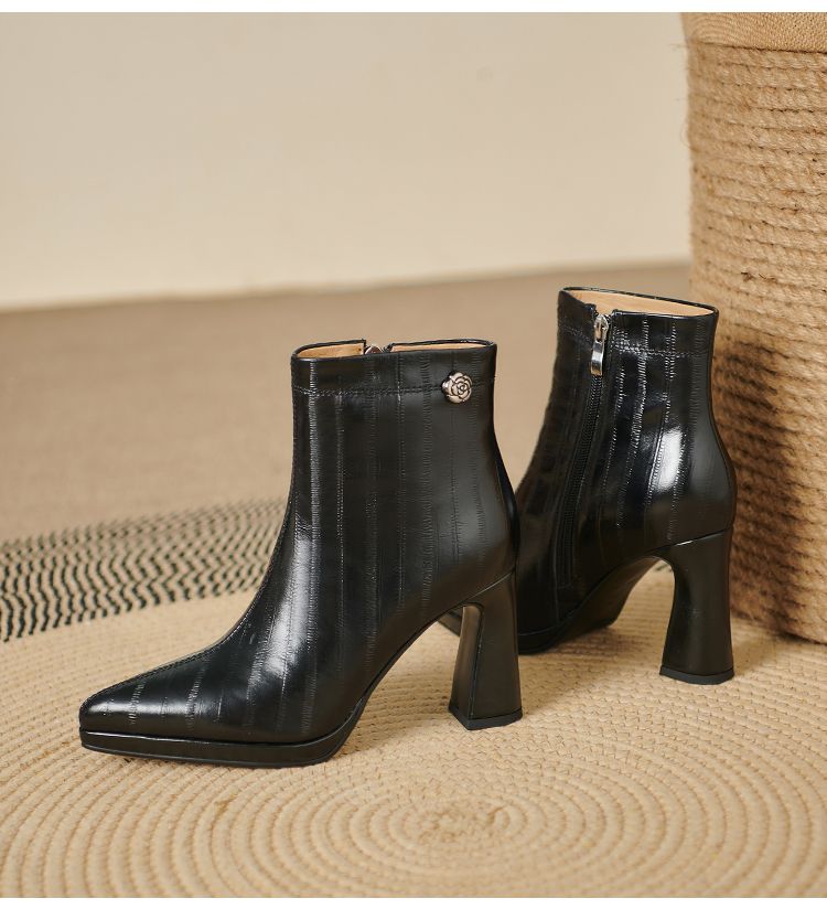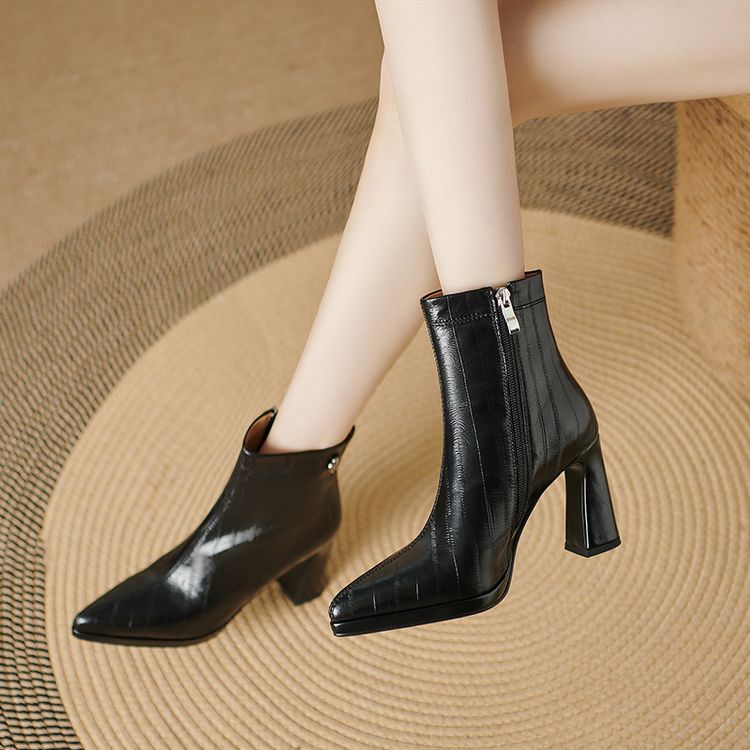 【预售5天】尖头高跟短靴女秋冬新款黑色法式百搭粗跟马丁靴女QS&6070
